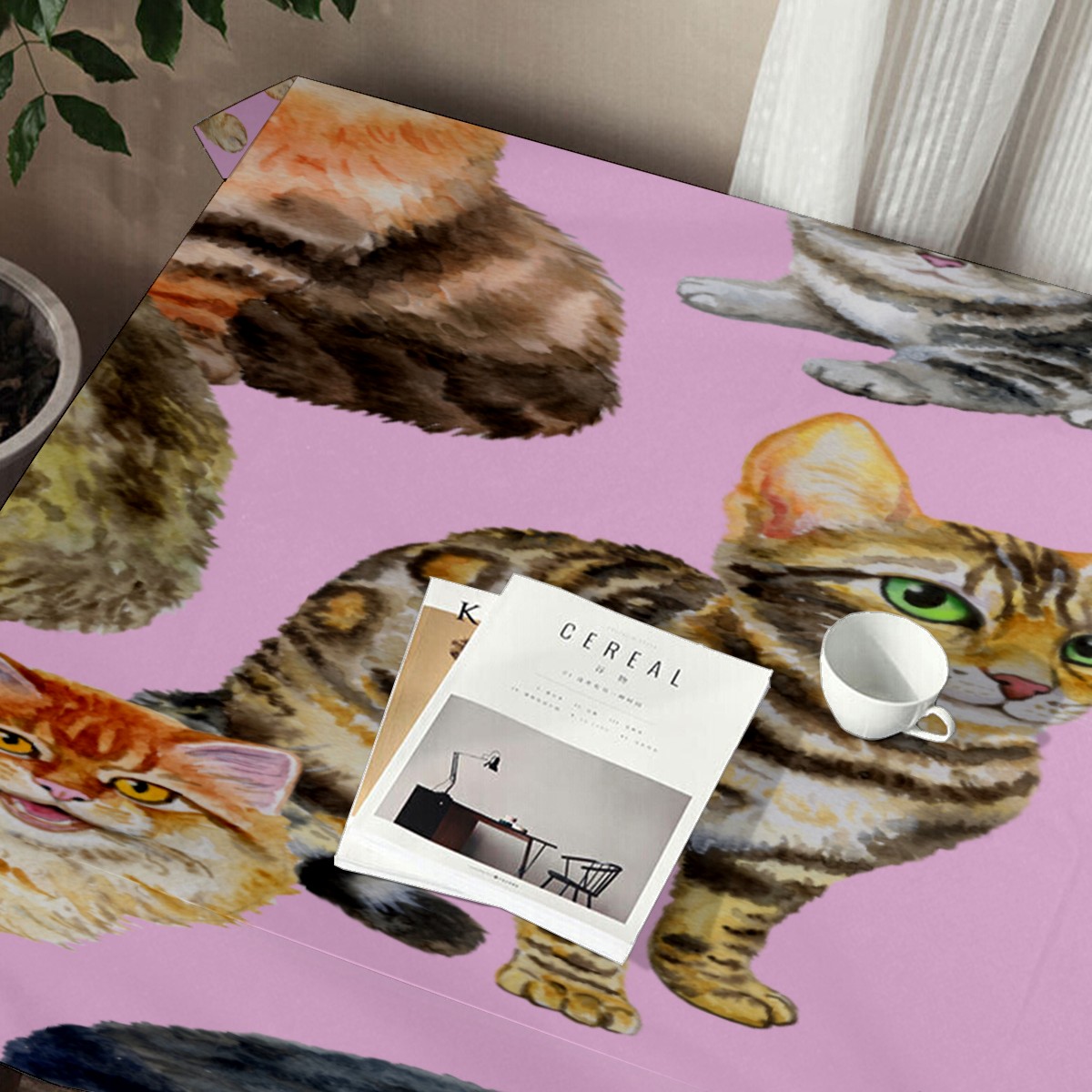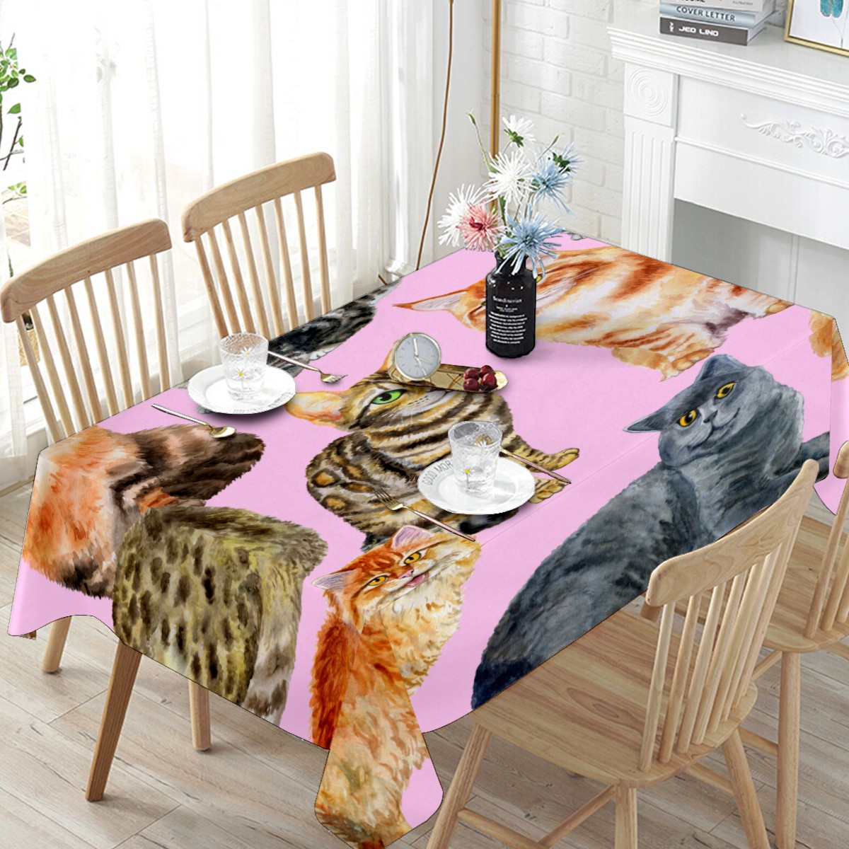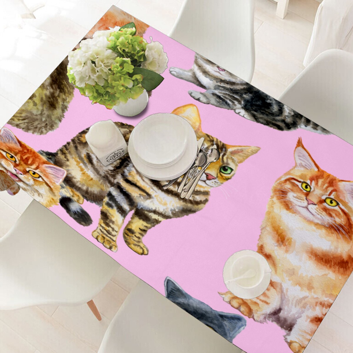 Rectangle Tablecloth Cute Animal Cat Pet Table Cloth 54x54in Table Cover for Kitchen Dining Table Party Home Decoration Washable Table Runner