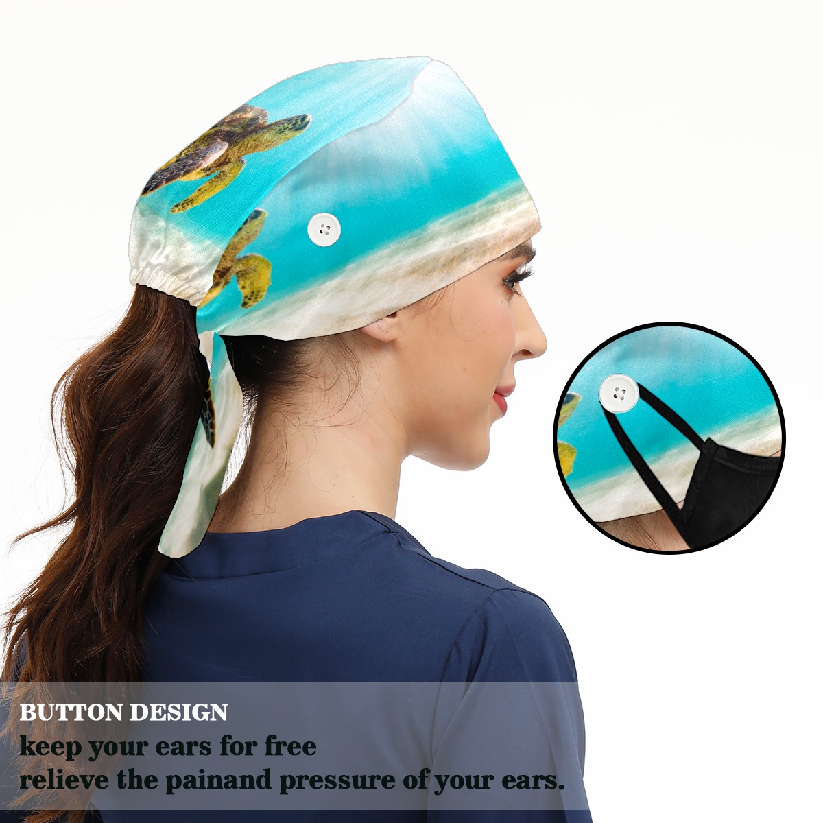 Hawaiian Green Sea Turtle Cruising Working Cap Button and Sweatband Adjustable Elastic Head Cover Hair Tie Back Work Hats for Women Men