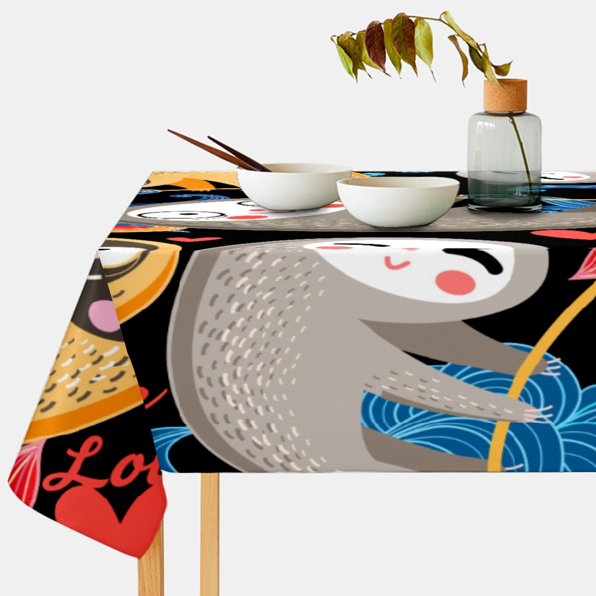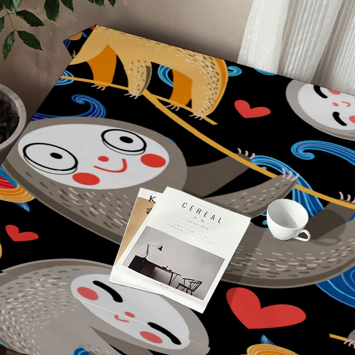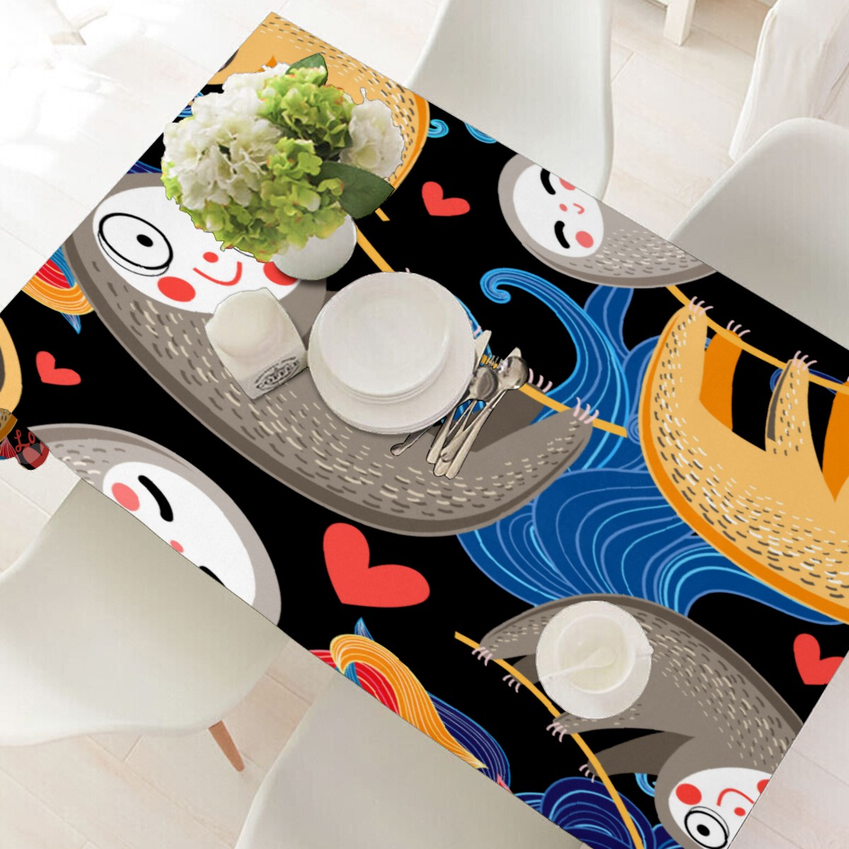 Rectangle Tablecloth Cute Sloth Animal Cartoon Table Cloth 54x54in Table Cover for Kitchen Dining Table Party Home Decoration Washable Table Runner