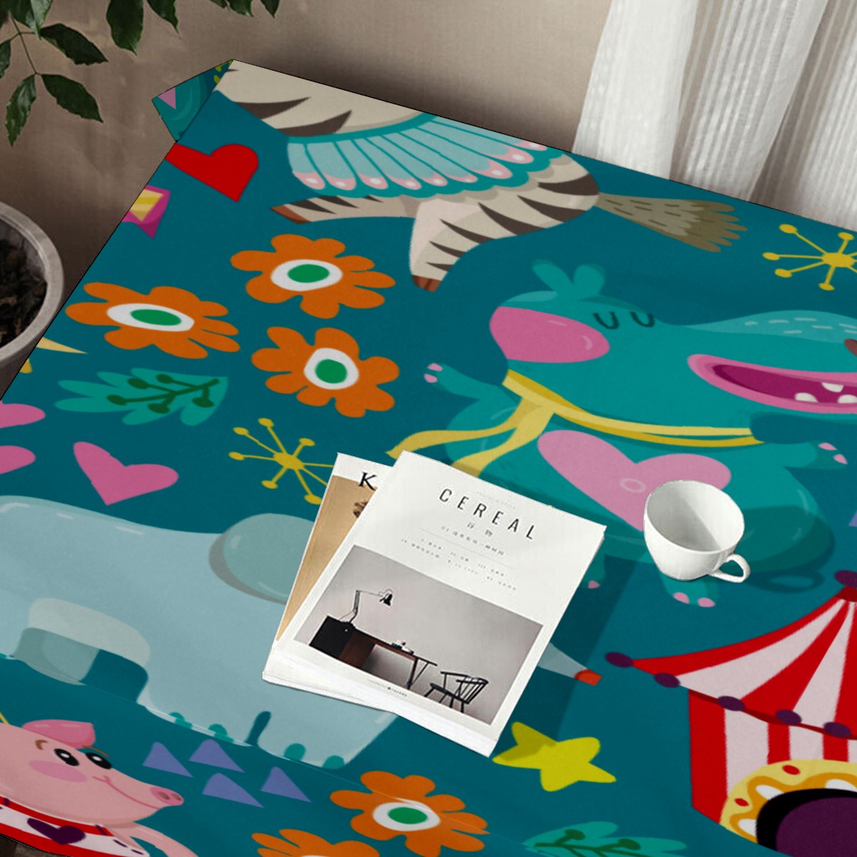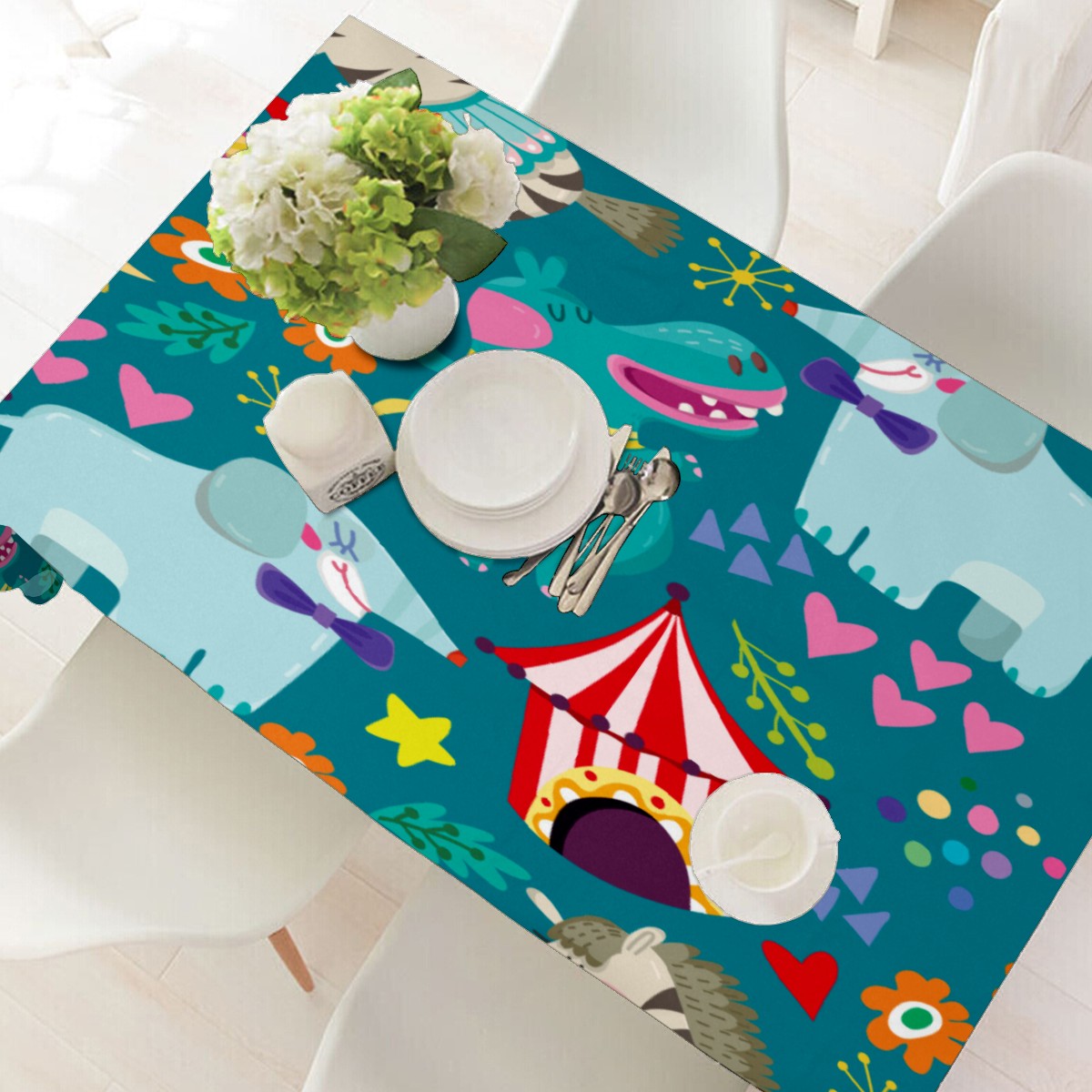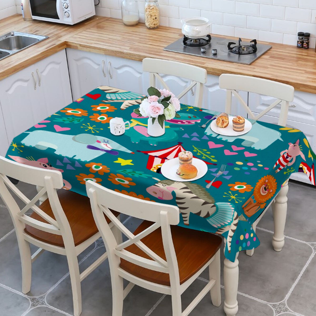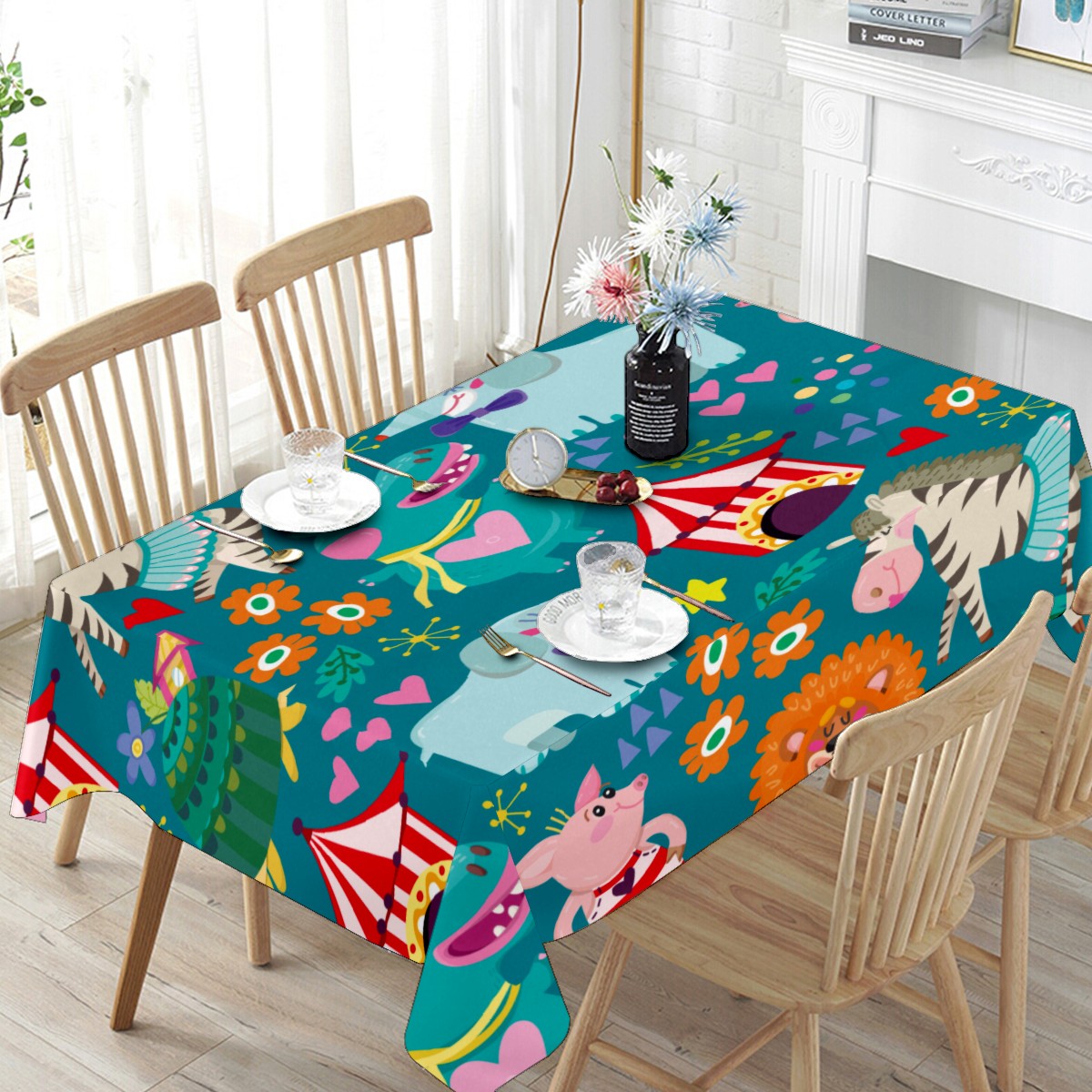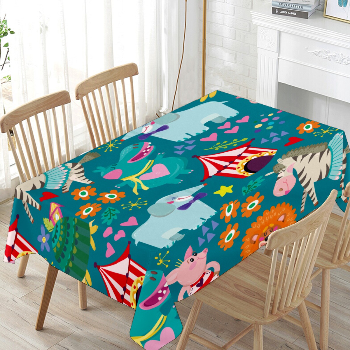 Rectangle Tablecloth Lion Elephant Animal Circus Table Cloth 54x54in Table Cover for Kitchen Dining Table Party Home Decoration Washable Table Runner