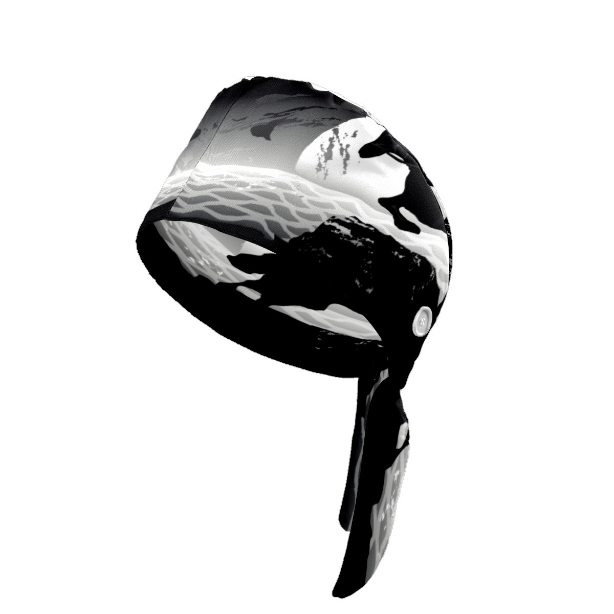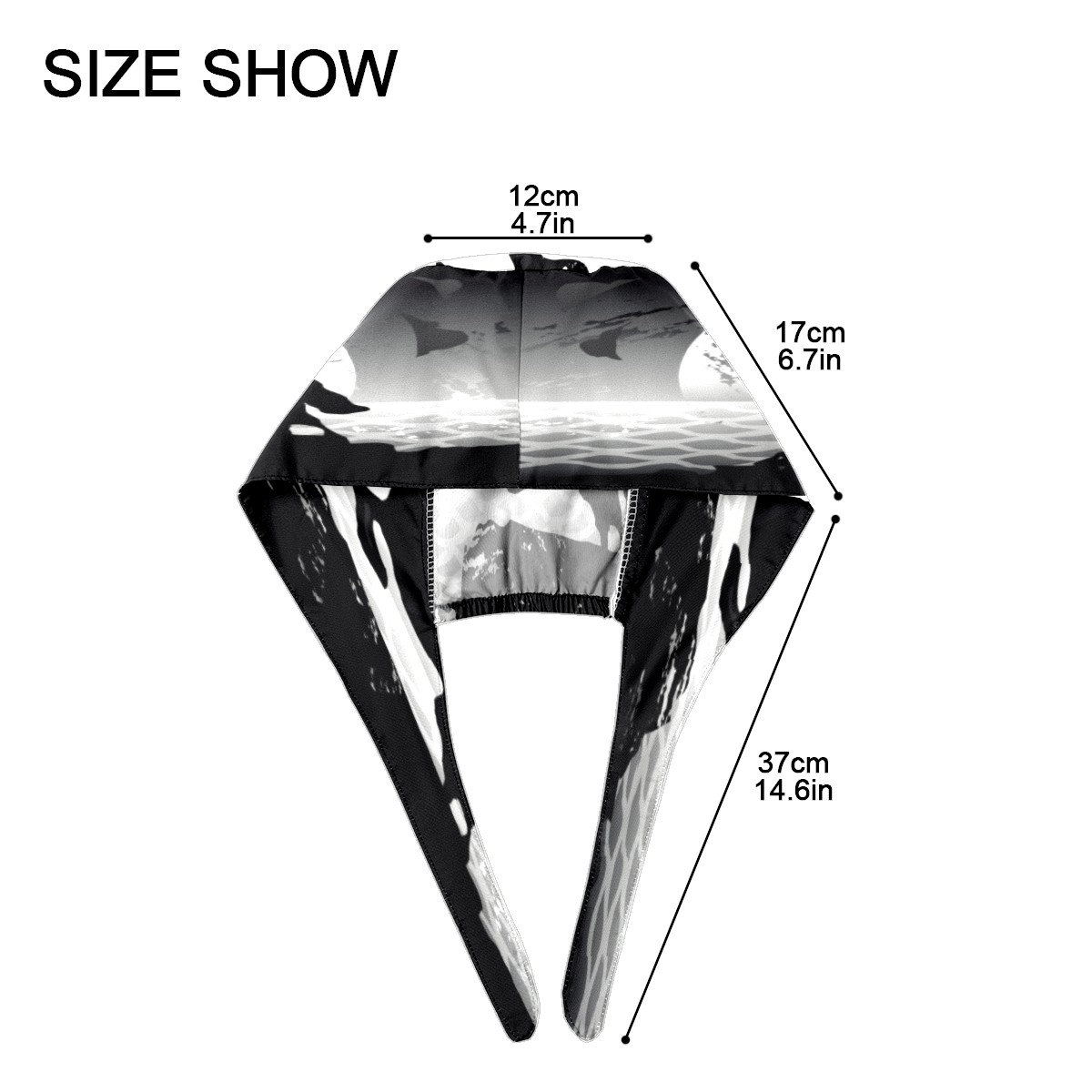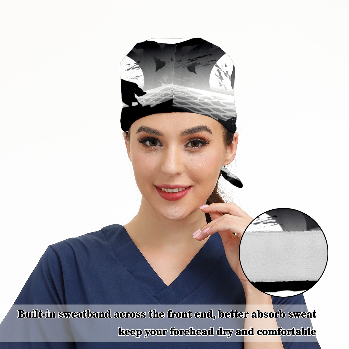Black White Horse And Rider Night Moon Working Cap Button and Sweatband Adjustable Elastic Head Cover Hair Tie Back Work Hats for Women Men