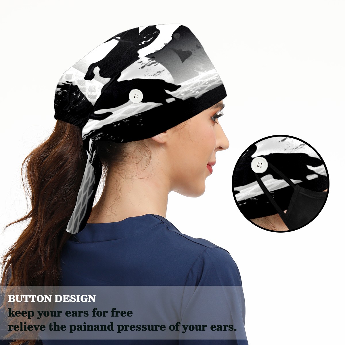 <p>Working cap with Sweatband and Button for Women Men</p><p>Material&nbsp;: 50% cotton+50% polyester</p><p>Size:&nbsp;One size fits most,&nbsp;suitable for both men and women.</p><p>Working Cap with Buttons Design:special&nbsp;design with buttons to protect ears for those who are wearing ma-sk. These new styles hats will allow you to put the straps around the buttons instead of your ears, make you feel more comfortable.</p><p>Sweat-absorbent towel cloth inside: Built-in&nbsp;100% cotton sweatband, keep the forehead clean after long time working.</p><p>Widely occasion: Widely used in beauty spa, house cleaning, cooking, sleeping, or for cos-play&nbsp;party.</p><p>Lovely pattern: lovely&nbsp;3D printed&nbsp;pattern,&nbsp;it's perfect for gift to you family&nbsp;and friends.</p>