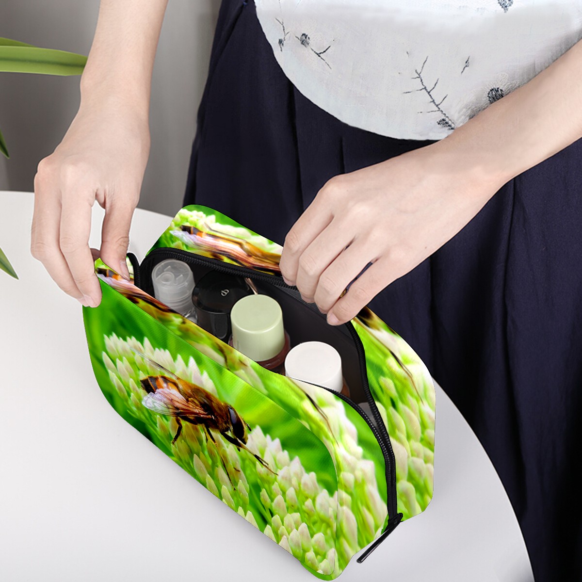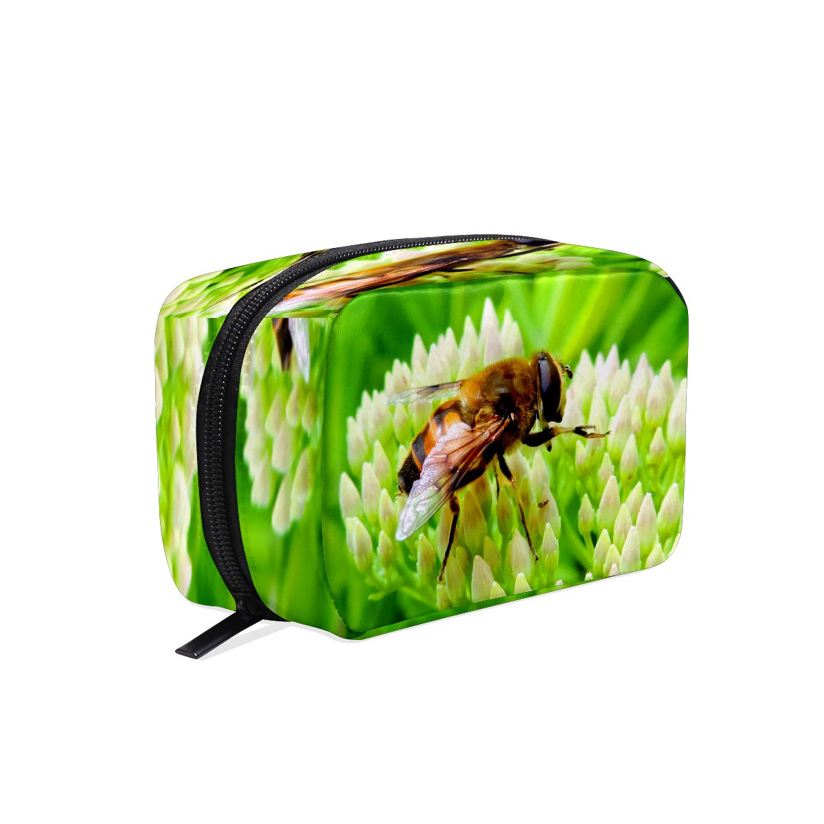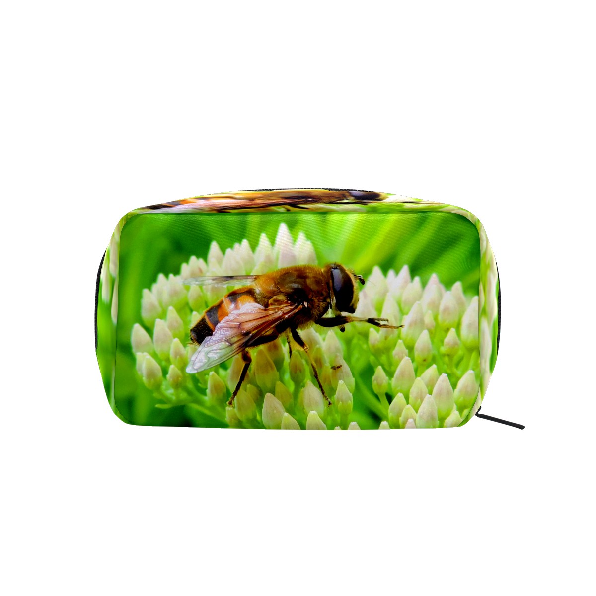 Cosmetic Bag for Women Girls Trave Makeup Bag Toiletry Case Pouch Accessories Organizer Funny Bee With Flower