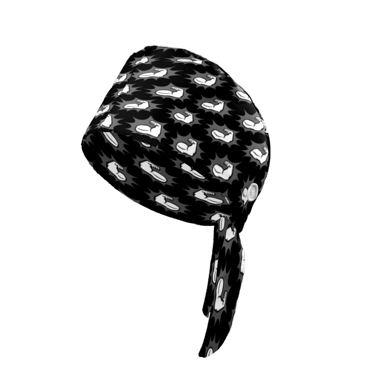 Strong Bodybuilder Biceps Flex Arm Pattern Working Cap Button and Sweatband Adjustable Elastic Head Cover Hair Tie Back Work Hats for Women Men