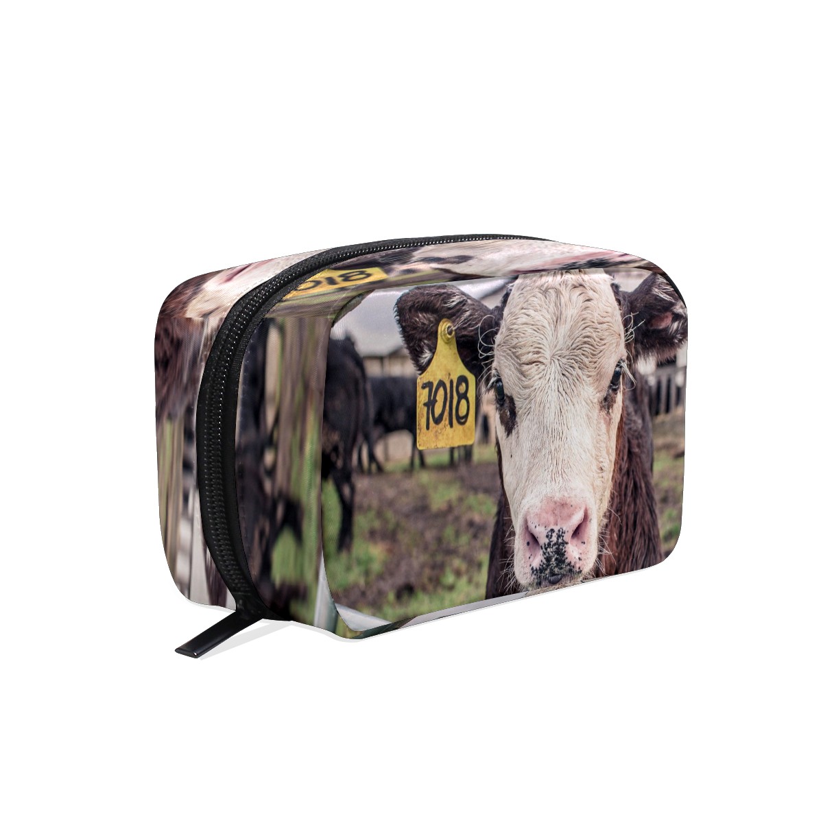 Cosmetic Bag for Women Girls Trave Makeup Bag Toiletry Case Pouch Accessories Organizer Farm Animal Cow