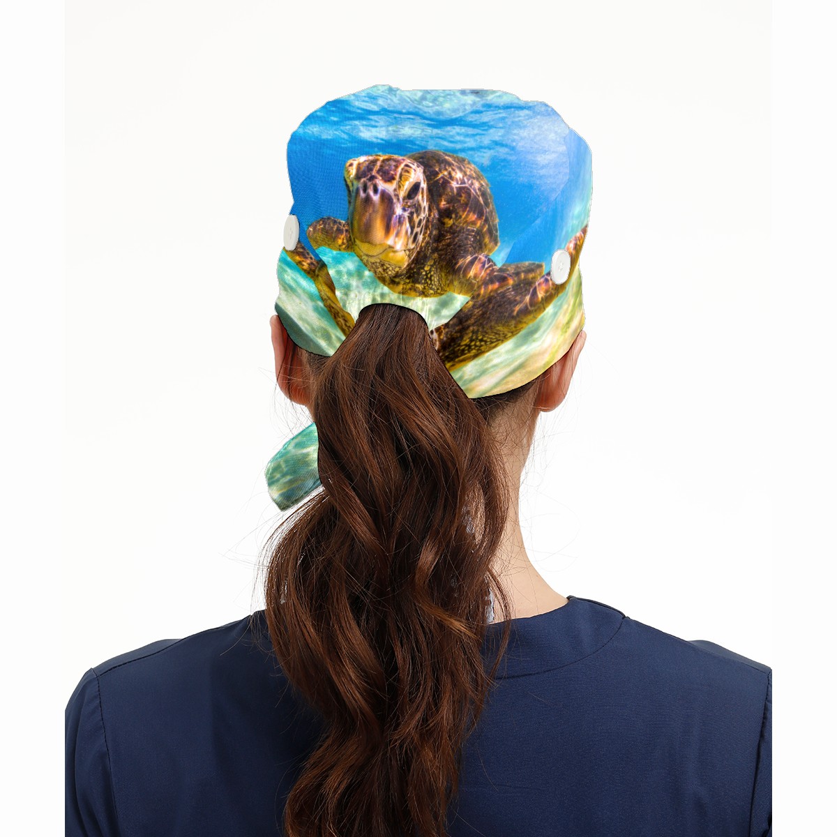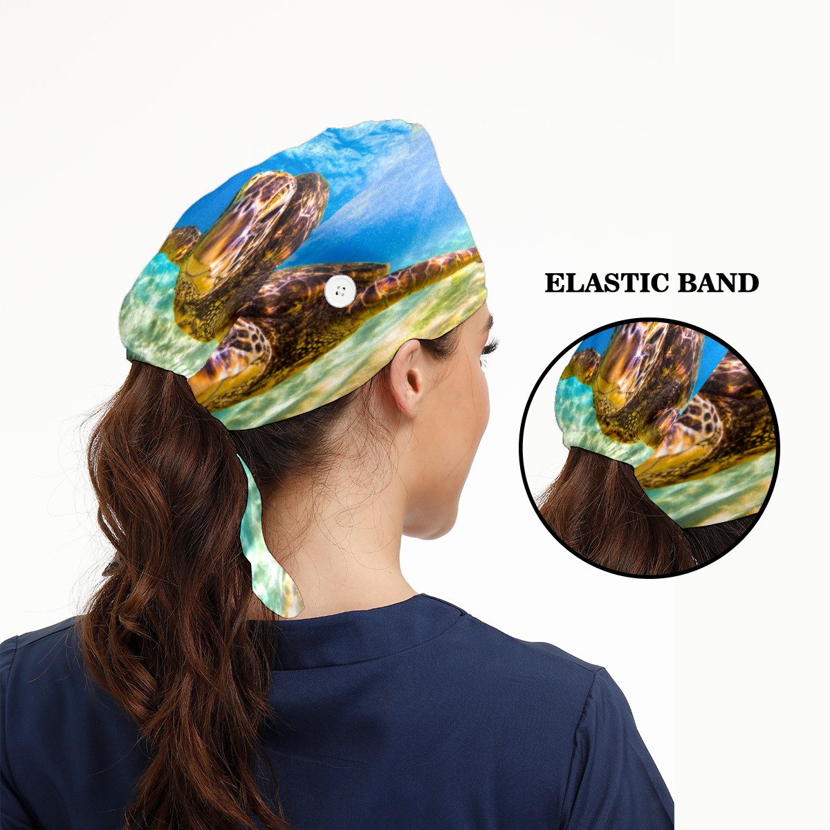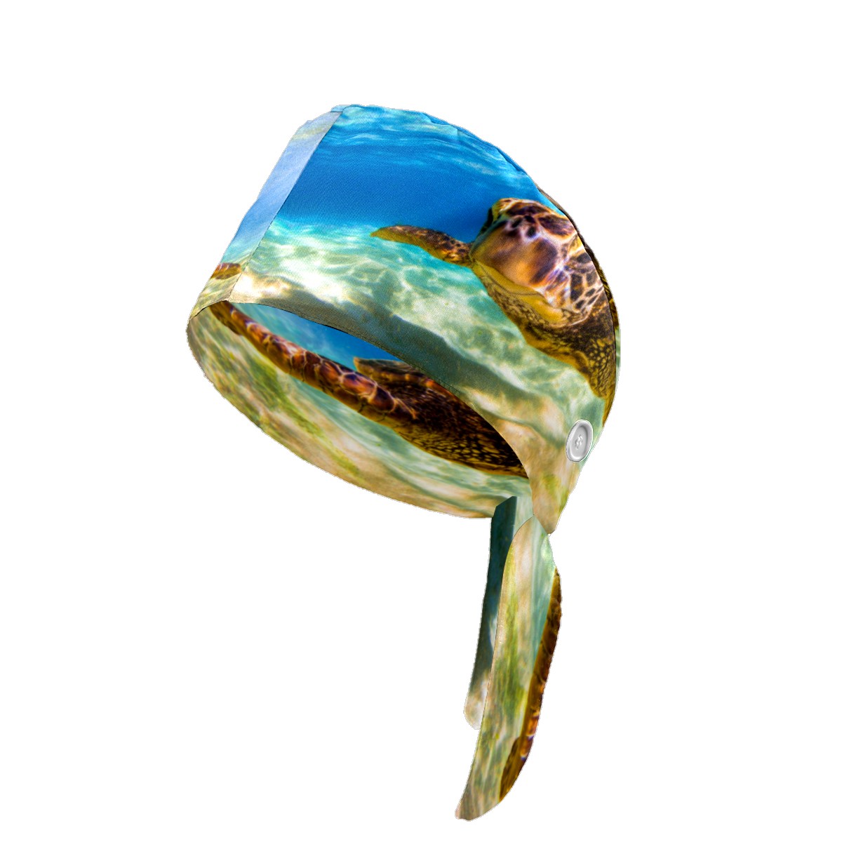 Endangered Hawaiian Green Sea Turtle Working Cap Button and Sweatband Adjustable Elastic Head Cover Hair Tie Back Work Hats for Women Men