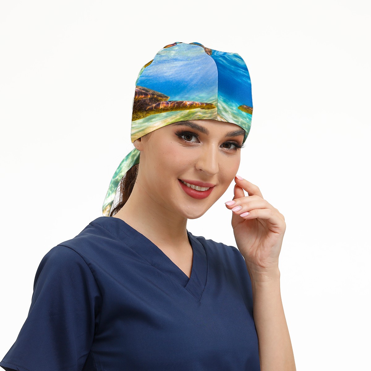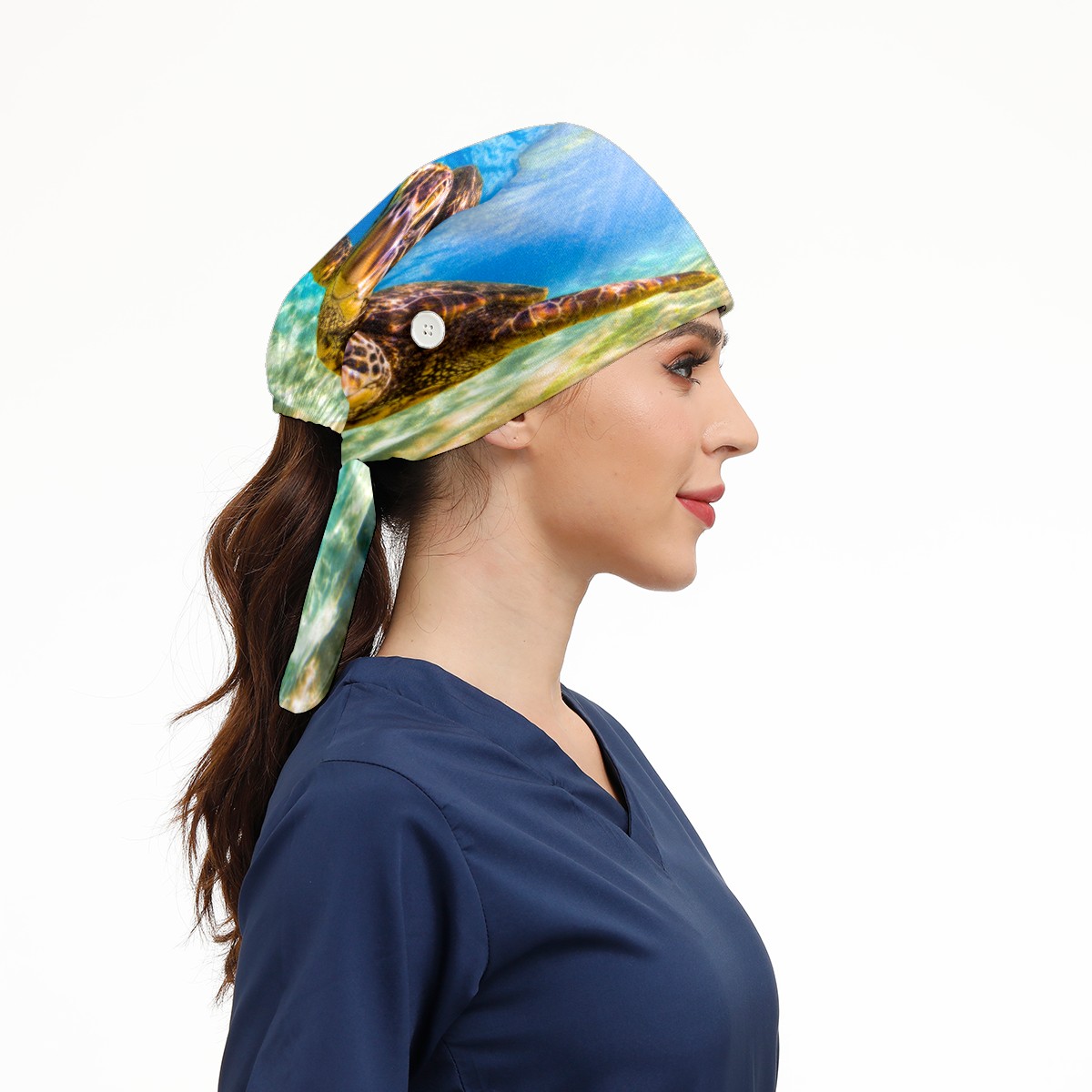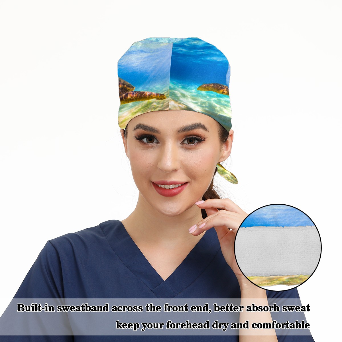 Endangered Hawaiian Green Sea Turtle Working Cap Button and Sweatband Adjustable Elastic Head Cover Hair Tie Back Work Hats for Women Men