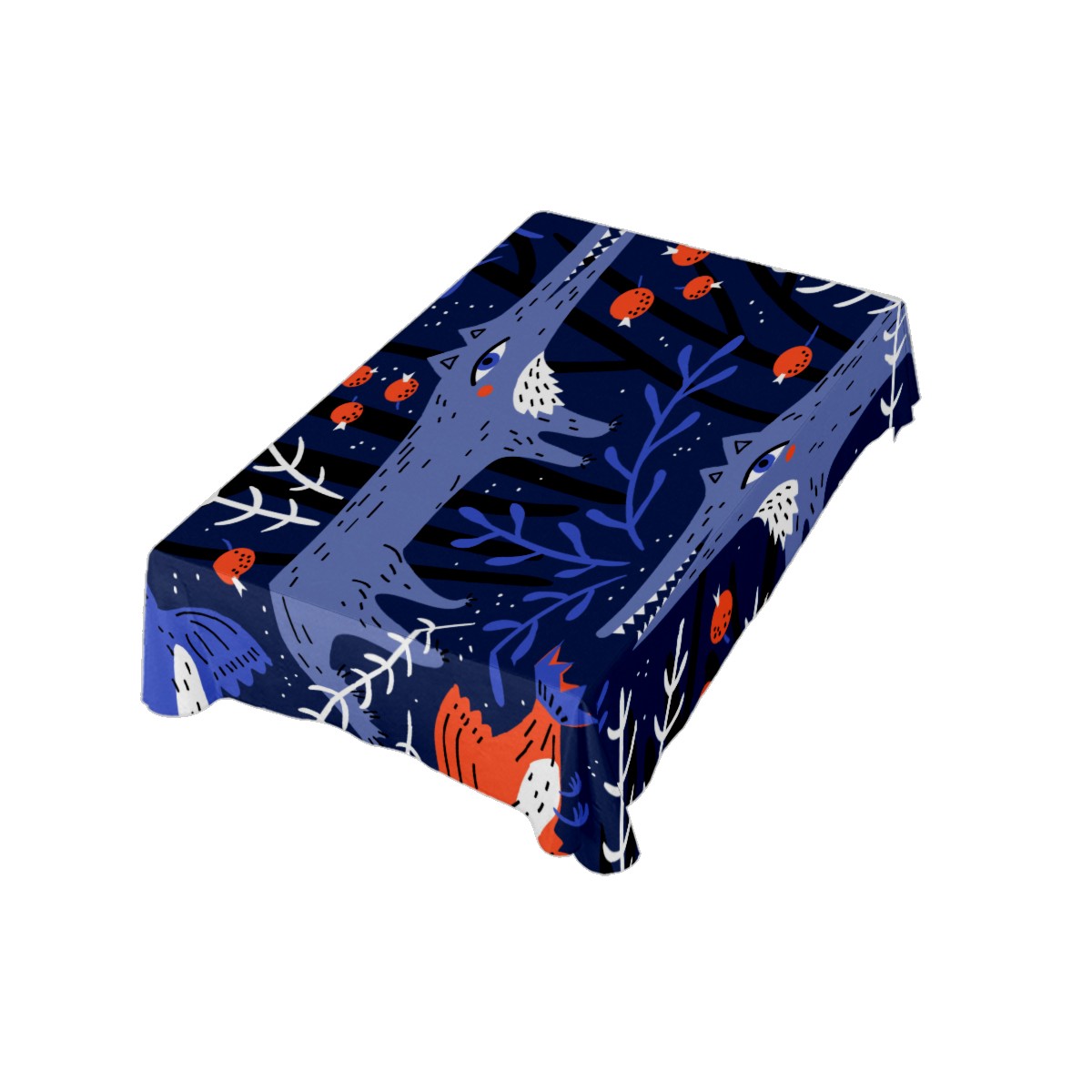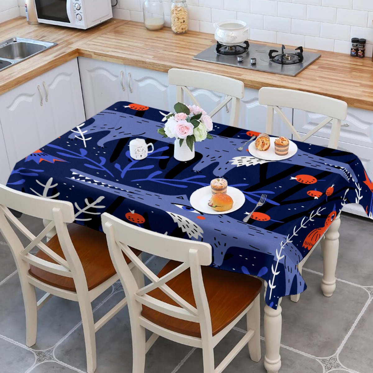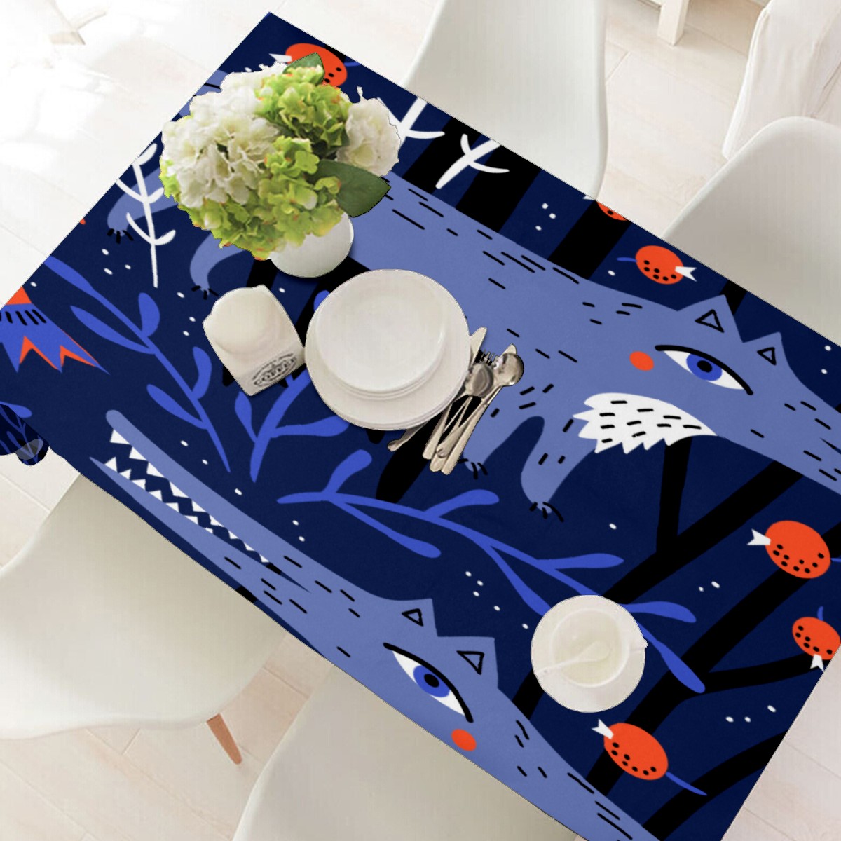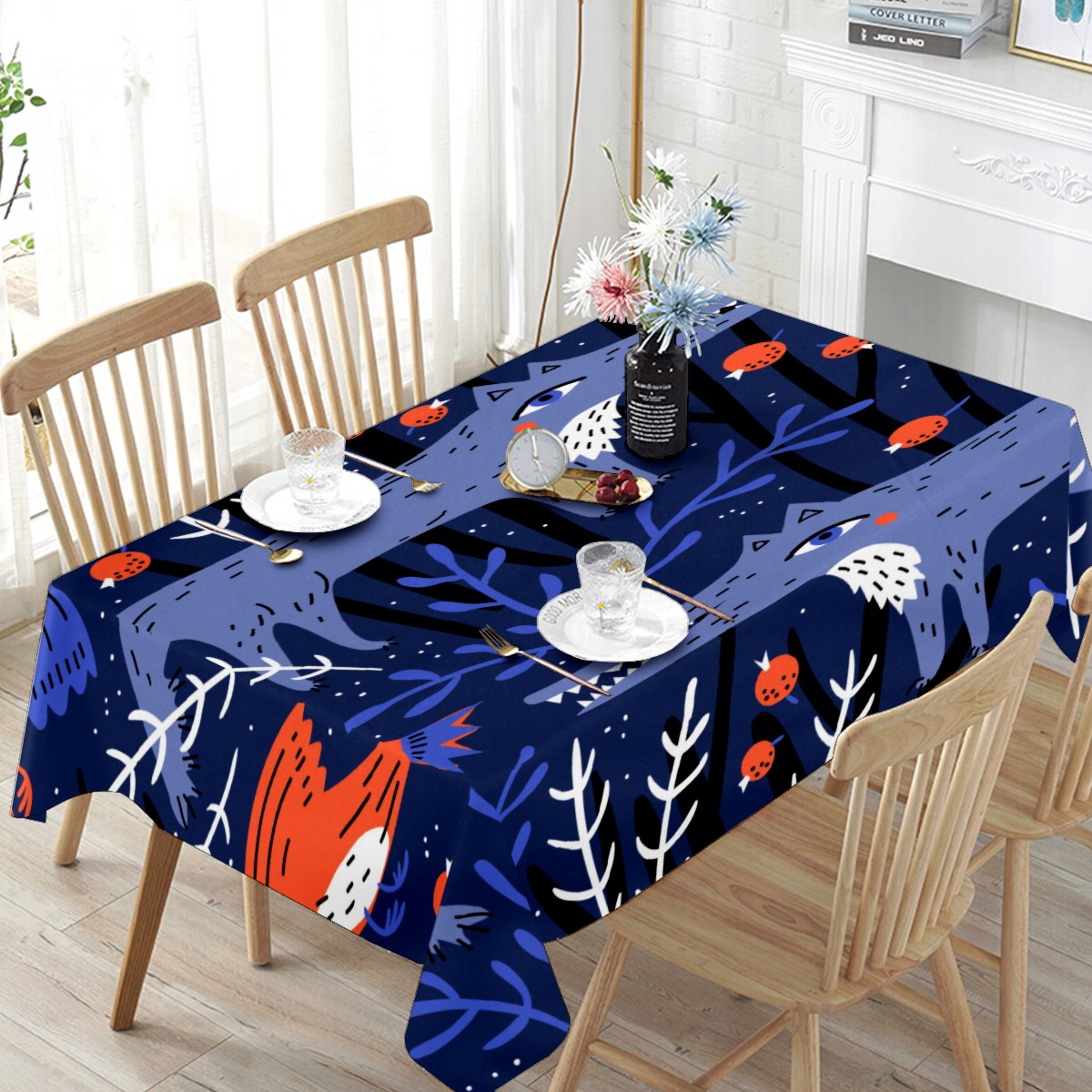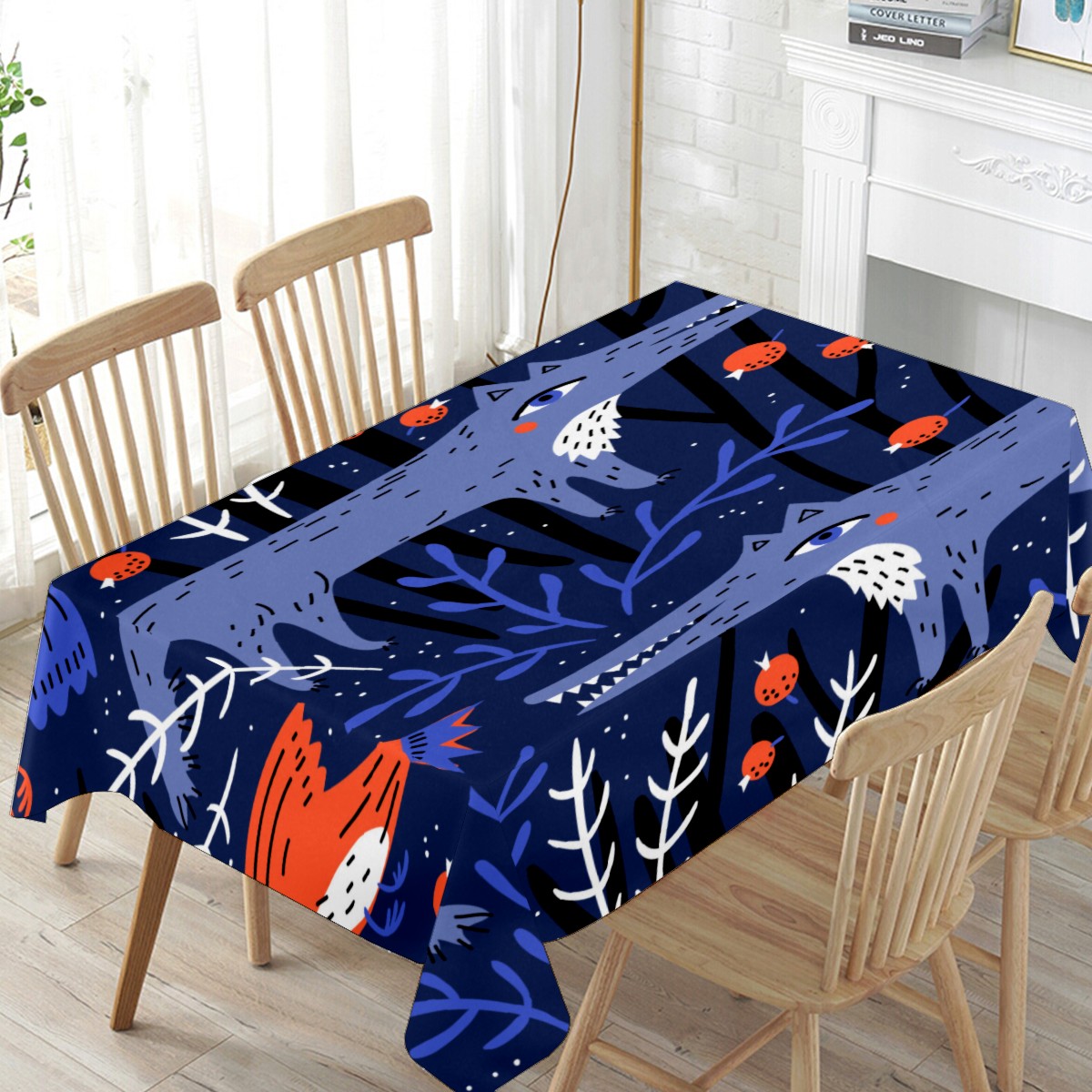 Rectangle Tablecloth Wolf Pigeon Animal Cartoon Table Cloth 54x54in Table Cover for Kitchen Dining Table Party Home Decoration Washable Table Runner