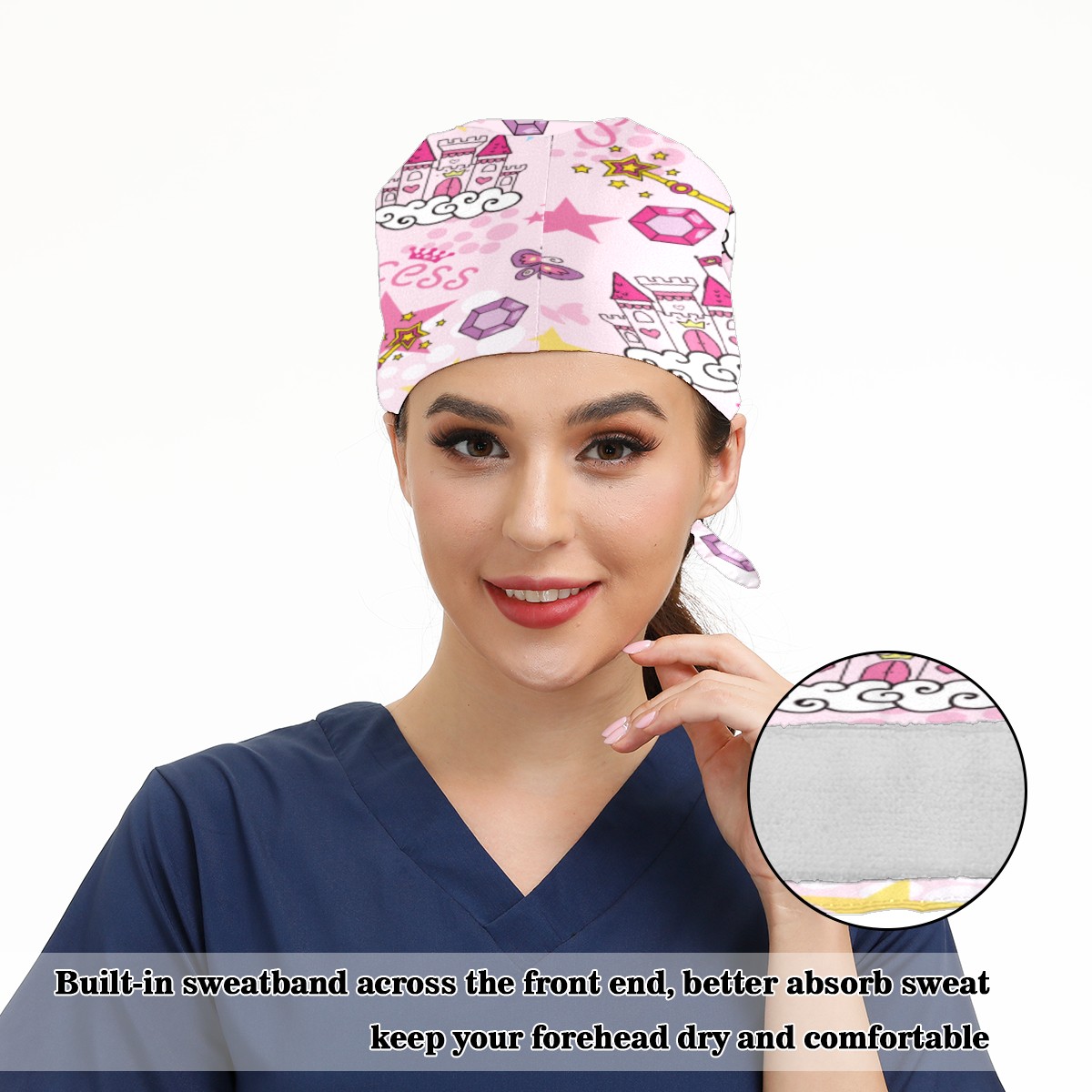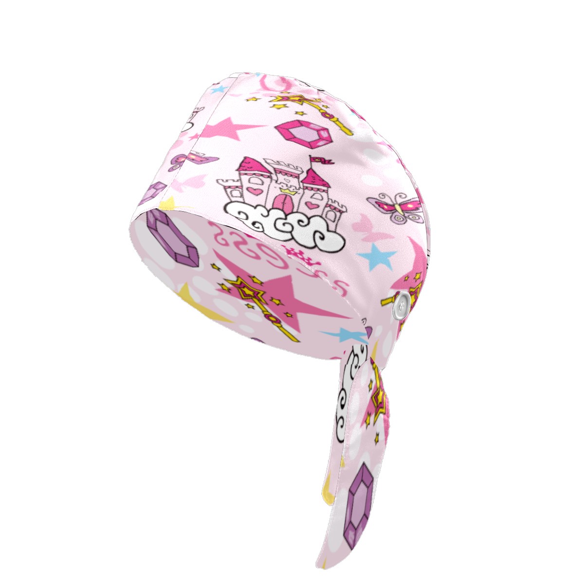 Pink Princess Castle Working Cap Button and Sweatband Adjustable Elastic Head Cover Hair Tie Back Work Hats for Women Men