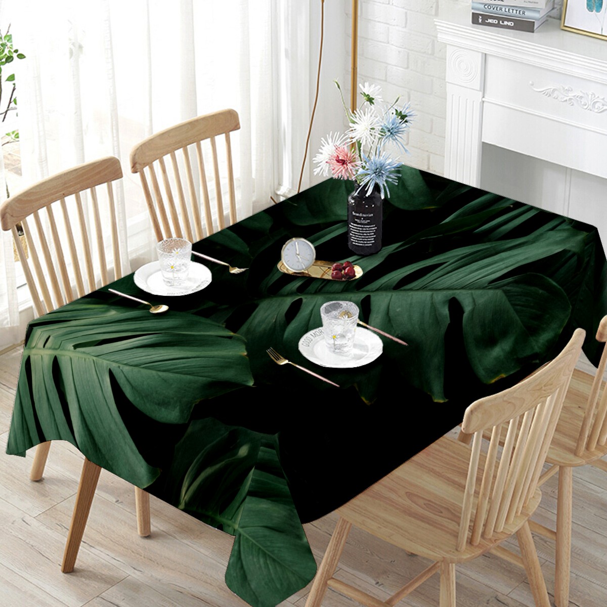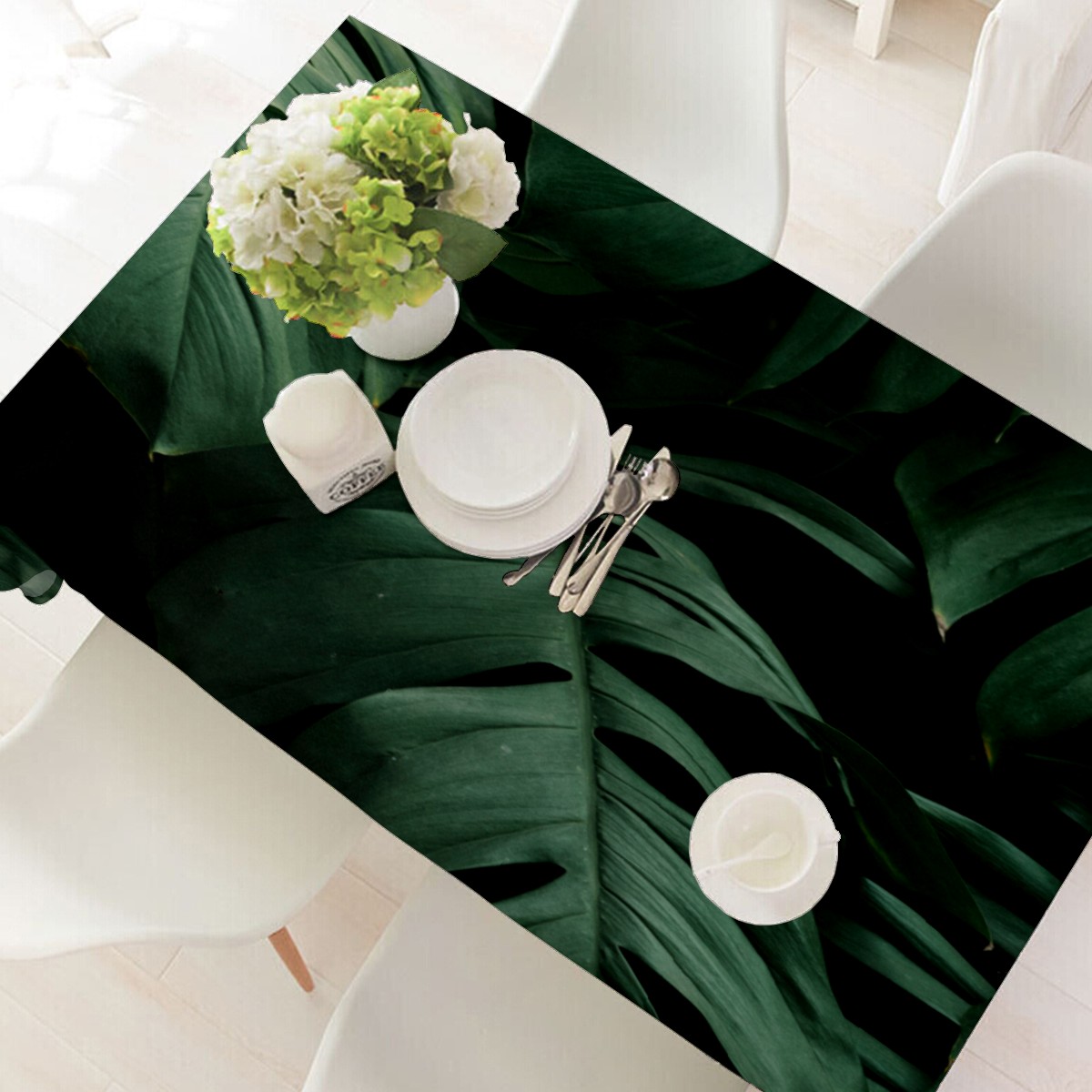 Rectangle Tablecloth Tropical Palm Leaves Green Table Cloth 54x54in Table Cover for Kitchen Dining Table Party Home Decoration Washable Table Runner