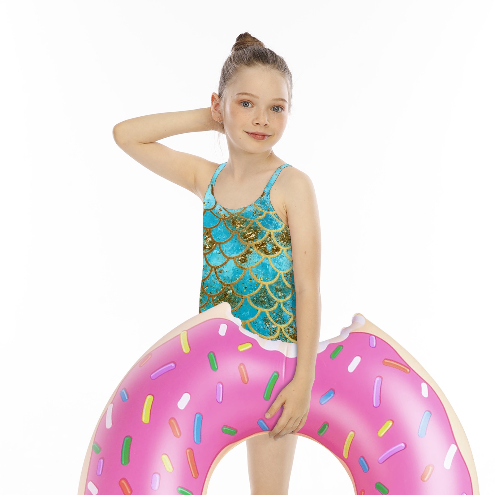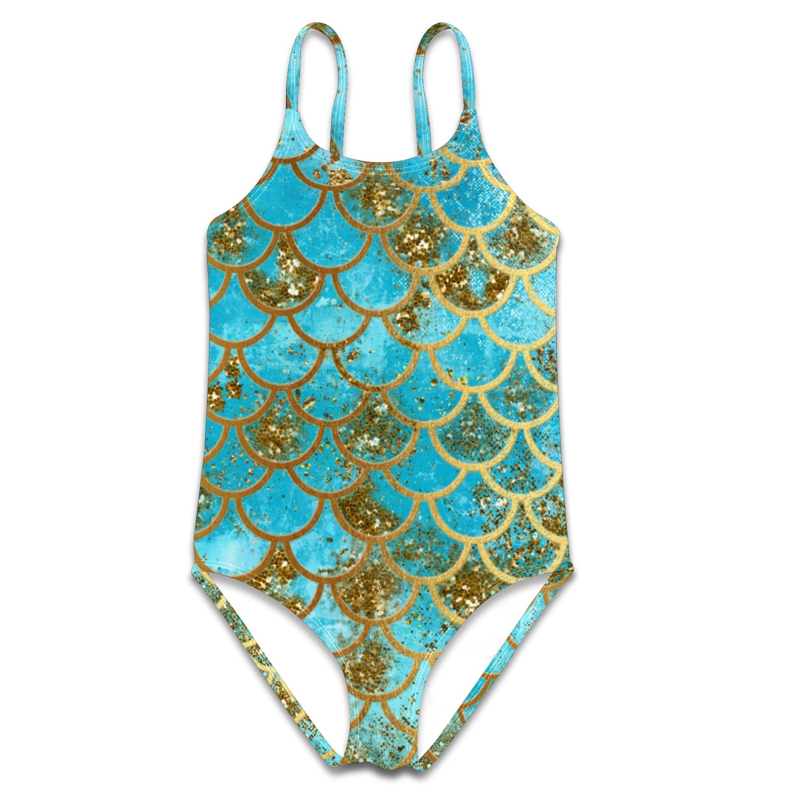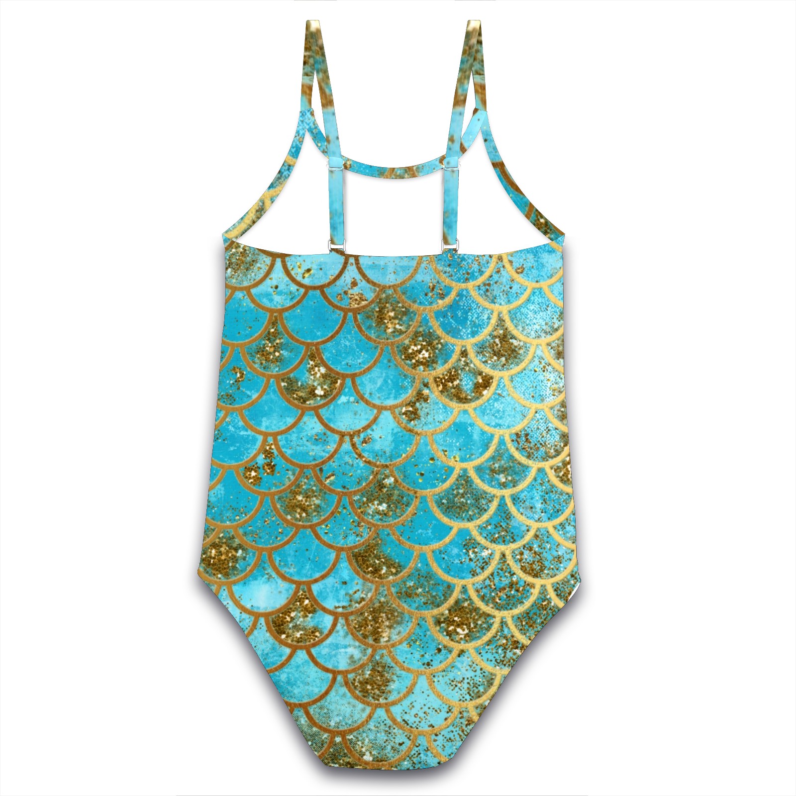 Girls Swimsuits One-Piece Iridescent Teal Gold Mermaid Scales Beach Swimwear Summer Bathing Suit