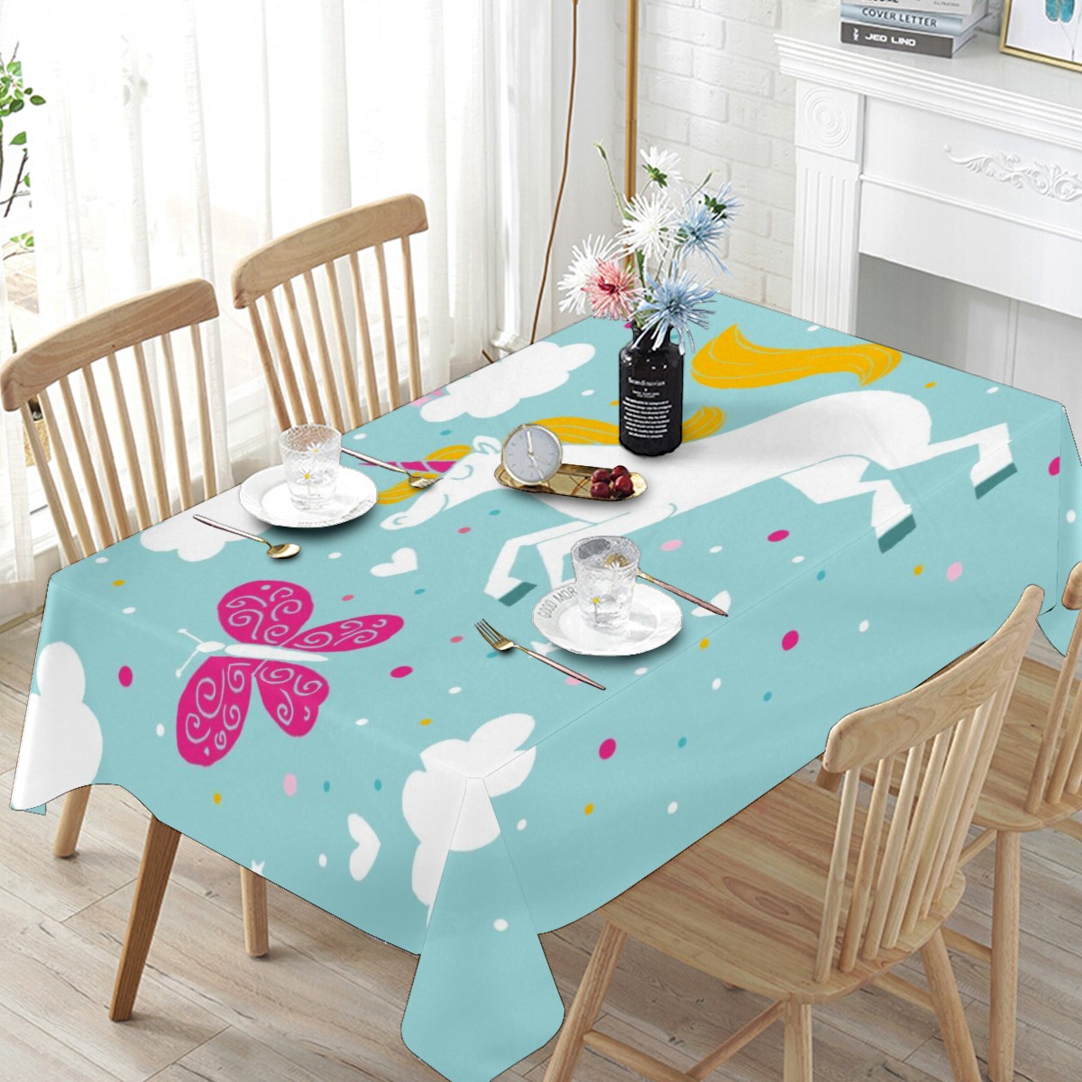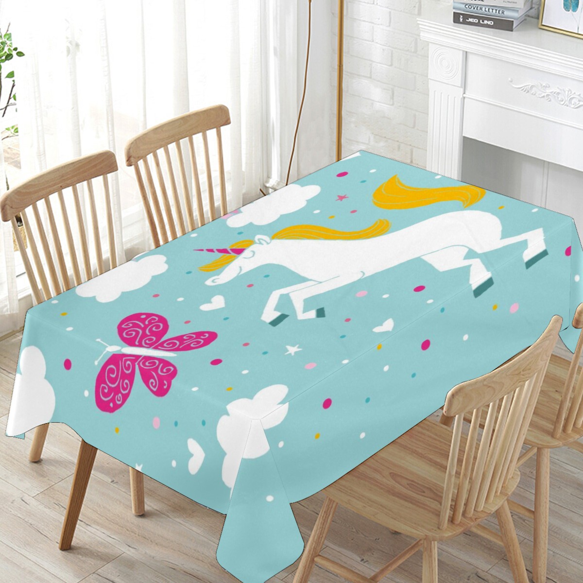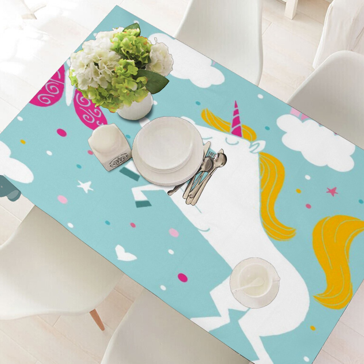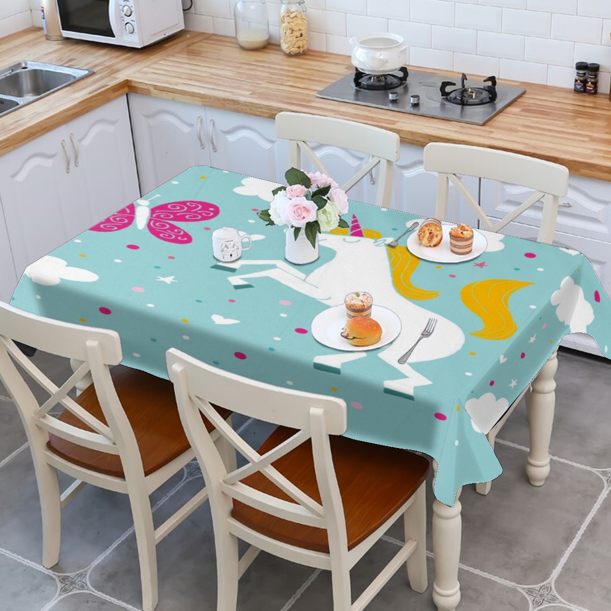 Rectangle Tablecloth Unicorn Rainbow Butterfly Cloud Table Cloth 54x54in Table Cover for Kitchen Dining Table Party Home Decoration Washable Table Runner