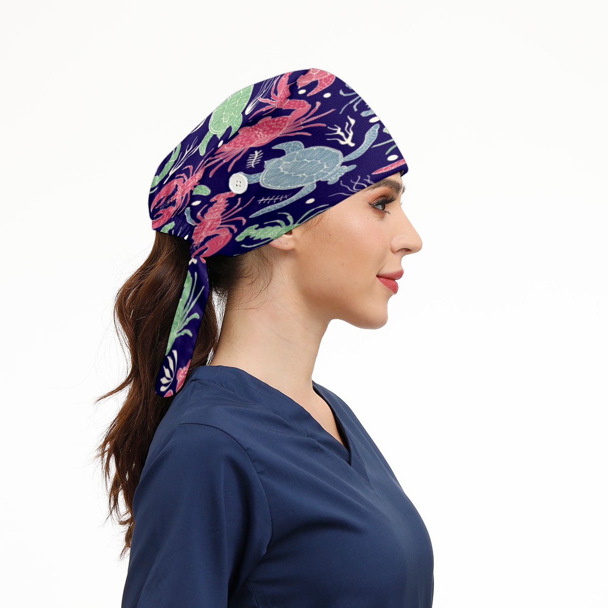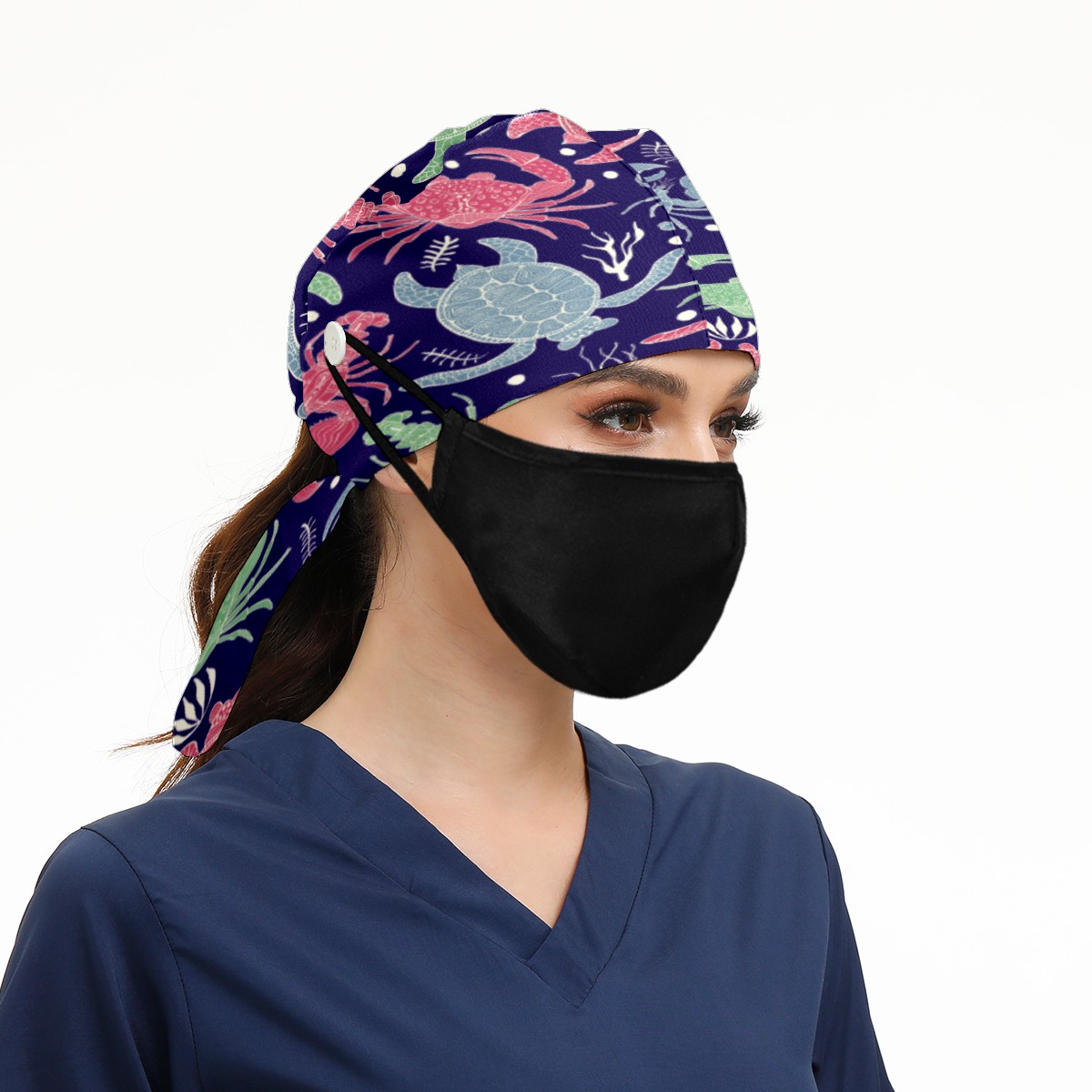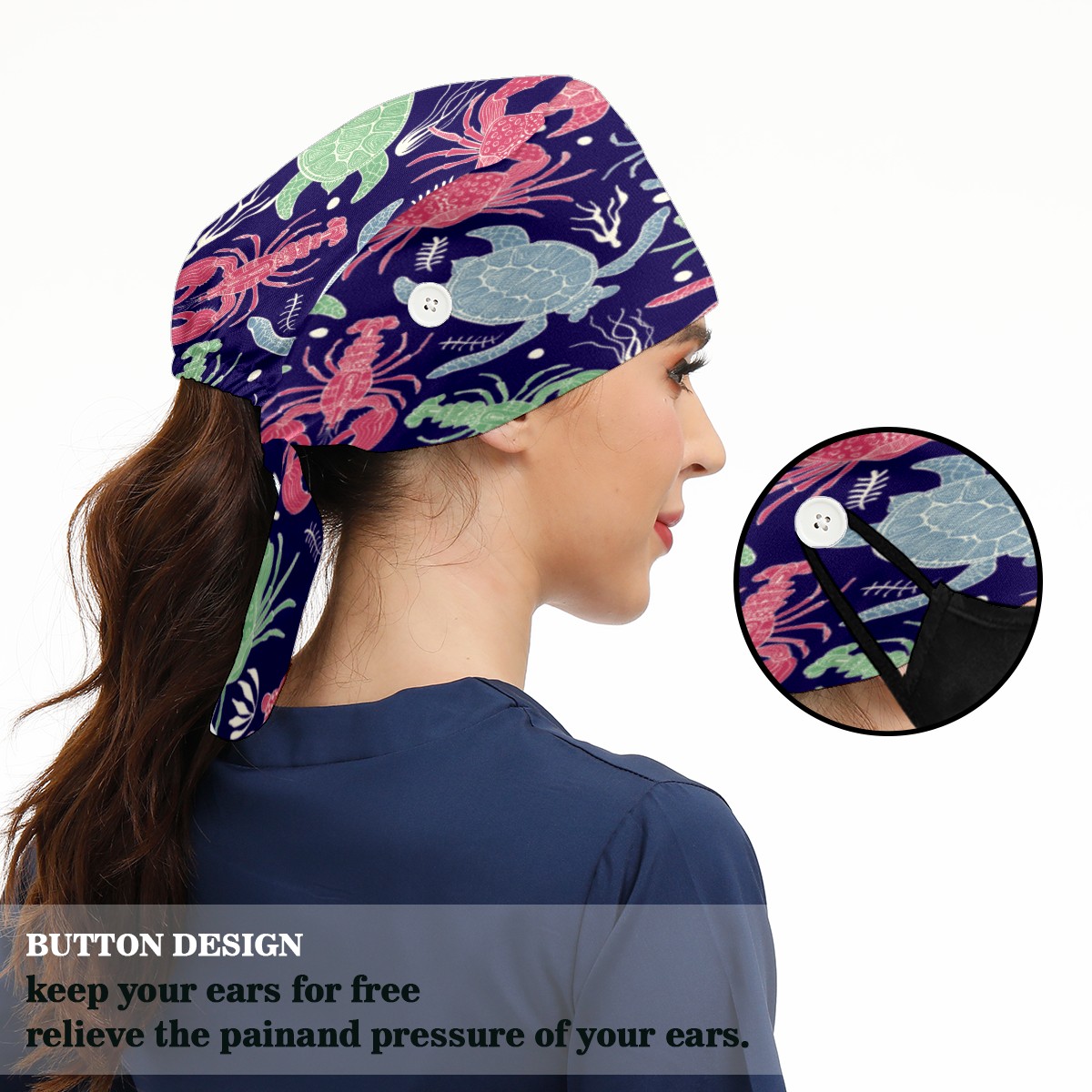 <p>Working cap with Sweatband and Button for Women Men</p><p>Material : 50% cotton+50% polyester</p><p>Size: One size fits most, suitable for both men and women.</p><p>Working Cap with Buttons Design:special design with buttons to protect ears for those who are wearing ma-sk. These new styles hats will allow you to put the straps around the buttons instead of your ears, make you feel more comfortable.</p><p>Sweat-absorbent towel cloth inside: Built-in 100% cotton sweatband, keep the forehead clean after long time working.</p><p>Widely occasion: Widely used in beauty spa, house cleaning, cooking, sleeping, or for cos-play party.</p><p>Lovely pattern: lovely 3D printed pattern, it's perfect for gift to you family and friends.</p>