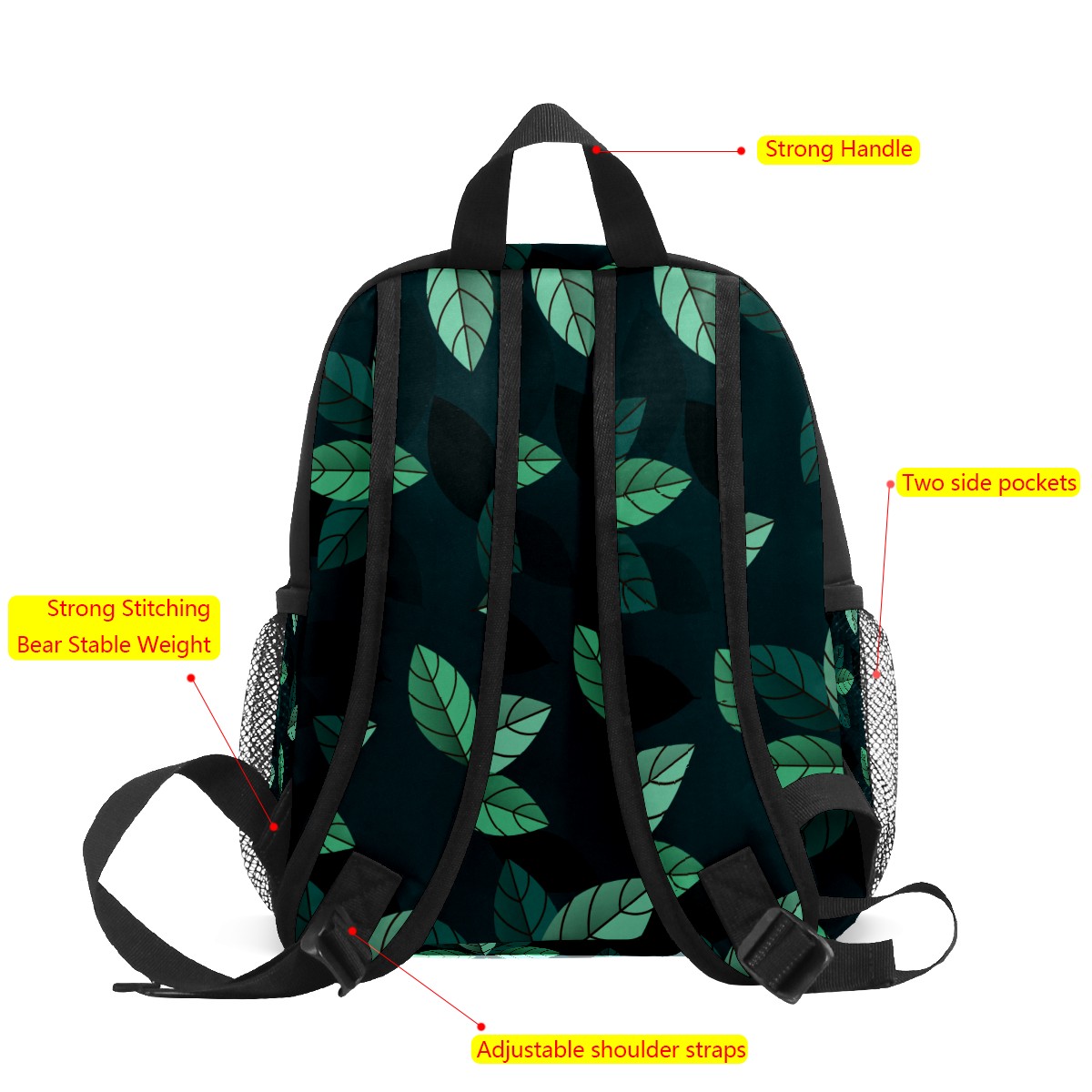Mini Backpack Dark Green Leaves Cute Lightweight School Bags Small Daypack Purse Travel Backpacks Woman Shoulder Bag for Kids Girls Boys(3-8 Years Old)