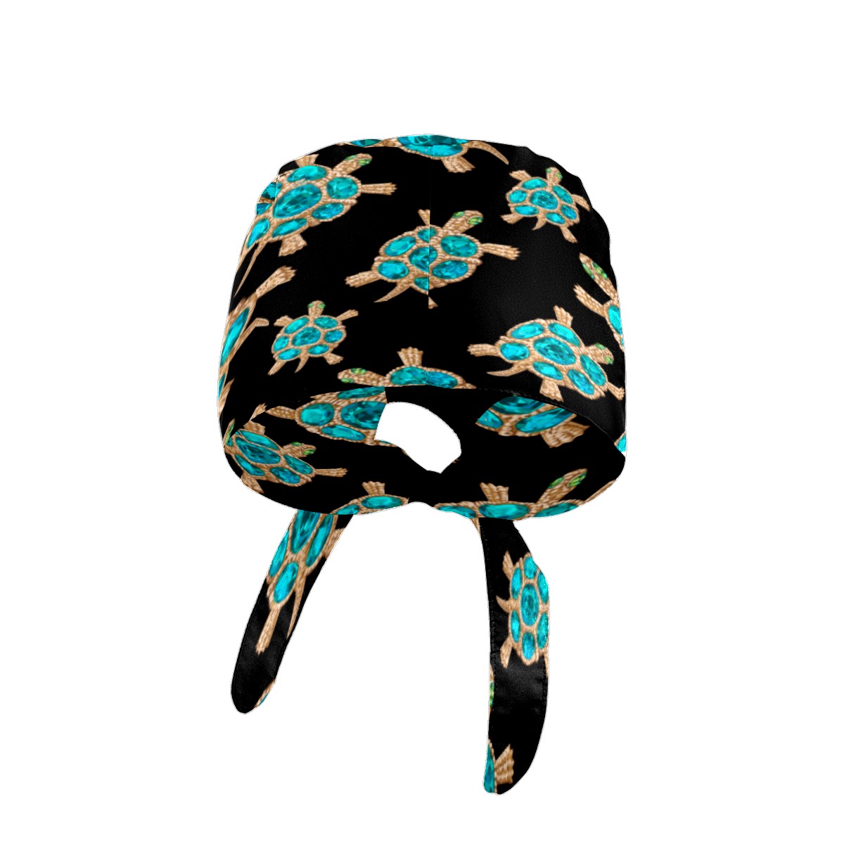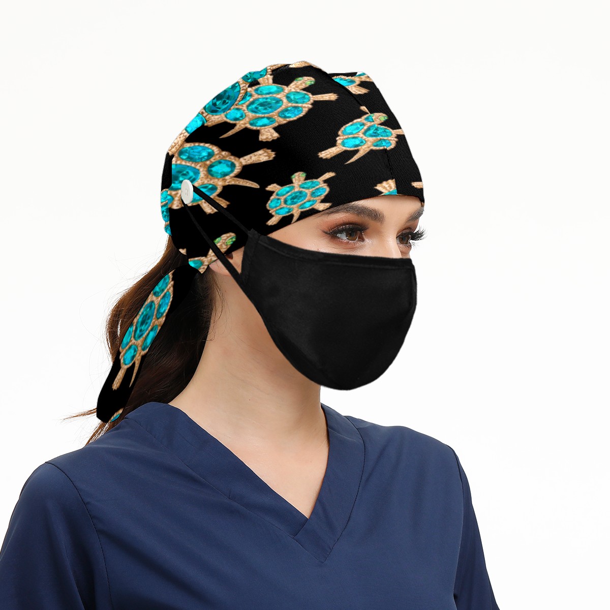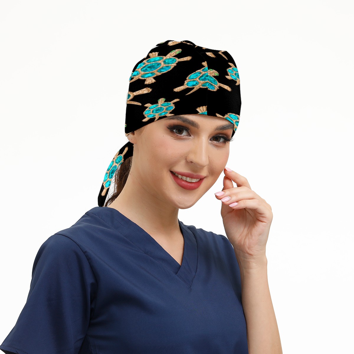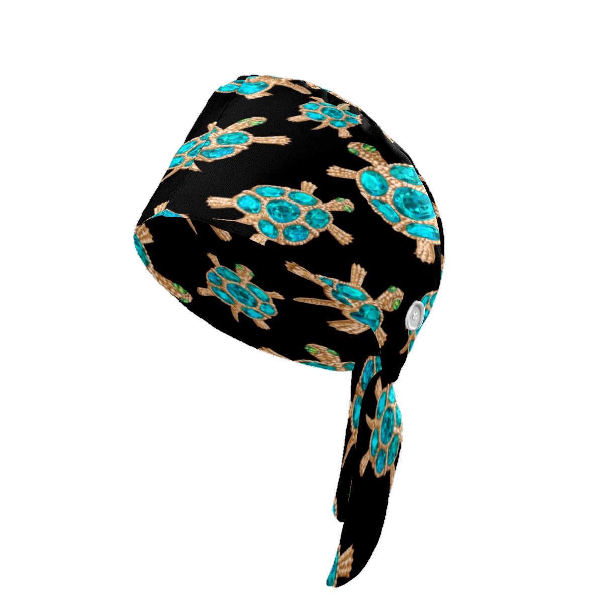 Boho Sea Turtle With Blue Diamond Working Cap Button and Sweatband Adjustable Elastic Head Cover Hair Tie Back Work Hats for Women Men