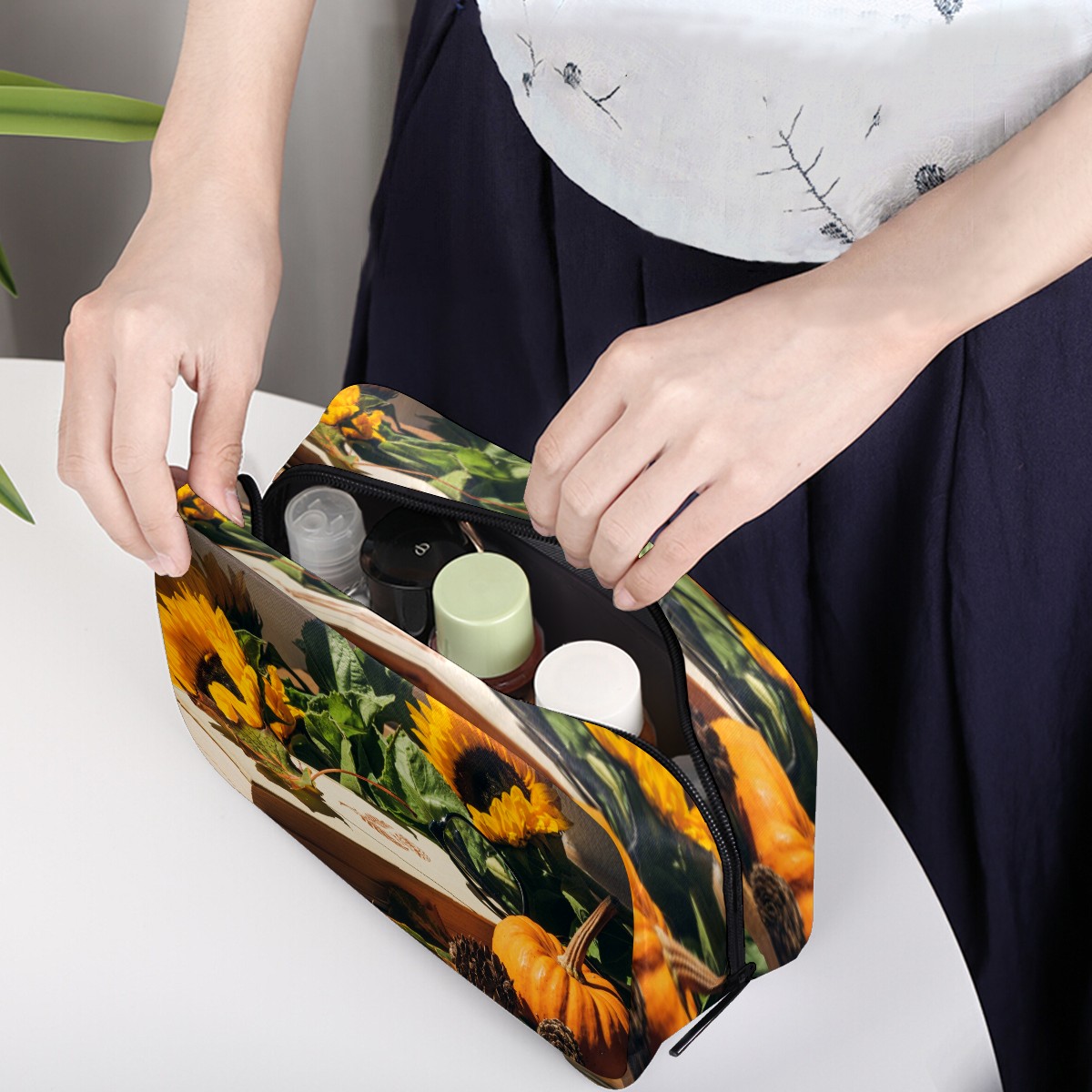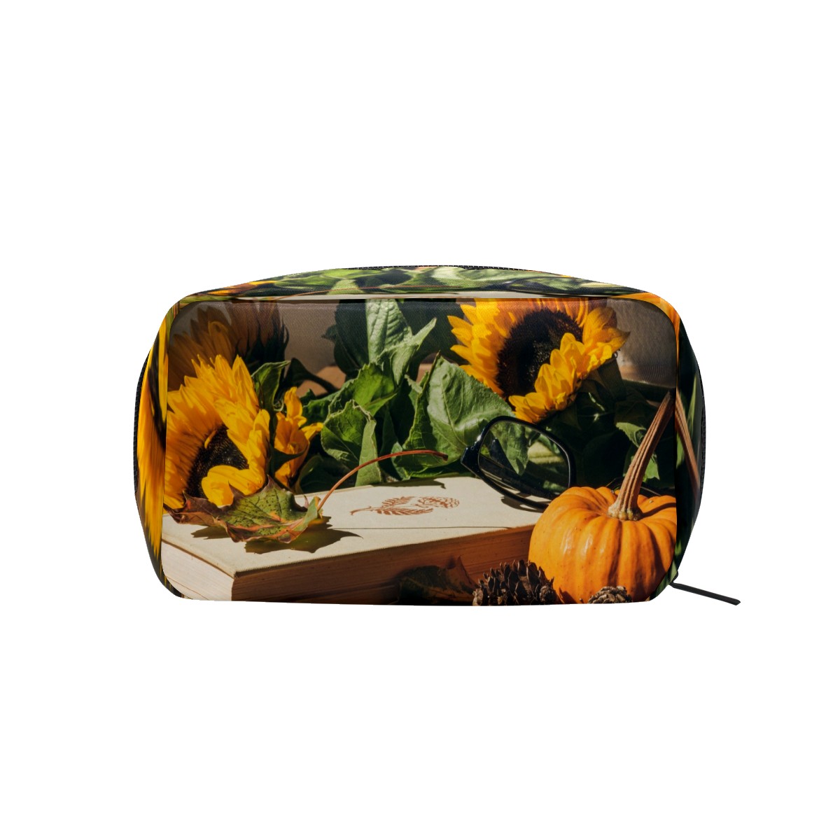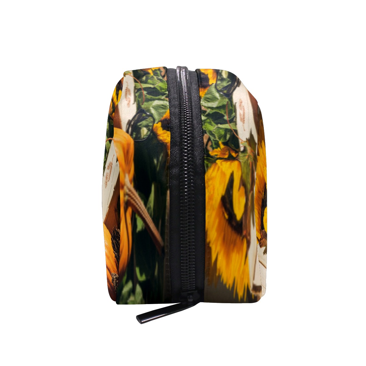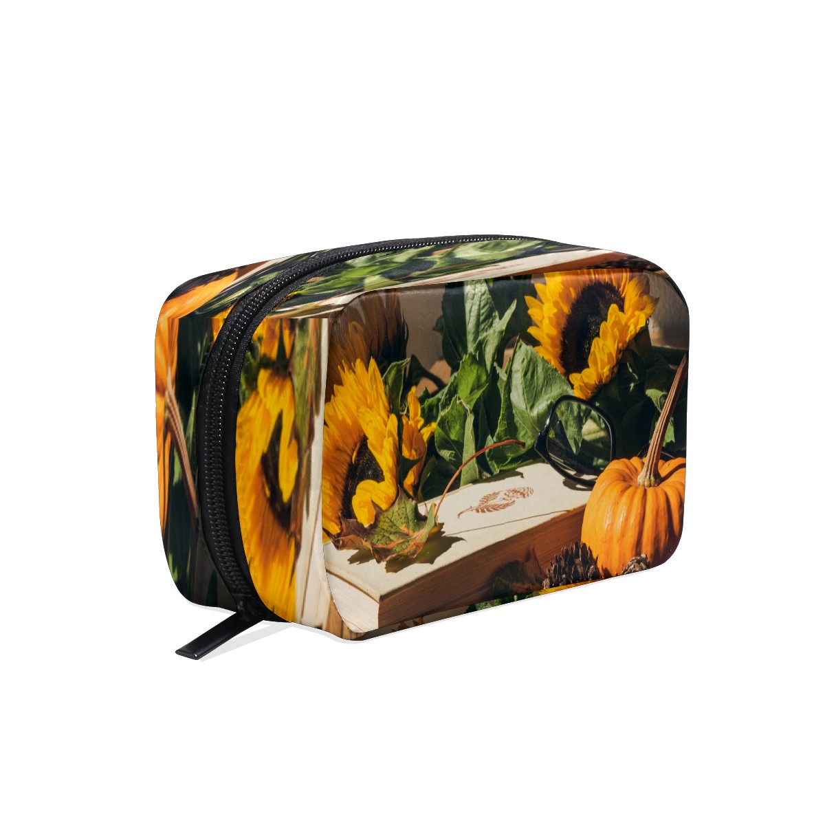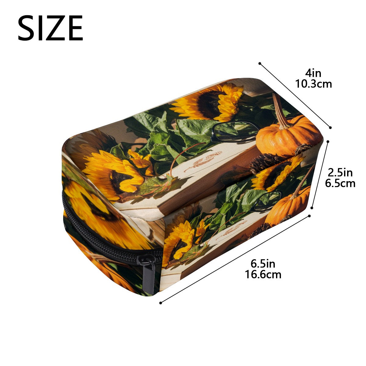 Cosmetic Bag for Women Girls Trave Makeup Bag Toiletry Case Pouch Accessories Organizer Pumpkins With Sunflowers