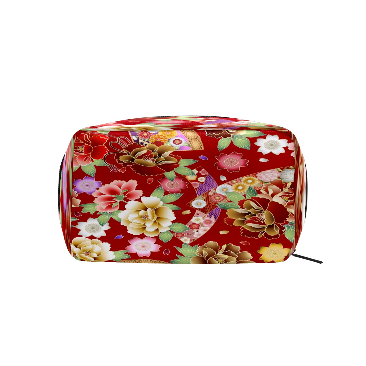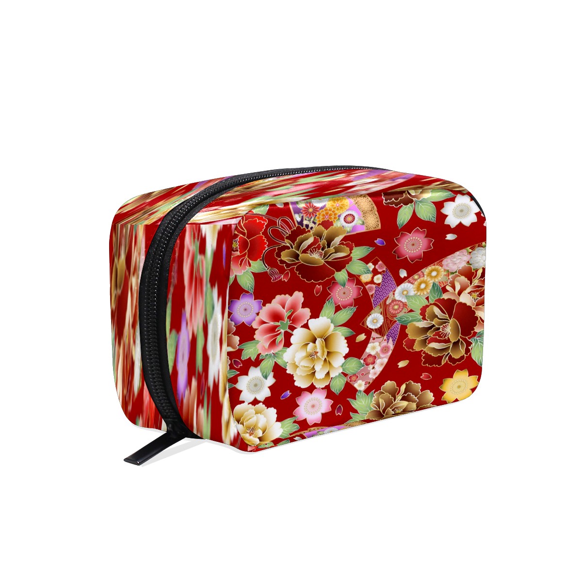 Cosmetic Bag for Women Girls Trave Makeup Bag Toiletry Case Pouch Accessories Organizer Japanese Red Floral Fans Pattern