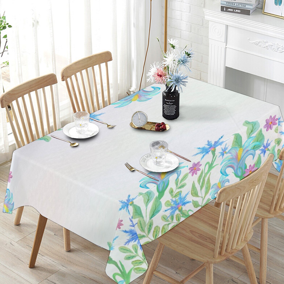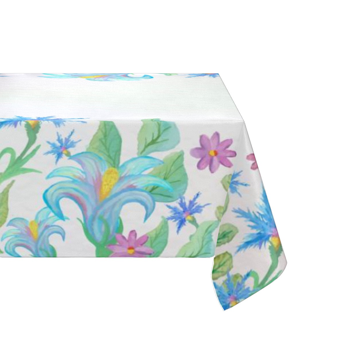 Rectangle Tablecloth Blue Flower Illusion Table Cloth 54x54in Table Cover for Kitchen Dining Table Party Home Decoration Washable Table Runner