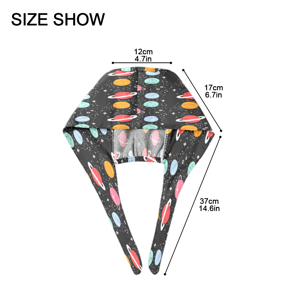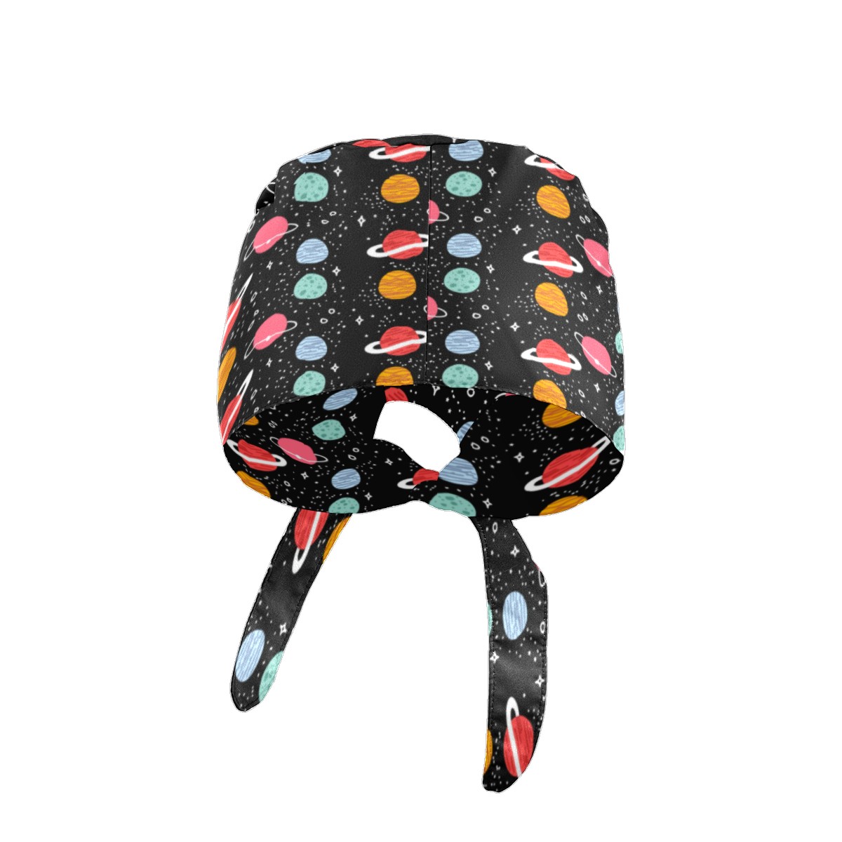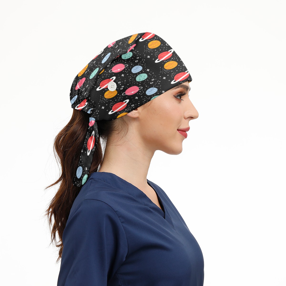 Cute Cartoon Space Planets Working Cap Button and Sweatband Adjustable Elastic Head Cover Hair Tie Back Work Hats for Women Men