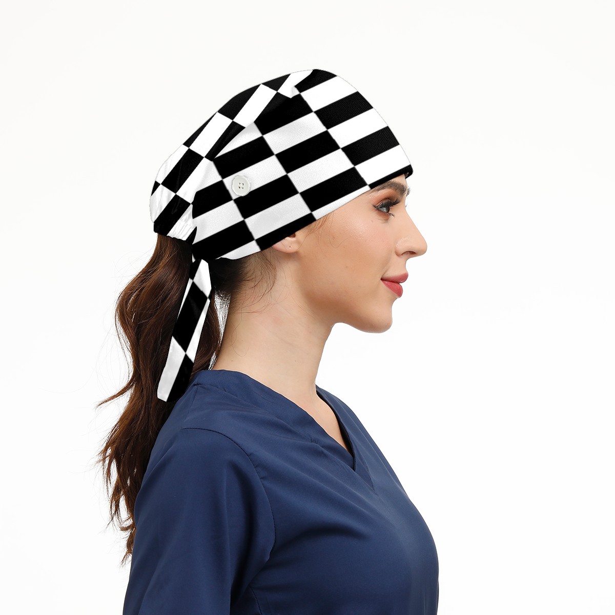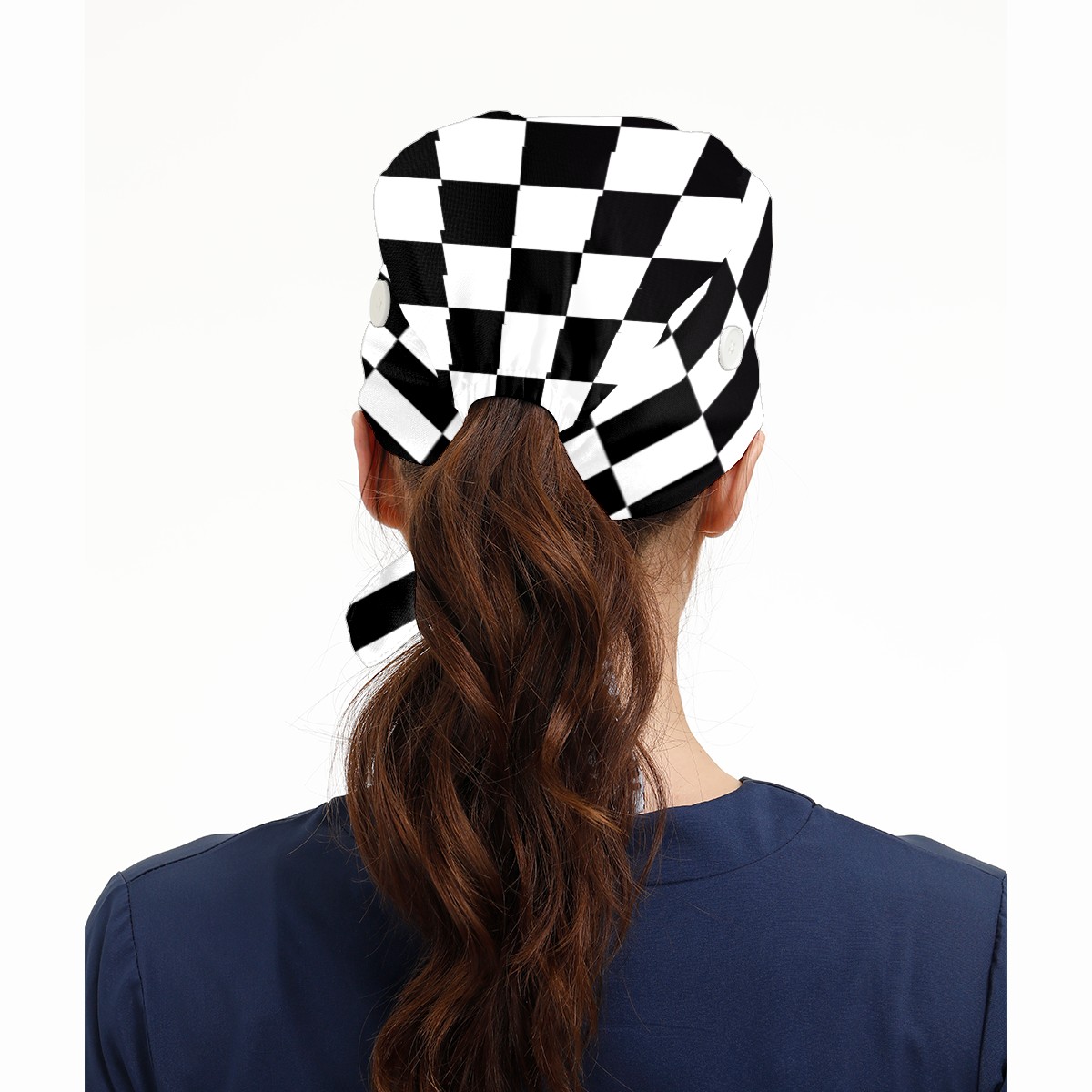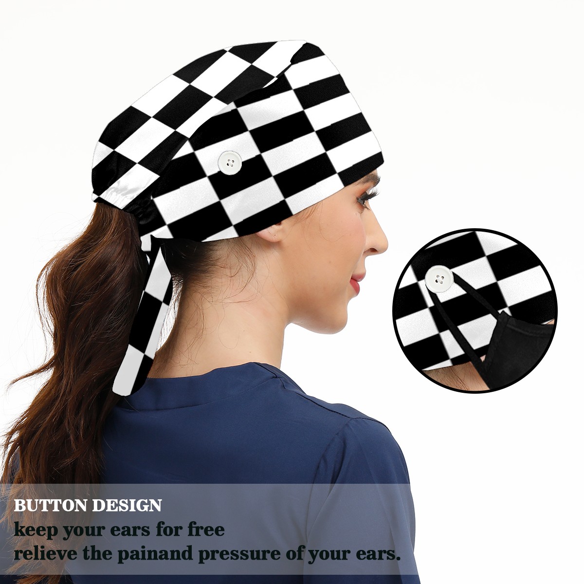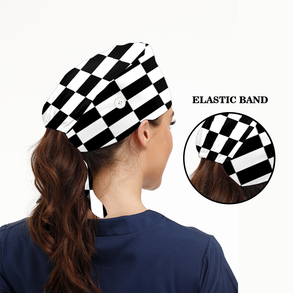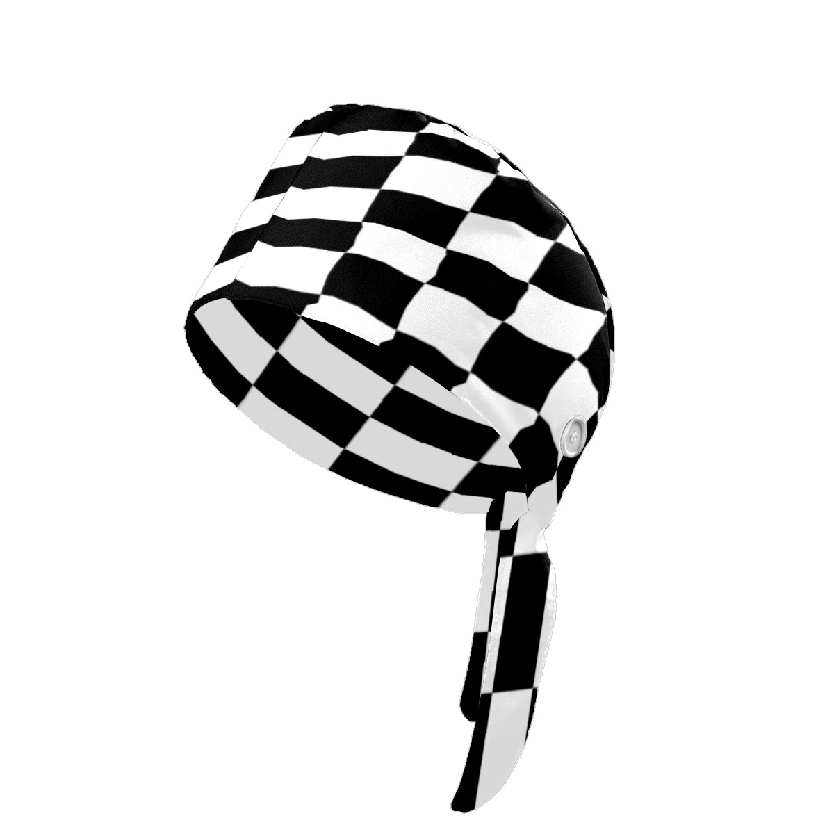 Black And White Checkered Pattern Working Cap Button and Sweatband Adjustable Elastic Head Cover Hair Tie Back Work Hats for Women Men