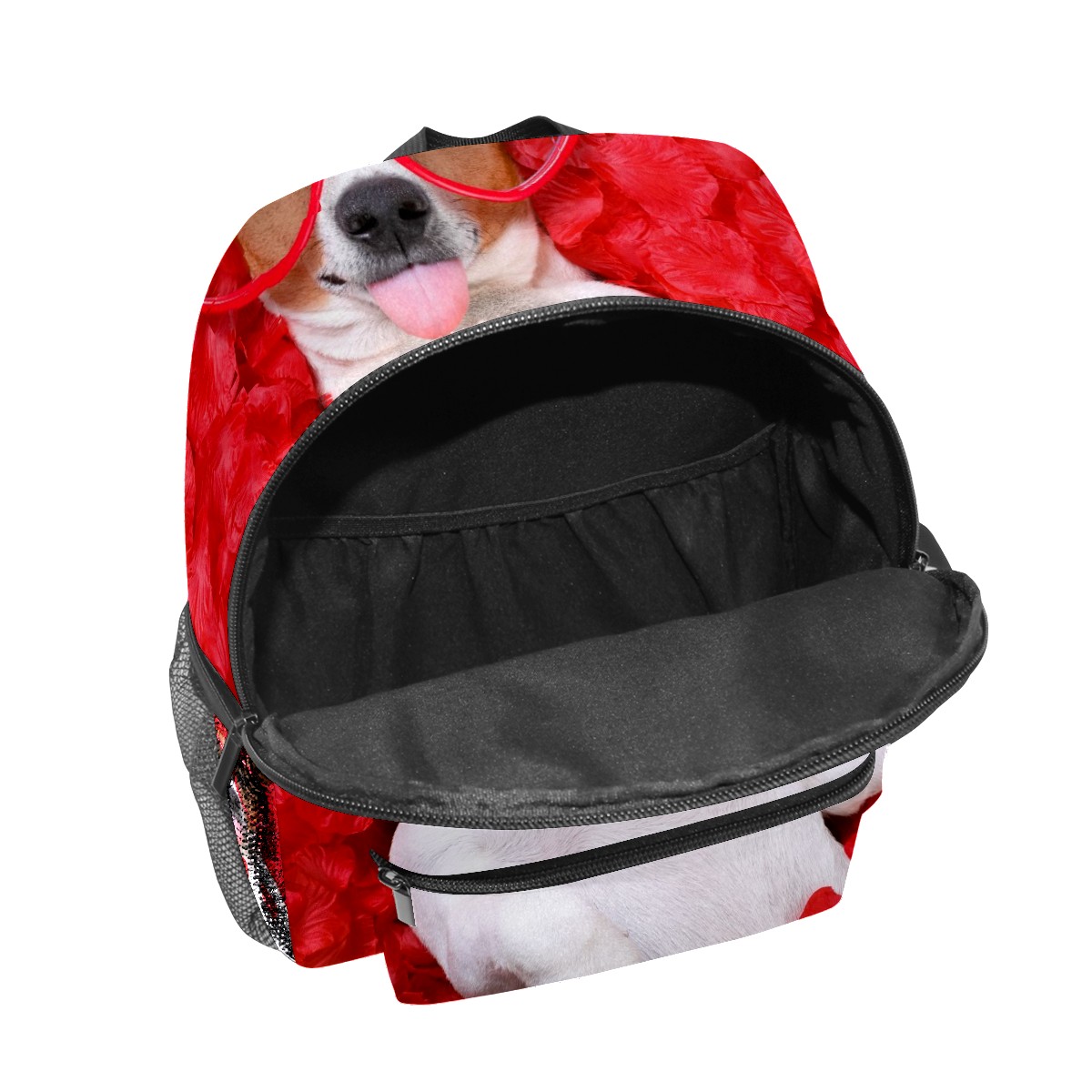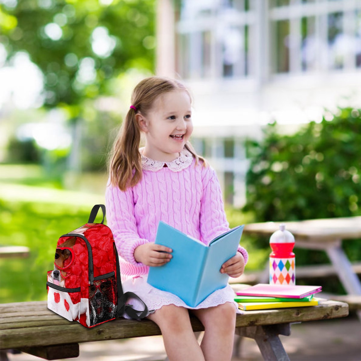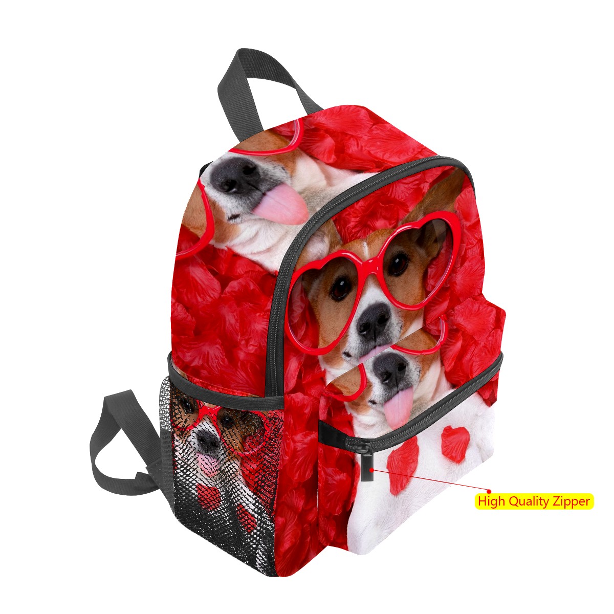 Mini Backpack Dog And Red Petals Cute Lightweight School Bags Small Daypack Purse Travel Backpacks Woman Shoulder Bag for Kids Girls Boys(3-8 Years Old)