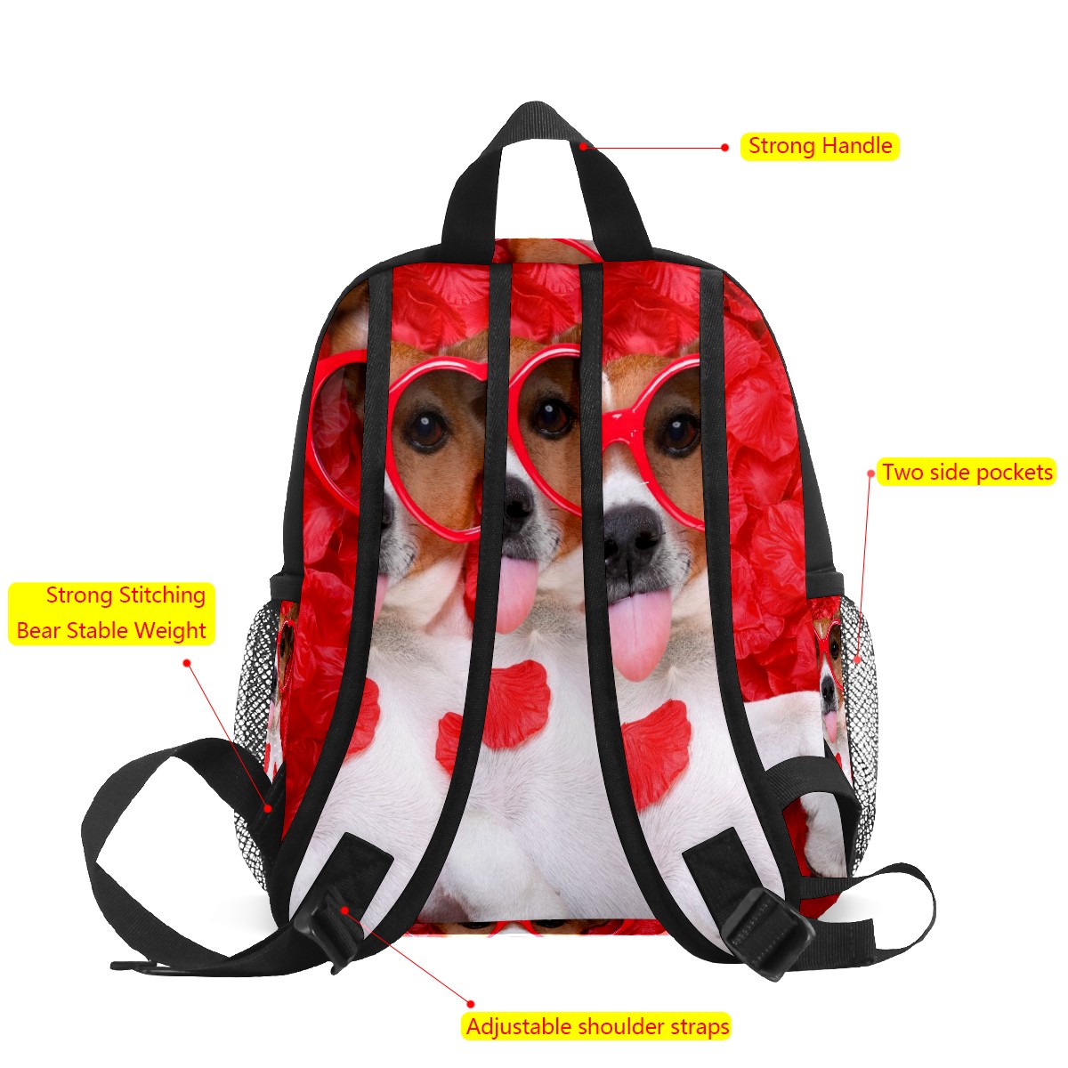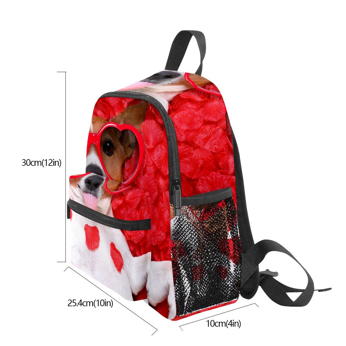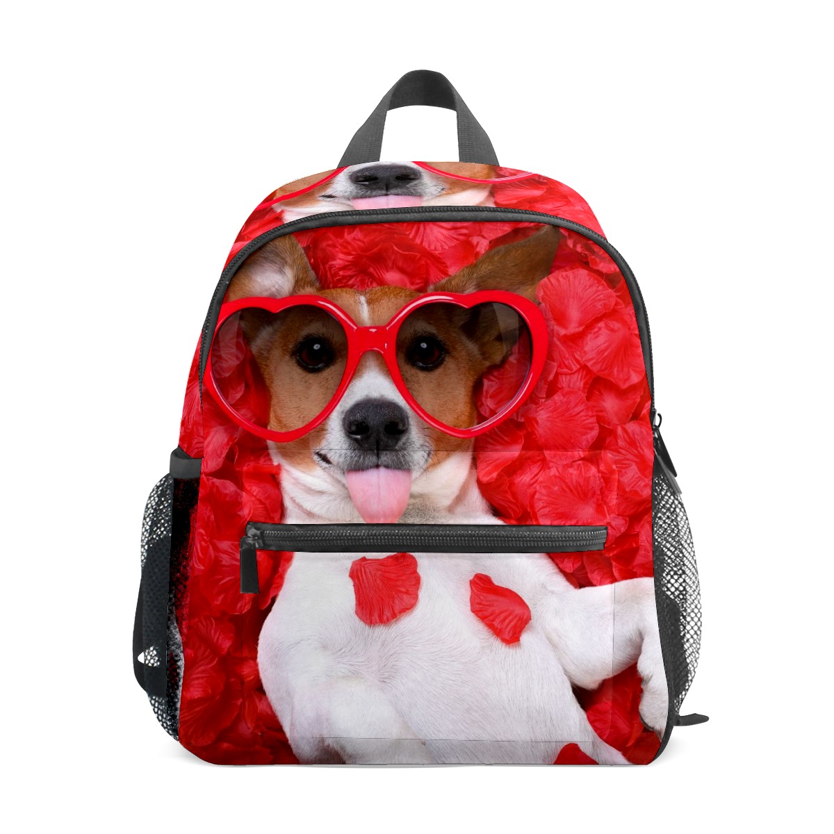 Mini Backpack Dog And Red Petals Cute Lightweight School Bags Small Daypack Purse Travel Backpacks Woman Shoulder Bag for Kids Girls Boys(3-8 Years Old)