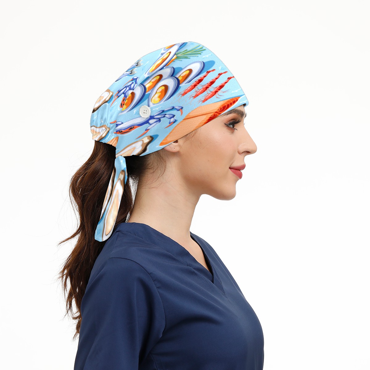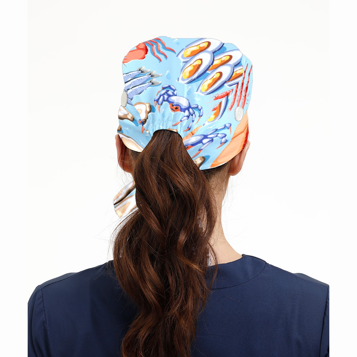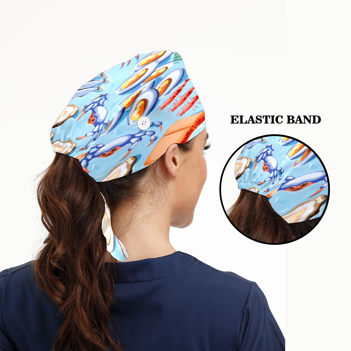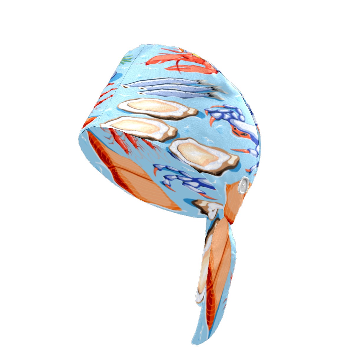 Fish Mussels Crawfish Crabs Shrimp Oysters Lobster Working Cap Button and Sweatband Adjustable Elastic Head Cover Hair Tie Back Work Hats for Women Men