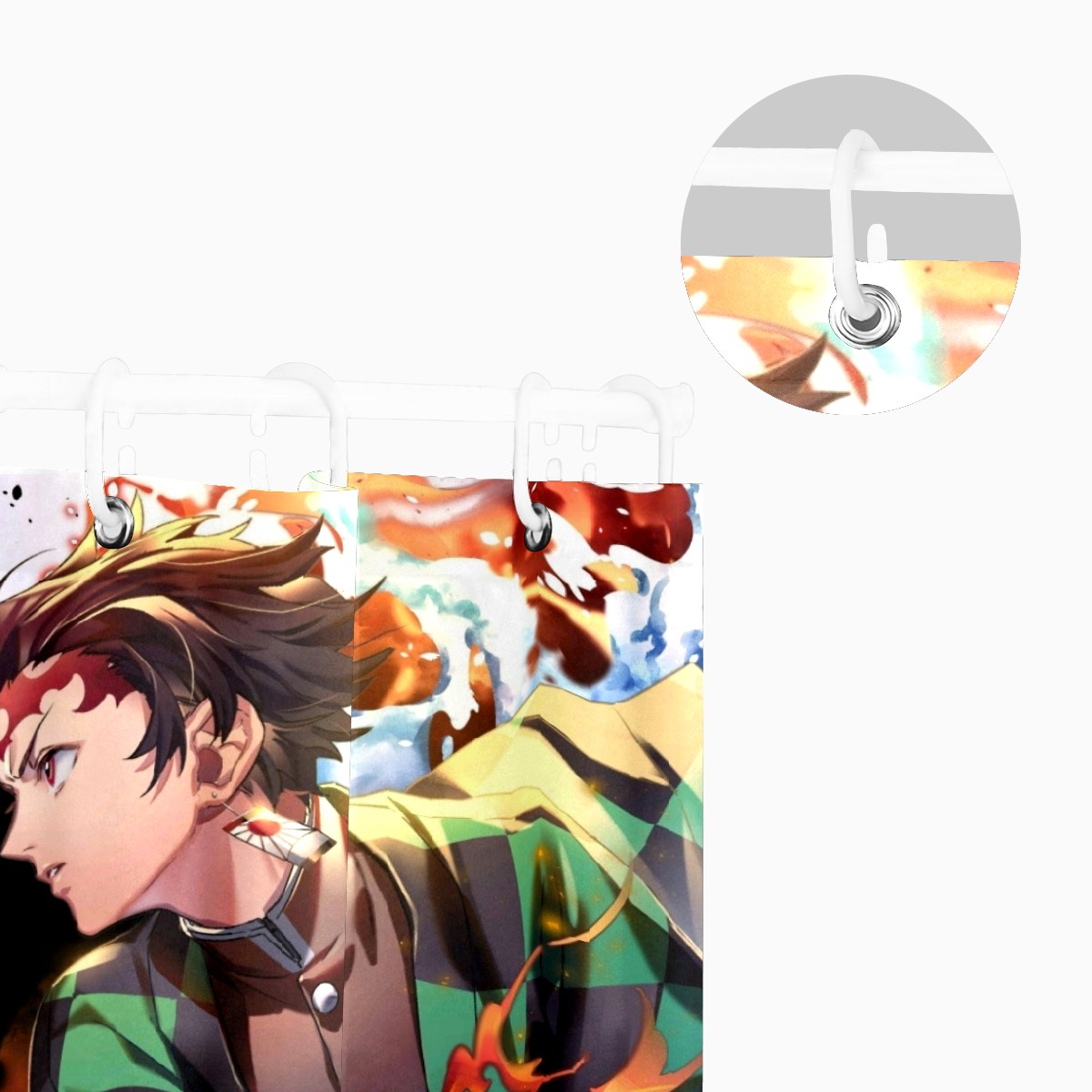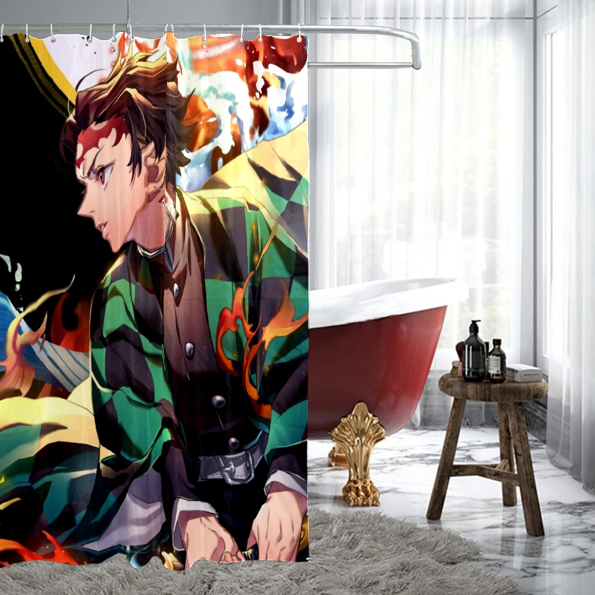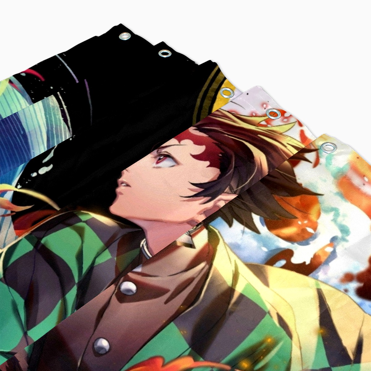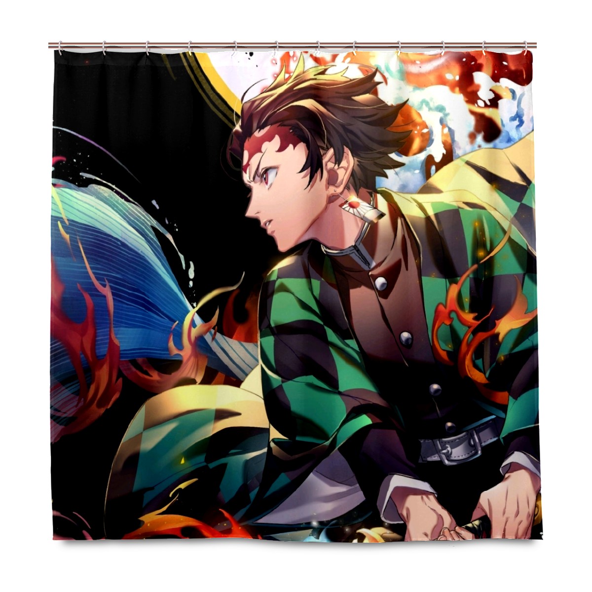 Demon Slayer Kamado Tanjirou Fire Water Shower Curtain 100% Polyester Hotel Home Bathroom Decor Washable Bath Curtain 60"x72"