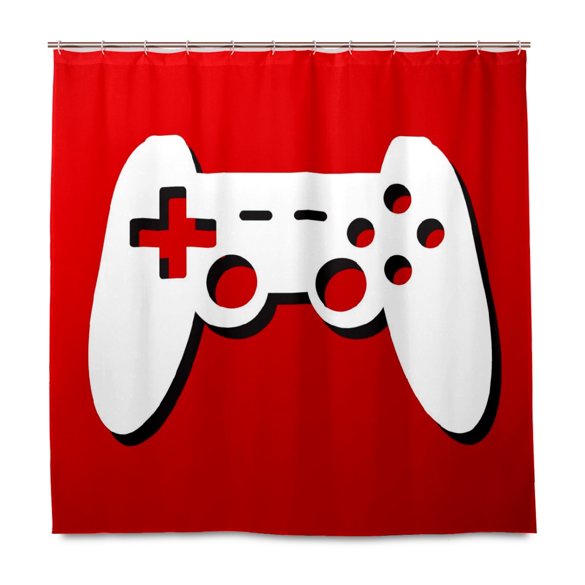 White Playing Game Controller Red Shower Curtain 100% Polyester Hotel Home Bathroom Decor Washable Bath Curtain 60"x72"