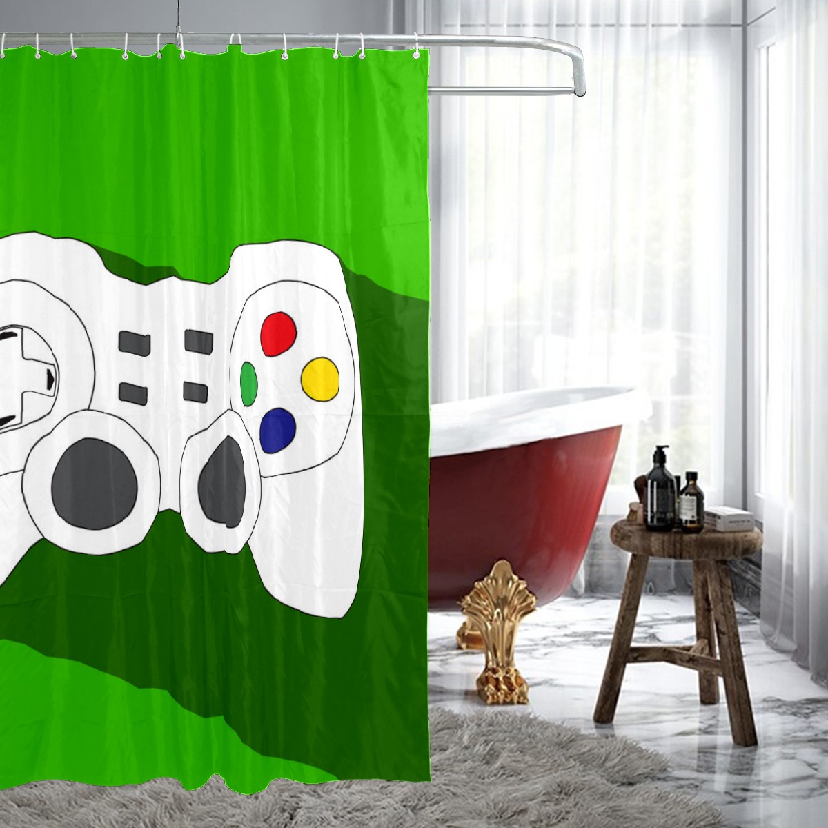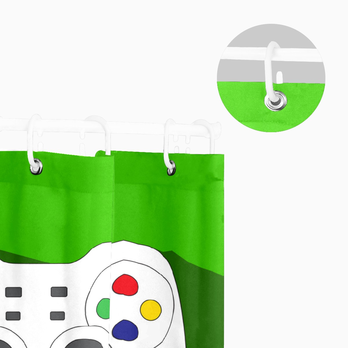 White Game Controller Green Shower Curtain 100% Polyester Hotel Home Bathroom Decor Washable Bath Curtain 60"x72"