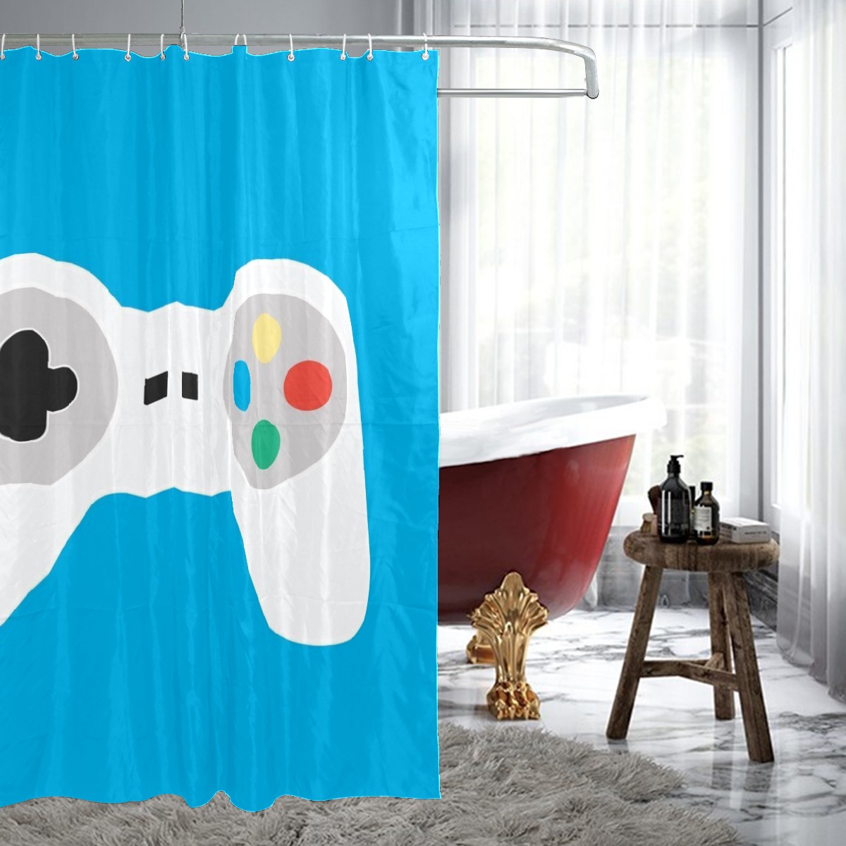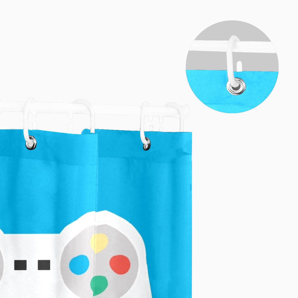 White Game Controller Blue Background Shower Curtain 100% Polyester Hotel Home Bathroom Decor Washable Bath Curtain 60"x72"