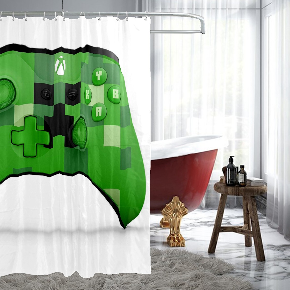 Green Camo Game Controller Picture Shower Curtain 100% Polyester Hotel Home Bathroom Decor Washable Bath Curtain 60"x72"