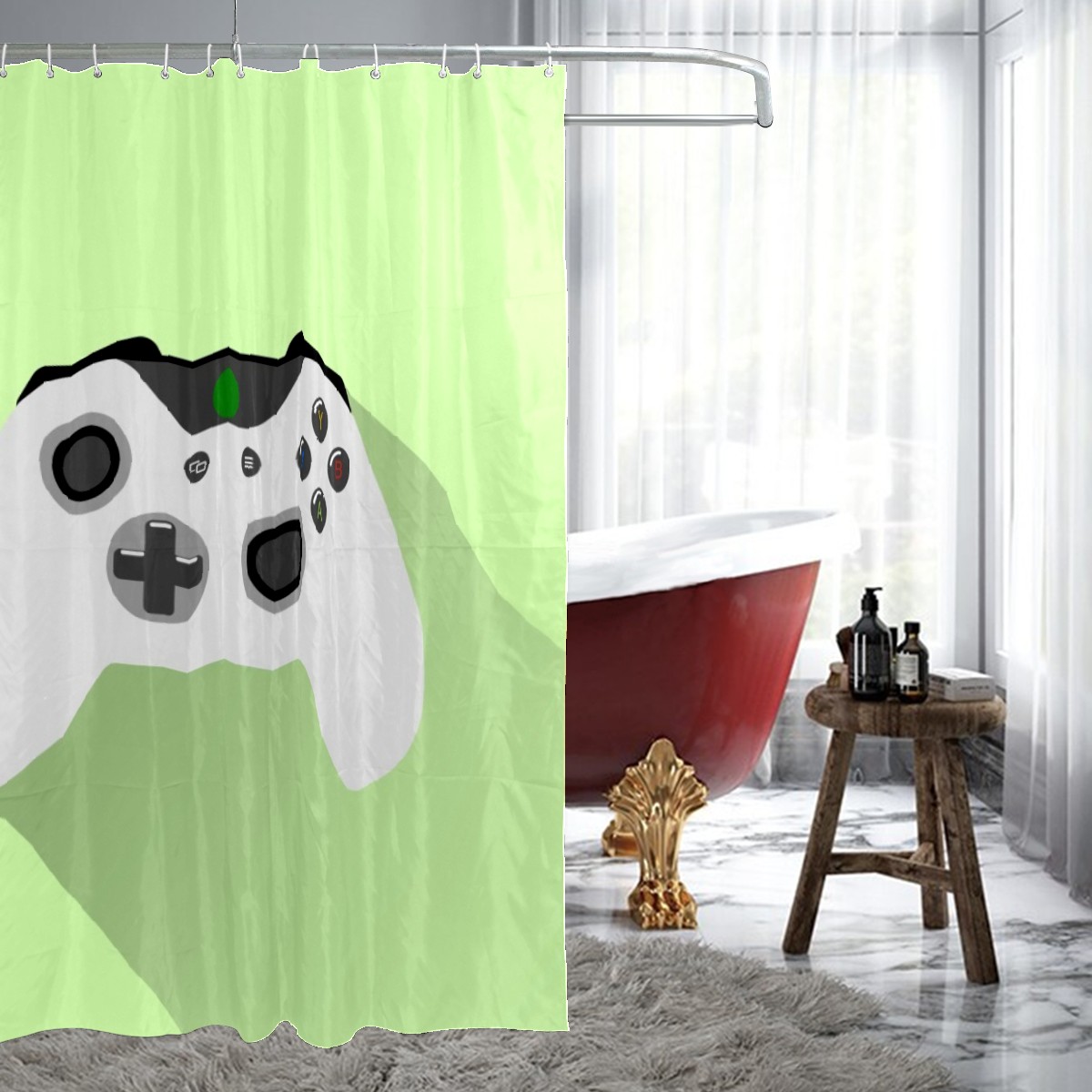 Game Playing Controller Green Shower Curtain 100% Polyester Hotel Home Bathroom Decor Washable Bath Curtain 60"x72"
