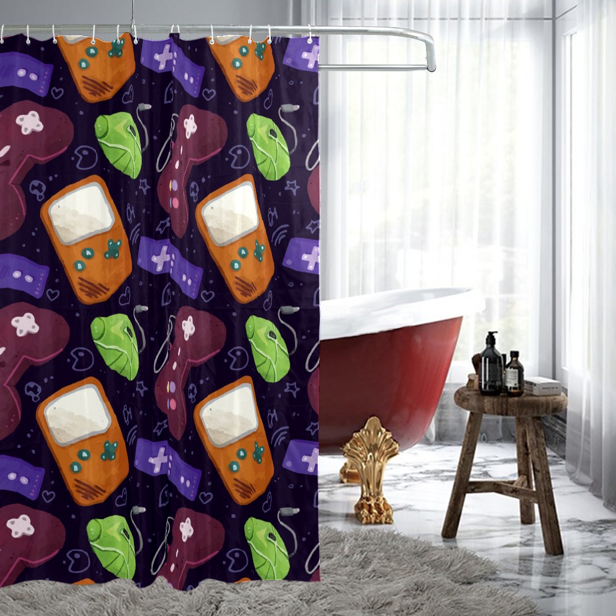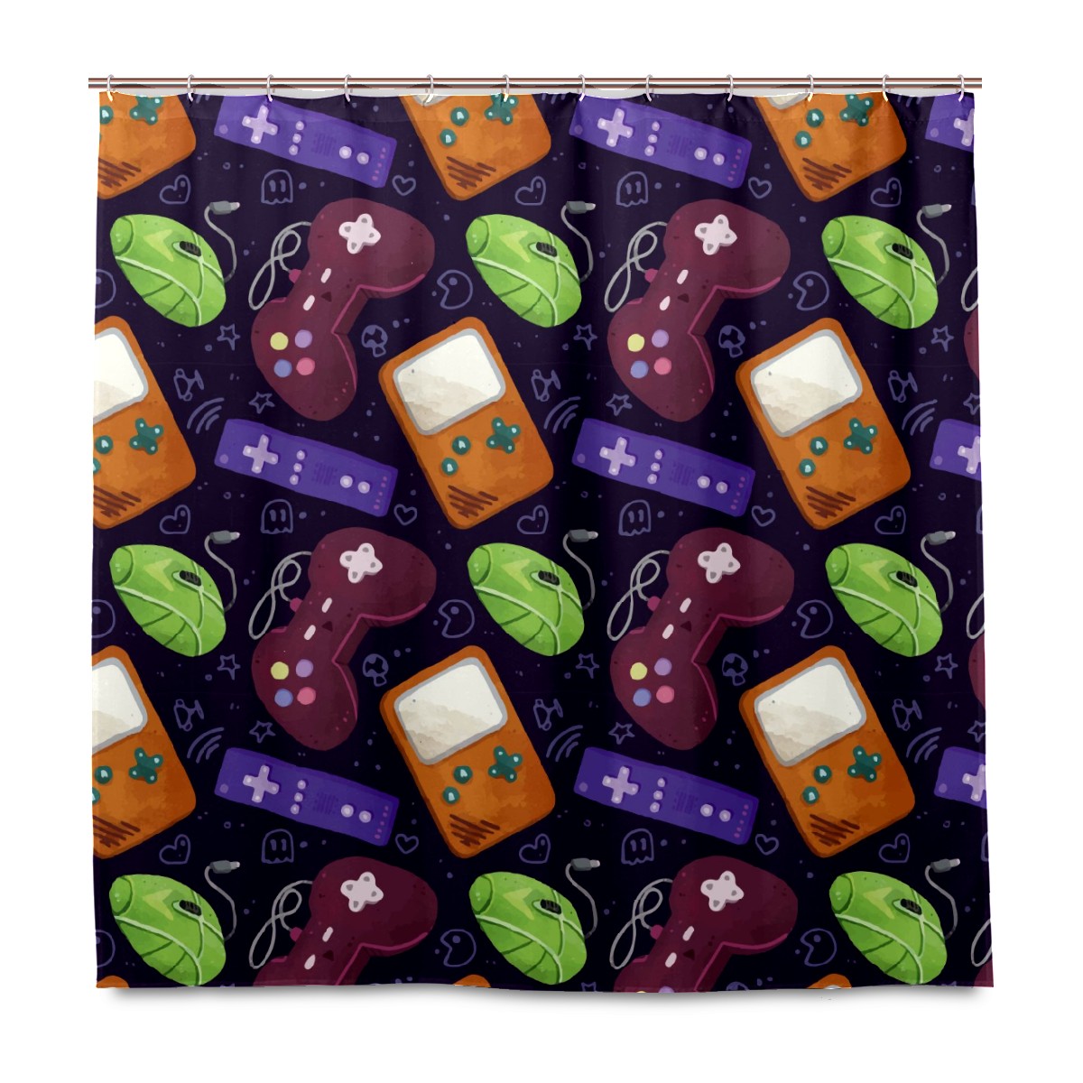 Vedio Game Controllers Pattern Colorful Shower Curtain 100% Polyester Hotel Home Bathroom Decor Washable Bath Curtain 60"x72"