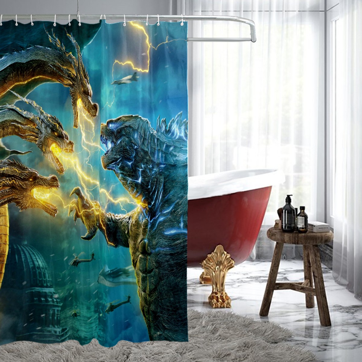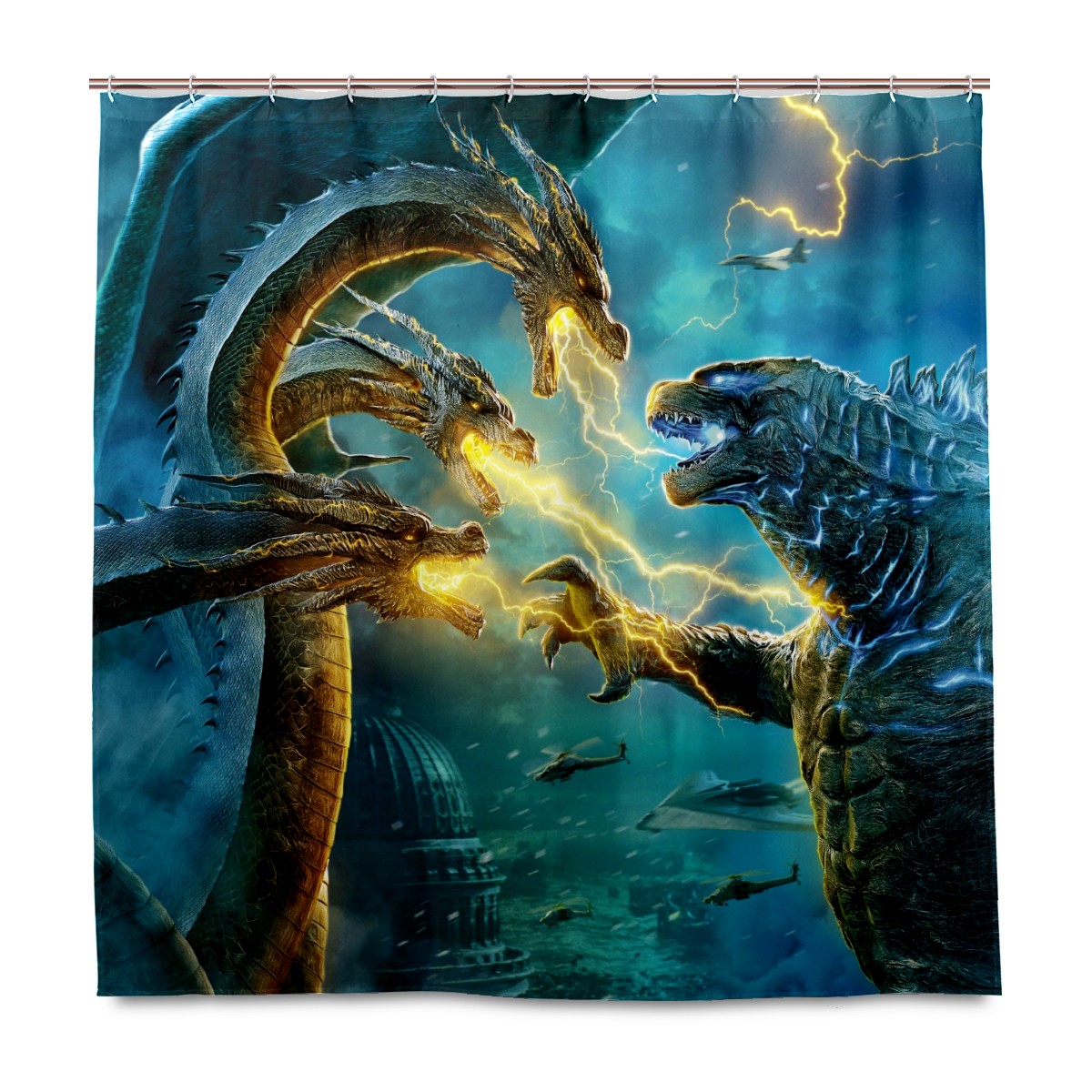 Gojirasaurus Battle Lightning GODZILLA Shower Curtain 100% Polyester Hotel Home Bathroom Decor Washable Bath Curtain 60"x72"