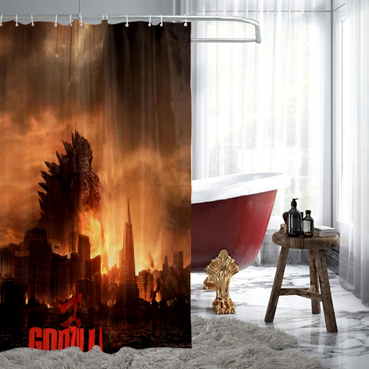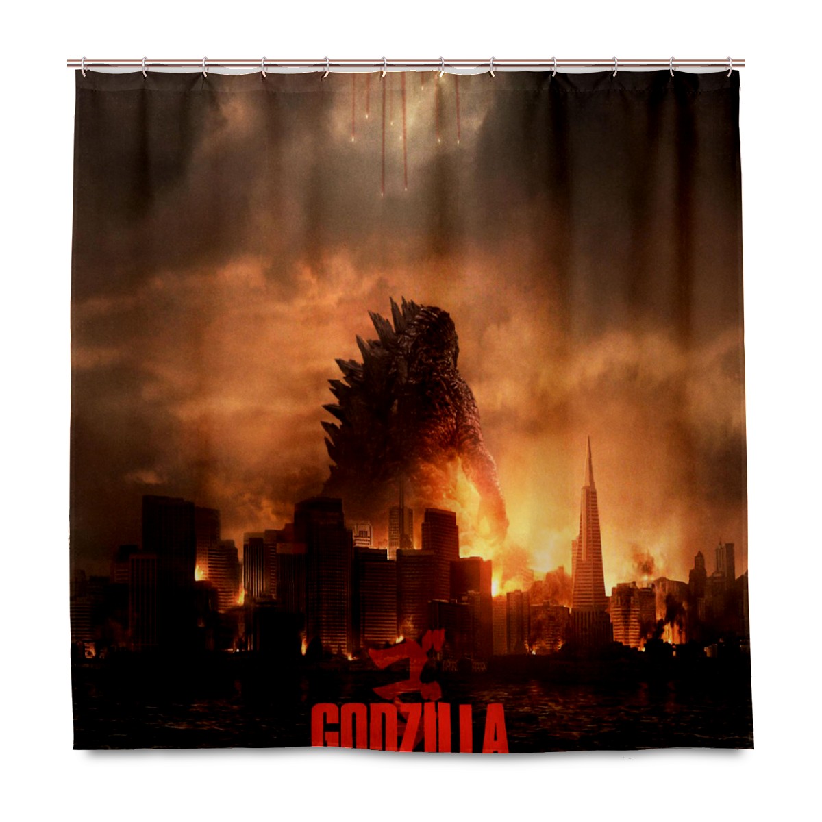 Godzilla Fire Battle Mess Movie Shower Curtain 100% Polyester Hotel Home Bathroom Decor Washable Bath Curtain 60"x72"