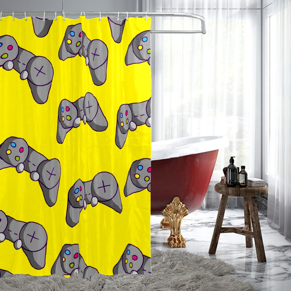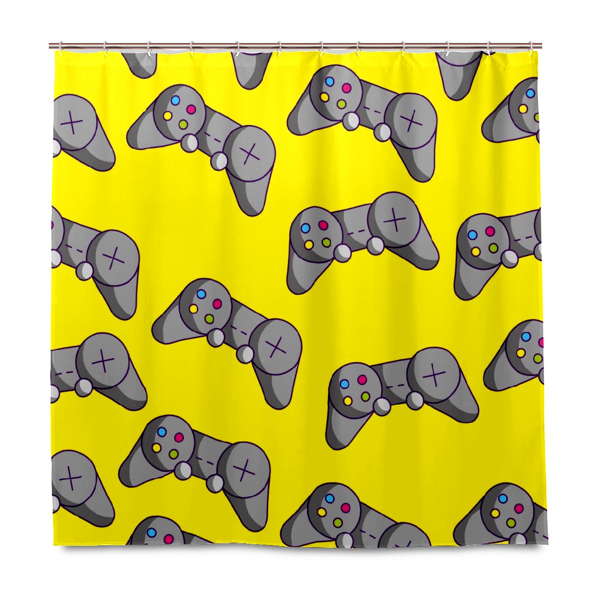 Controls Pattern Video Games Yellow Shower Curtain 100% Polyester Hotel Home Bathroom Decor Washable Bath Curtain 60"x72"
