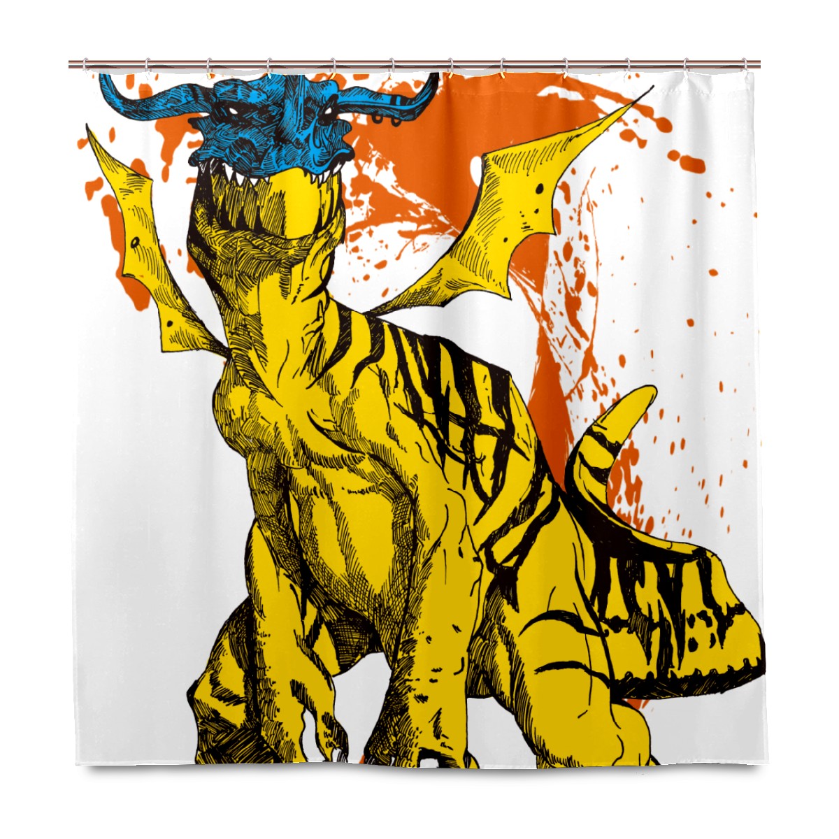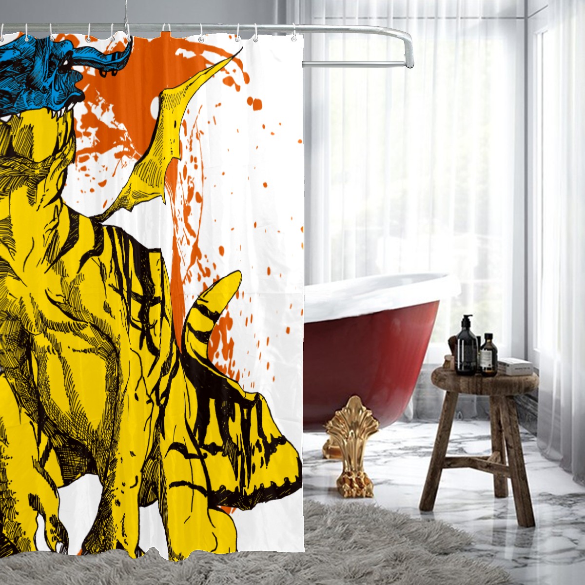 Yellow Hand Drawn Animal Skating Splash Ink Shower Curtain 100% Polyester Hotel Home Bathroom Decor Washable Bath Curtain 60"x72"