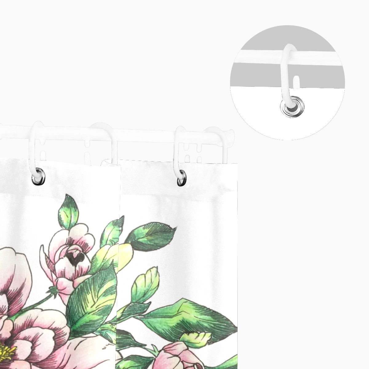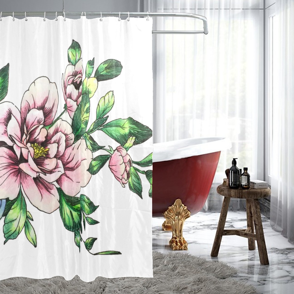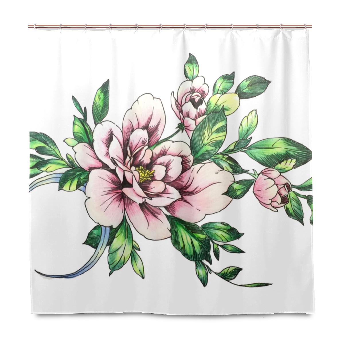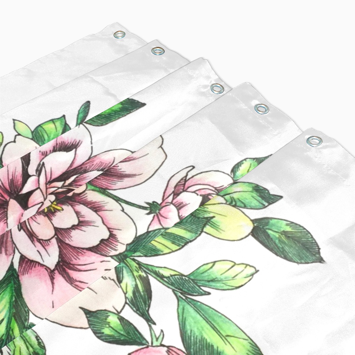 Treasure Rose Peony Flower Blooming Green Leaves Shower Curtain 100% Polyester Hotel Home Bathroom Decor Washable Bath Curtain 60"x72"