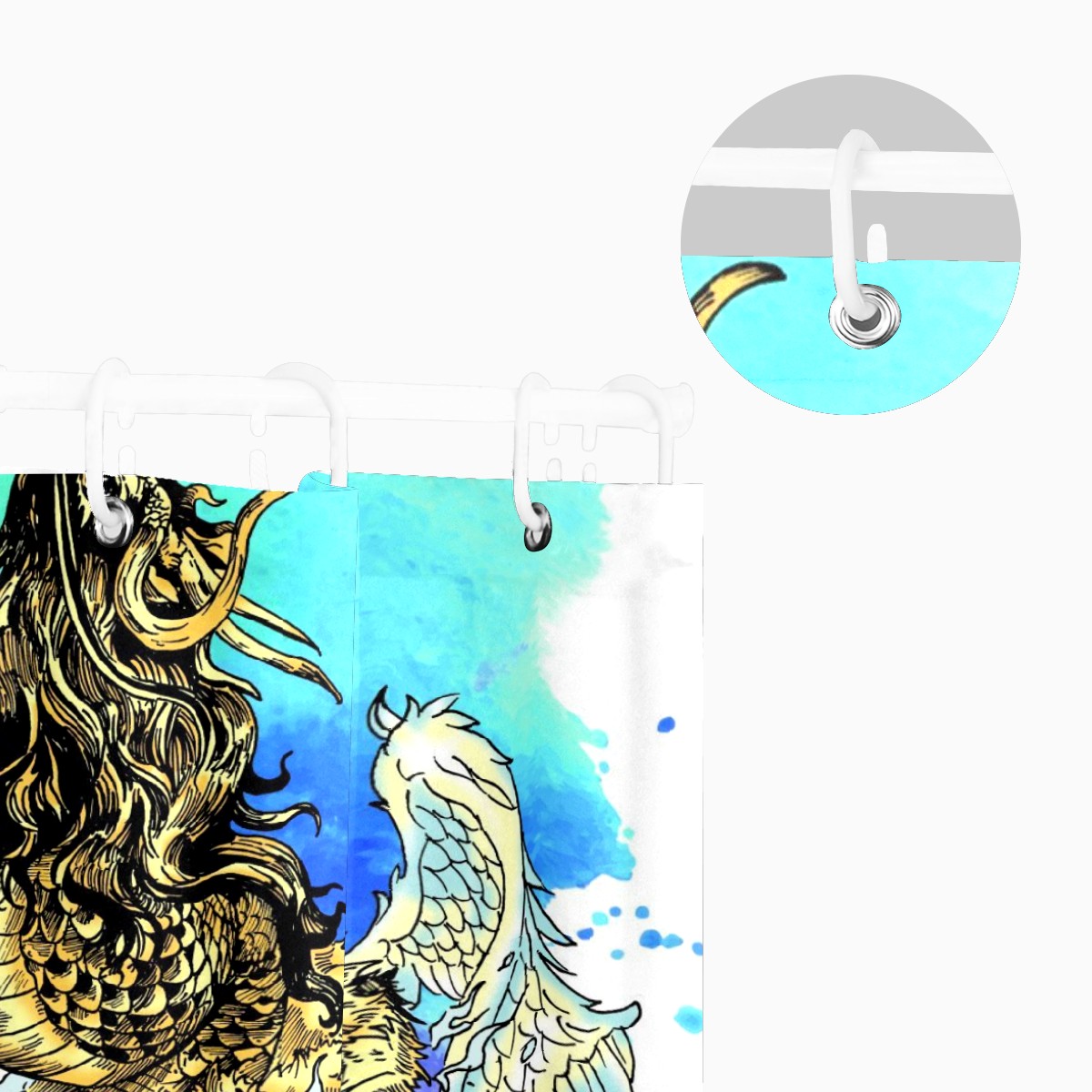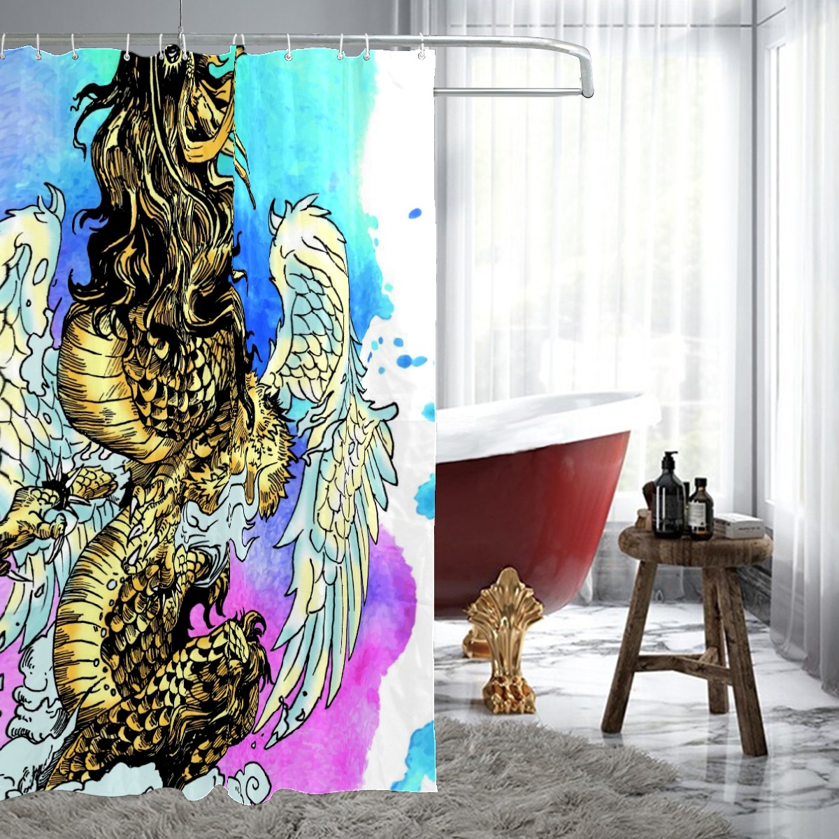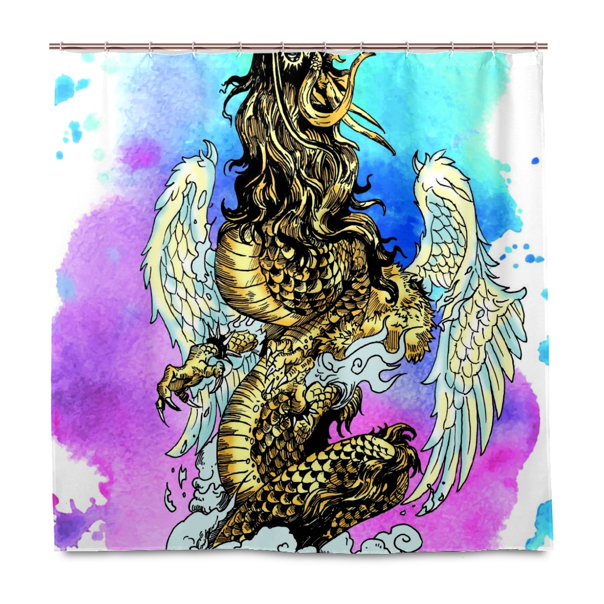 Chinese Legend Dragon Angel Wings Cloud Watercolor Shower Curtain 100% Polyester Hotel Home Bathroom Decor Washable Bath Curtain 60"x72"
