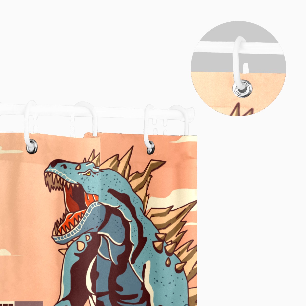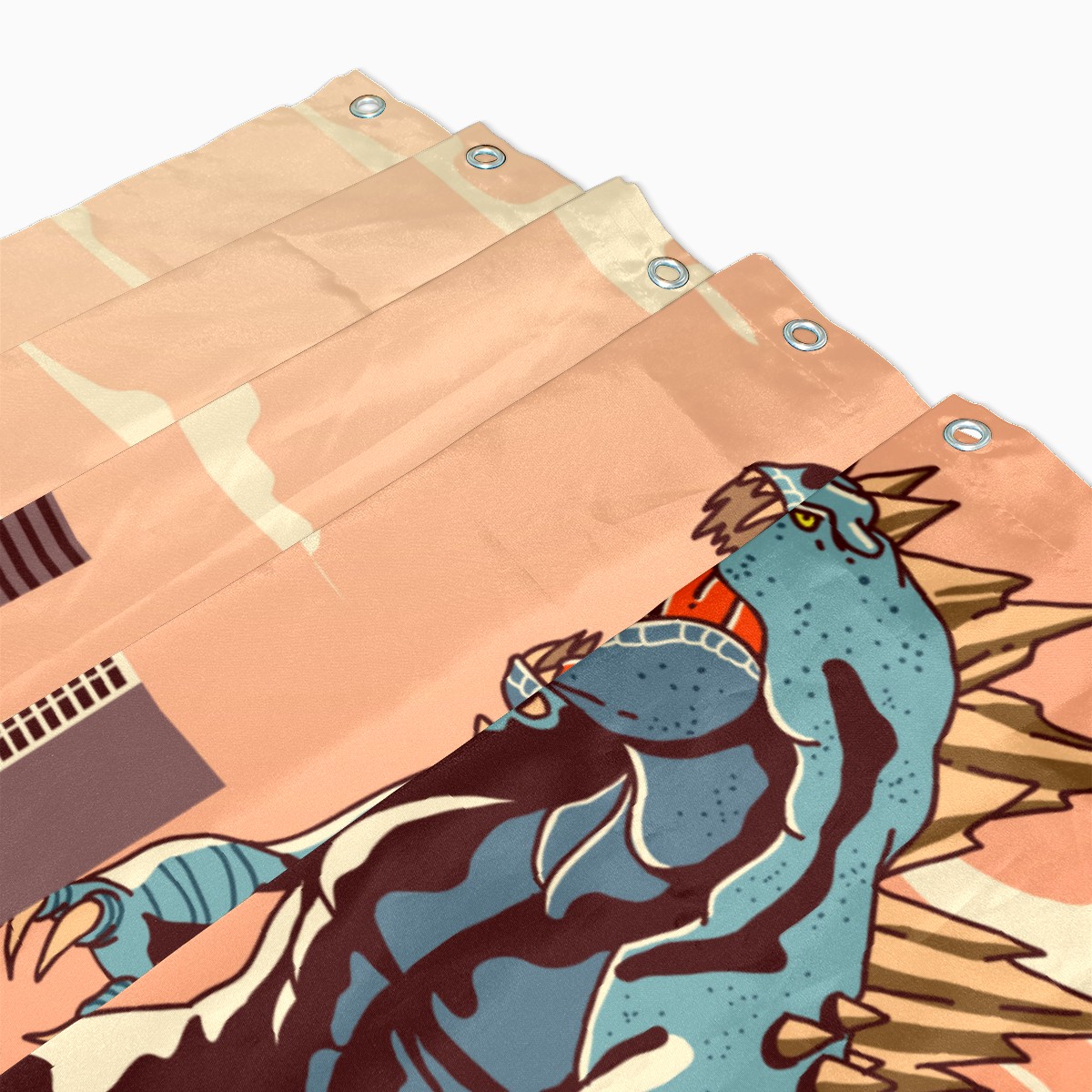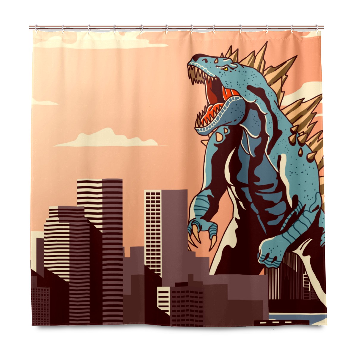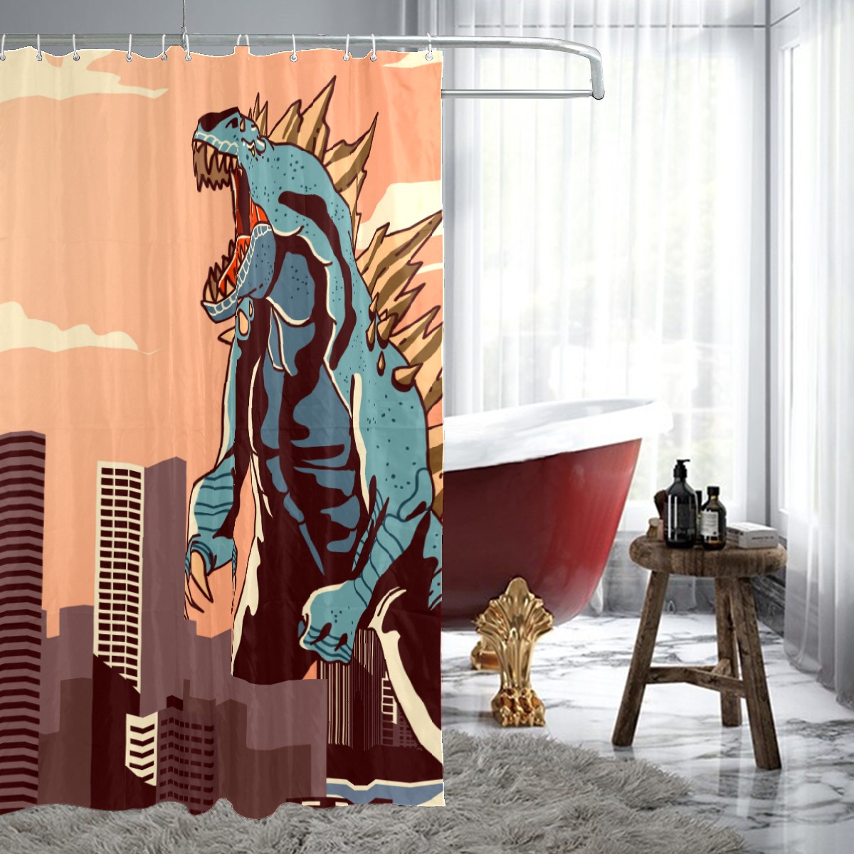 Paint Blue Godzilla City Buildings Shower Curtain 100% Polyester Hotel Home Bathroom Decor Washable Bath Curtain 60"x72"