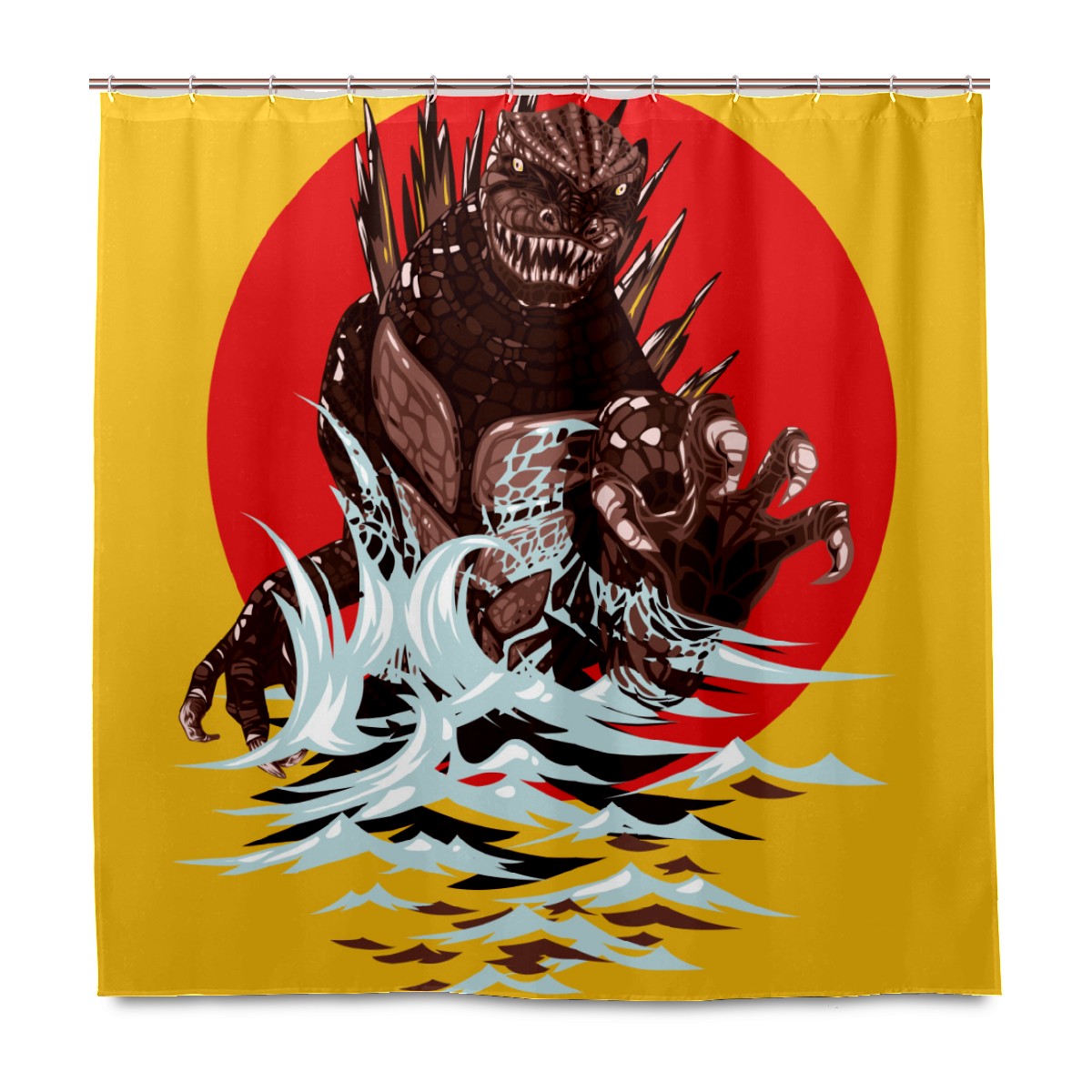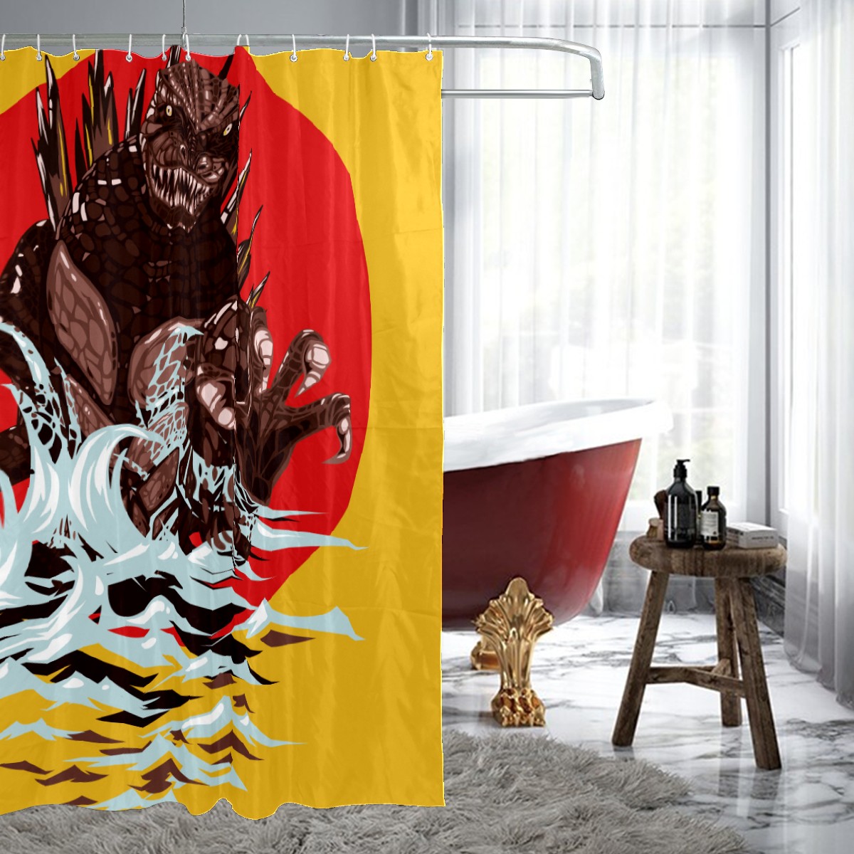 Horrible Godzilla Red Yellow Background Shower Curtain 100% Polyester Hotel Home Bathroom Decor Washable Bath Curtain 60"x72"