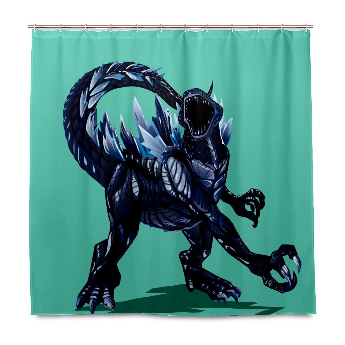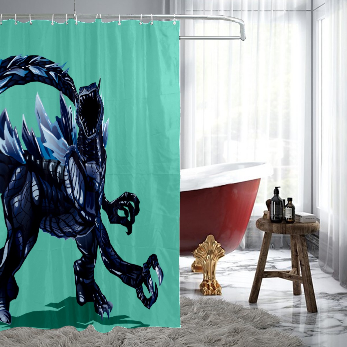 Hand Drawn Godzilla Blue Shower Curtain 100% Polyester Hotel Home Bathroom Decor Washable Bath Curtain 60"x72"