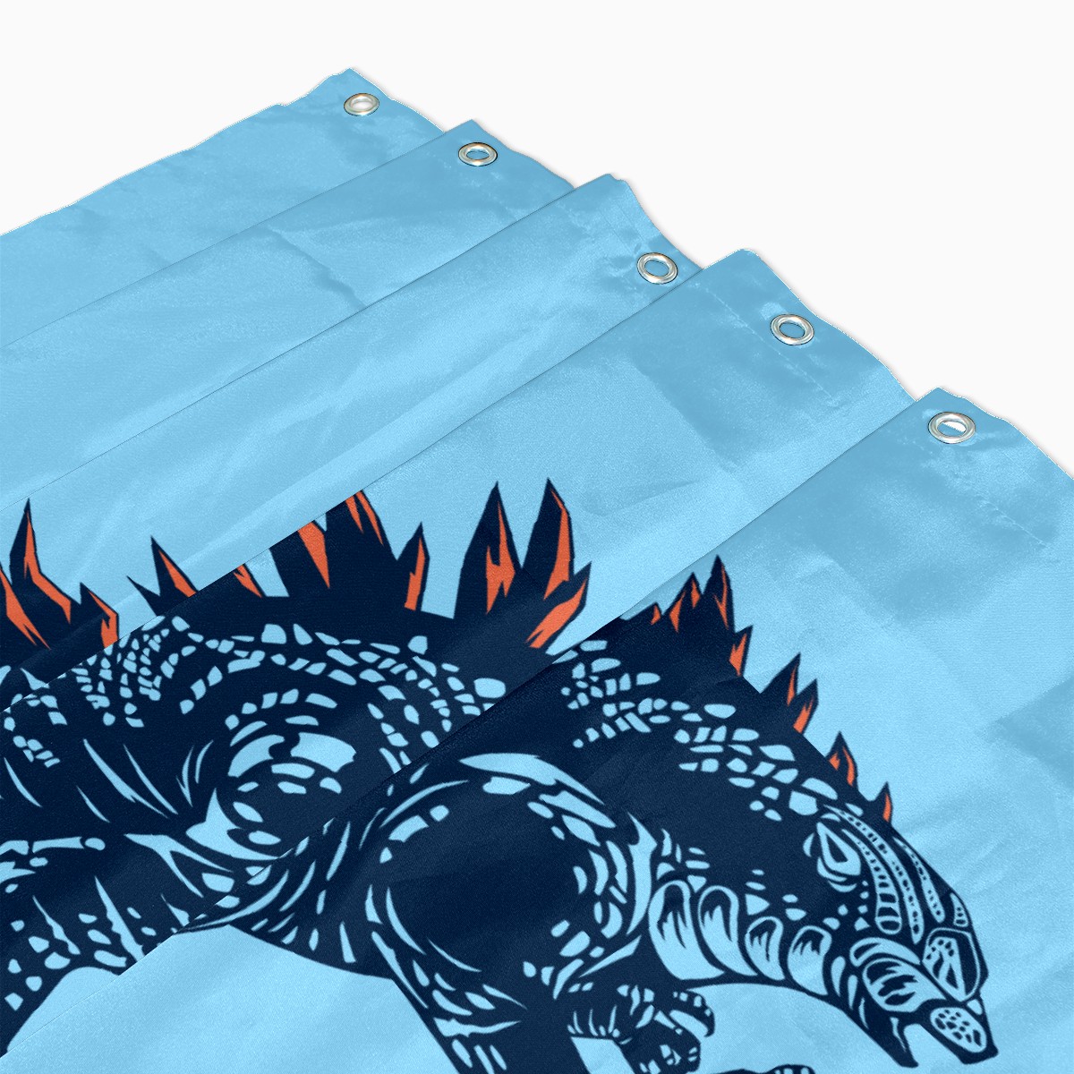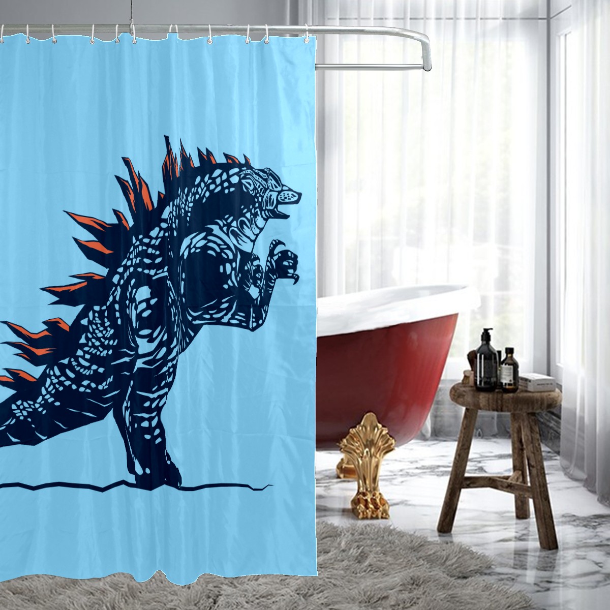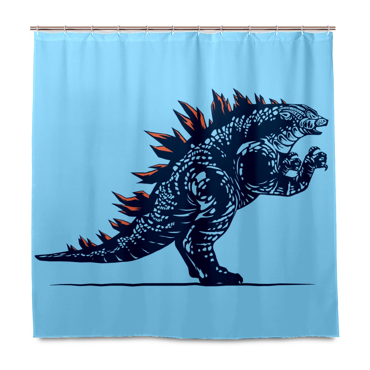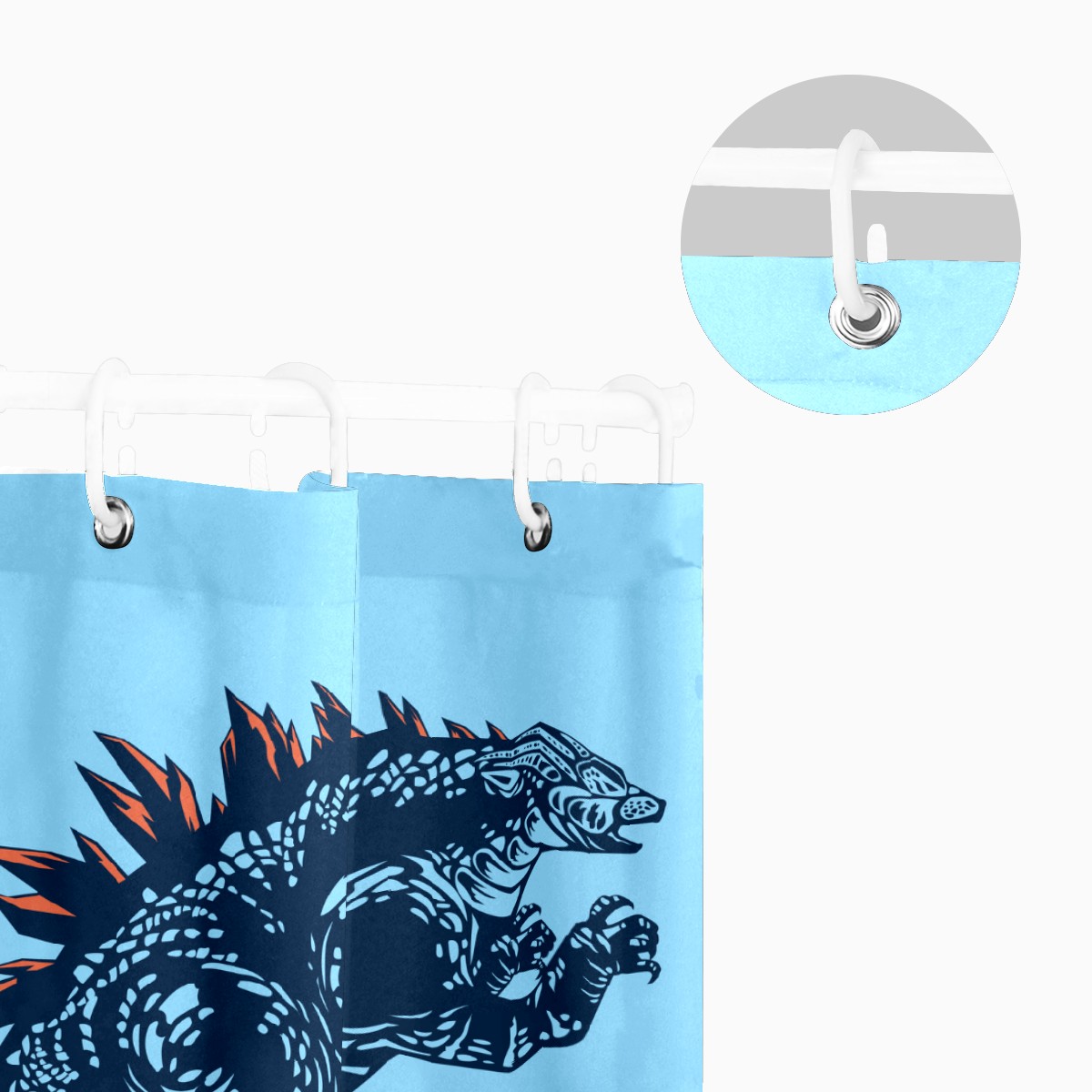 Hand Drawn Godzilla Blue Background Shower Curtain 100% Polyester Hotel Home Bathroom Decor Washable Bath Curtain 60"x72"