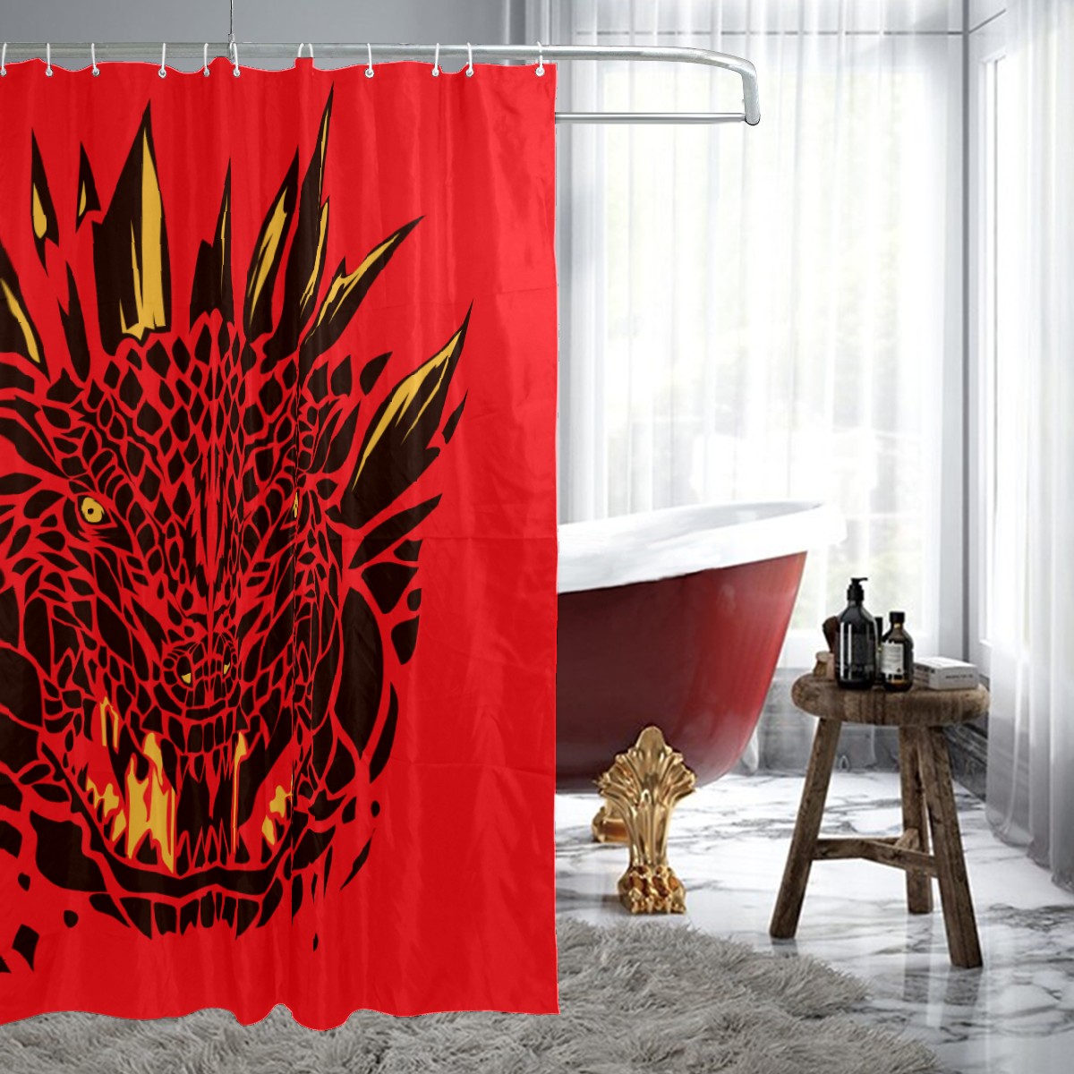 Godzilla Head Red Background Shower Curtain 100% Polyester Hotel Home Bathroom Decor Washable Bath Curtain 60"x72"