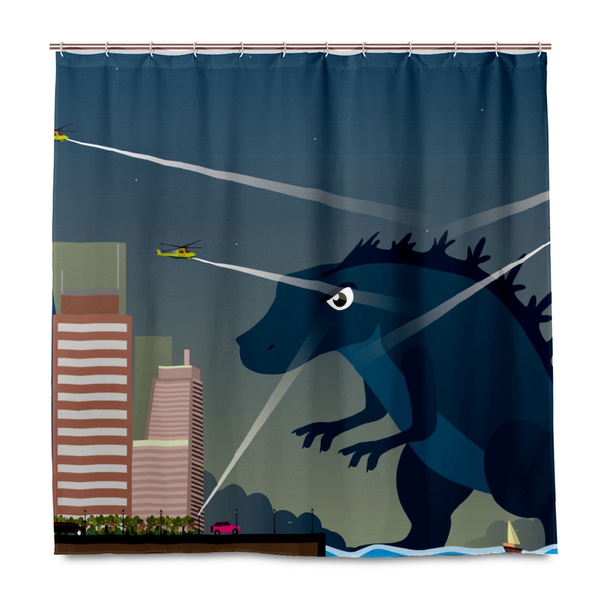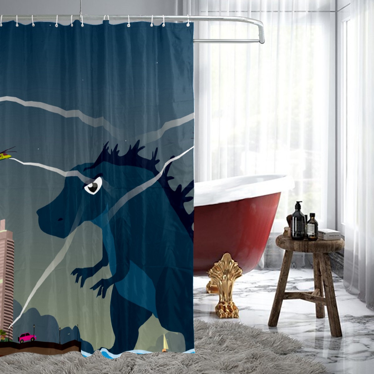 Cartoon Godzilla Dinosaur Plane Building Attack Shower Curtain 100% Polyester Hotel Home Bathroom Decor Washable Bath Curtain 60"x72"