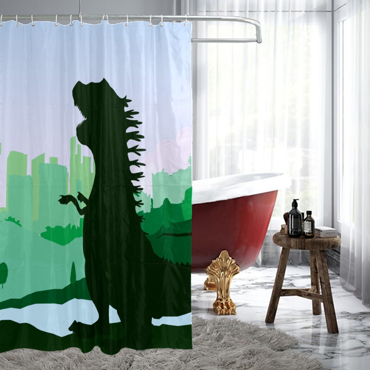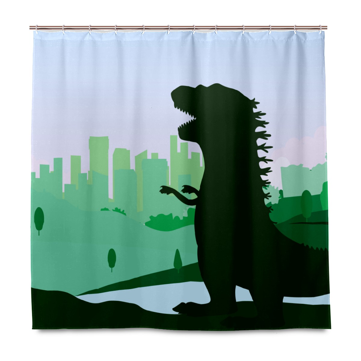 Cute Odzilla Illustration Dark Green Shower Curtain 100% Polyester Hotel Home Bathroom Decor Washable Bath Curtain 60"x72"