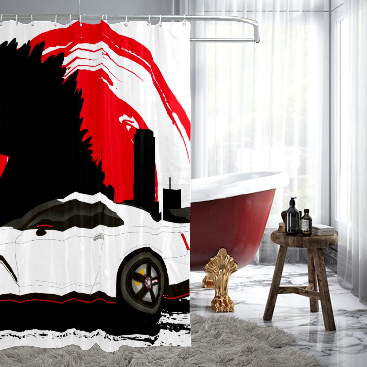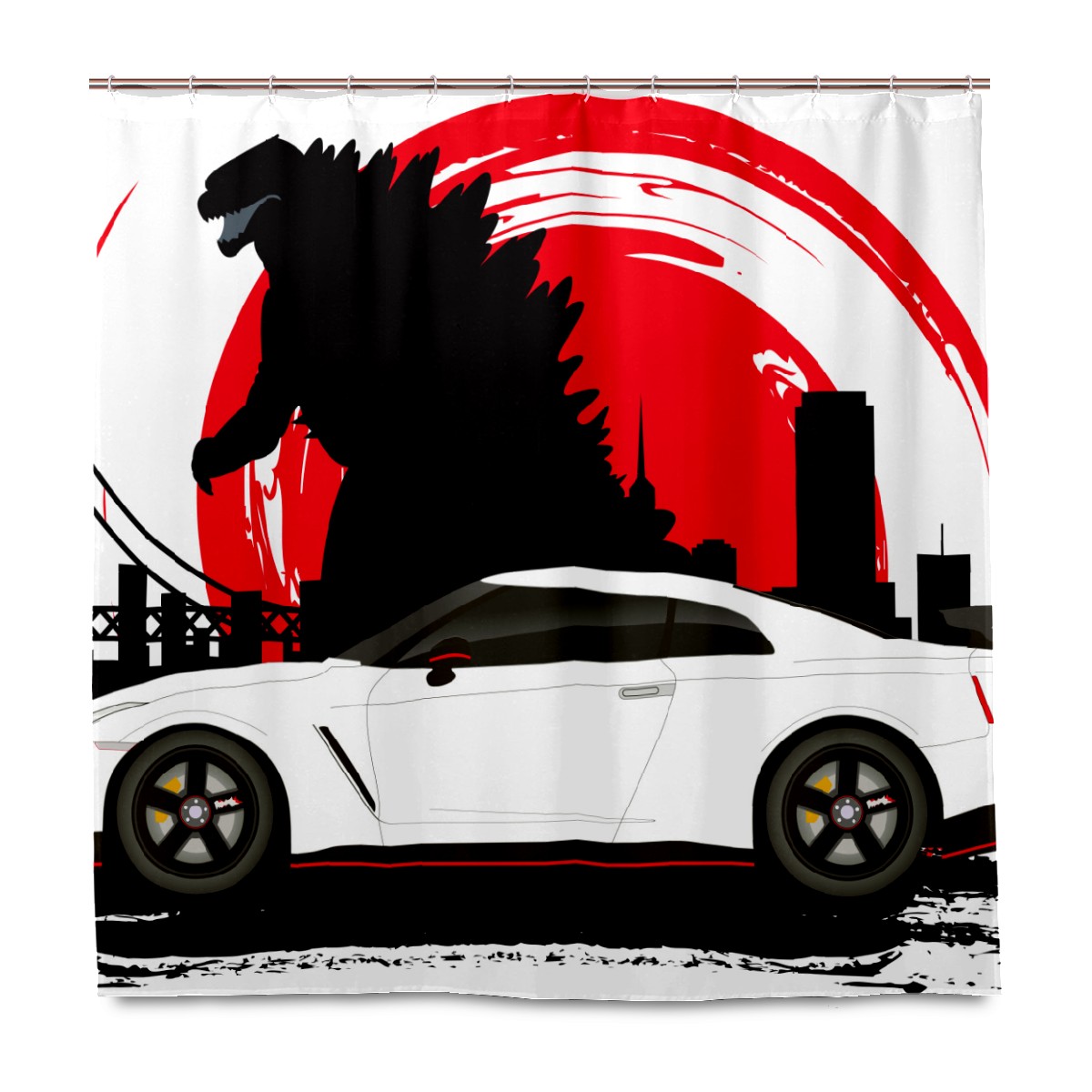 Creative Godzilla Silhouette Car City Building Shower Curtain 100% Polyester Hotel Home Bathroom Decor Washable Bath Curtain 60"x72"