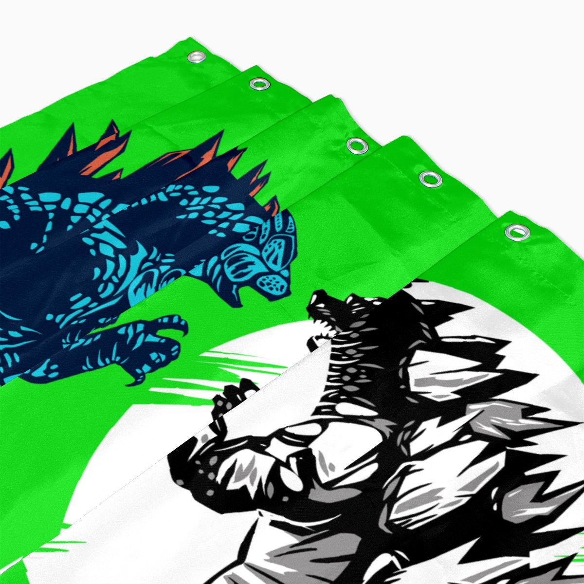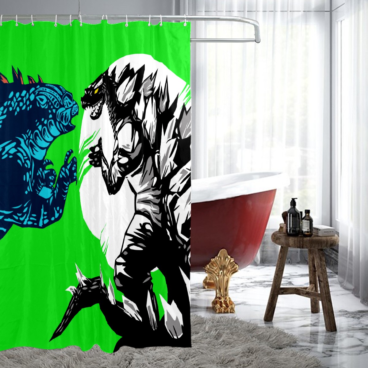 Blue Black Godzilla Dinosaur Battle Green Shower Curtain 100% Polyester Hotel Home Bathroom Decor Washable Bath Curtain 60"x72"