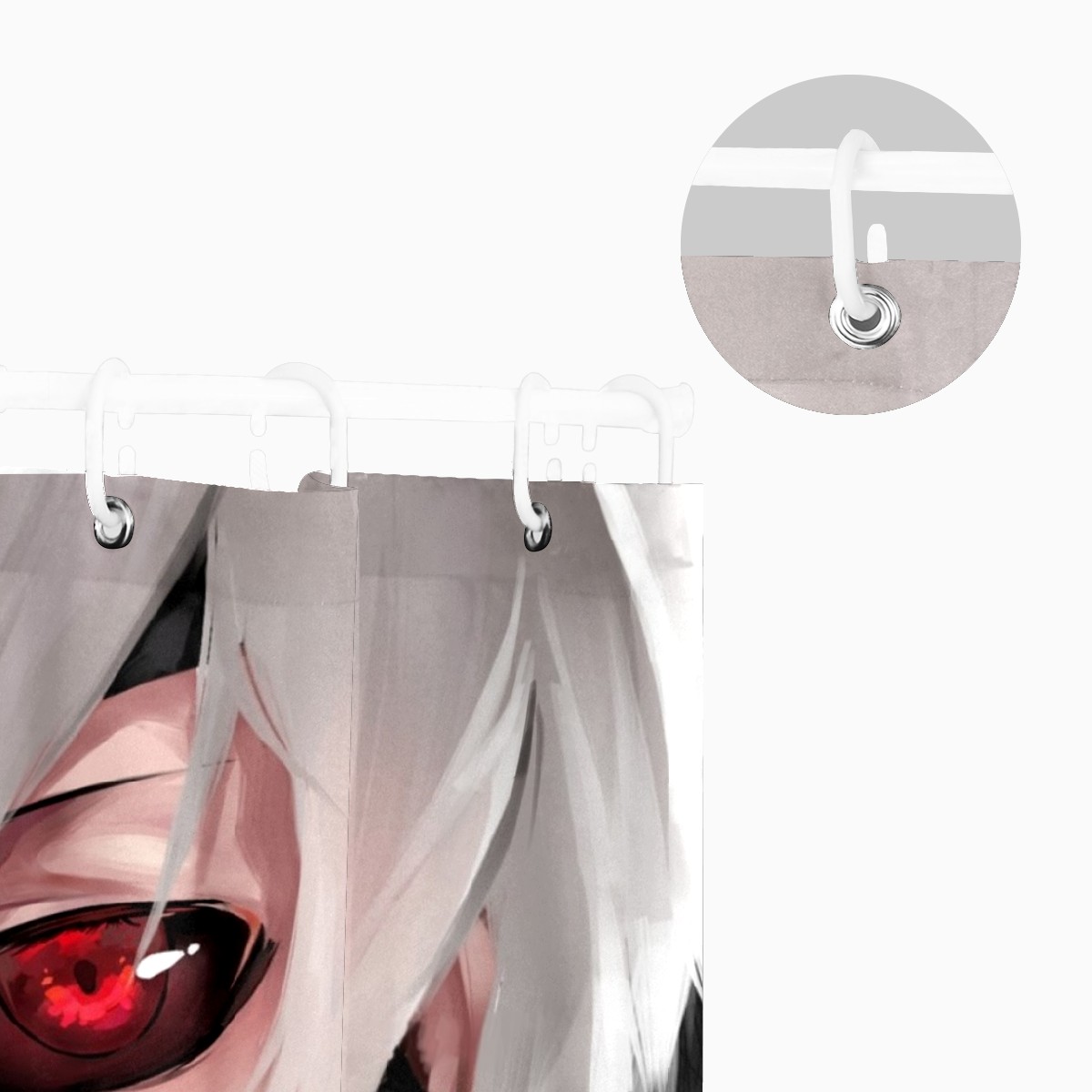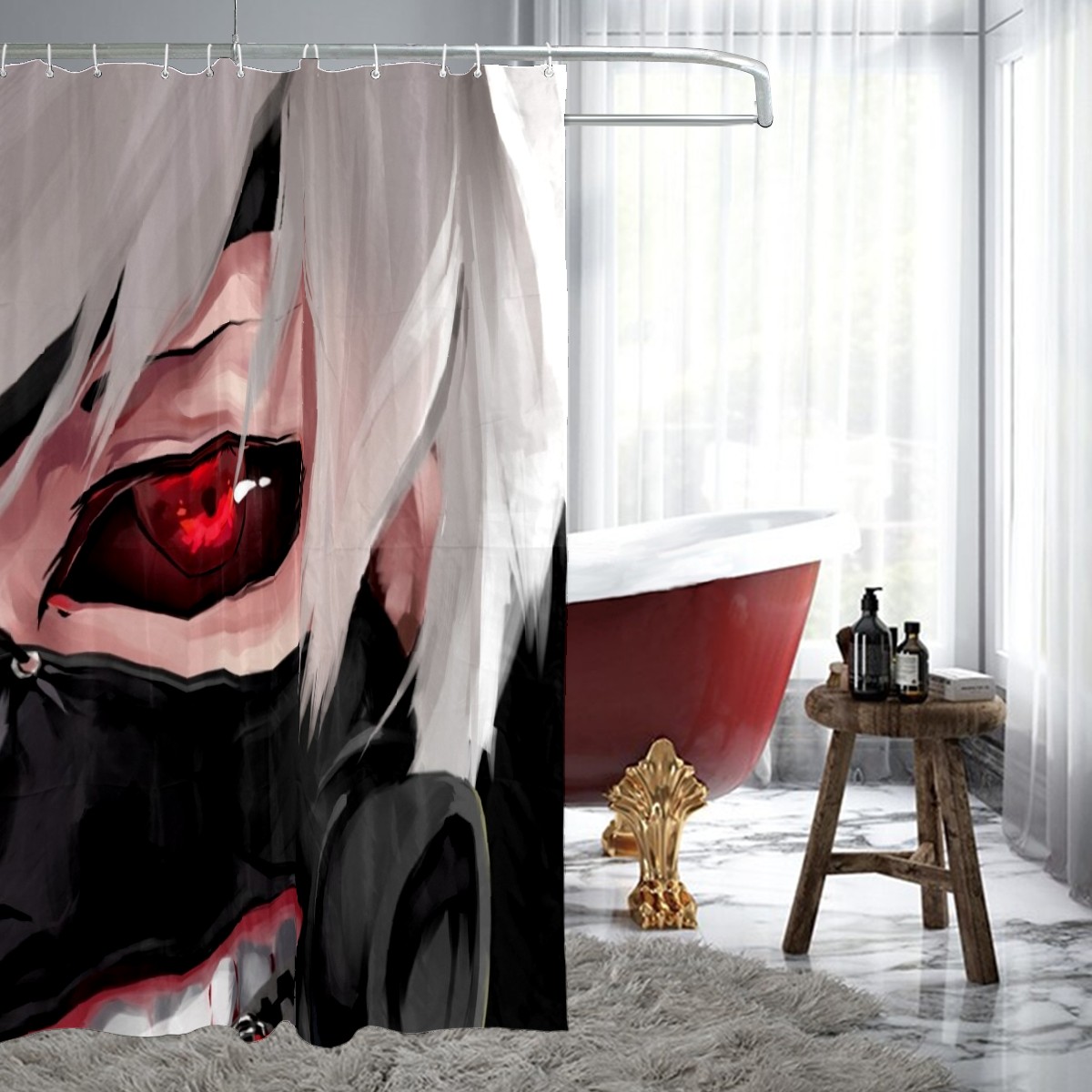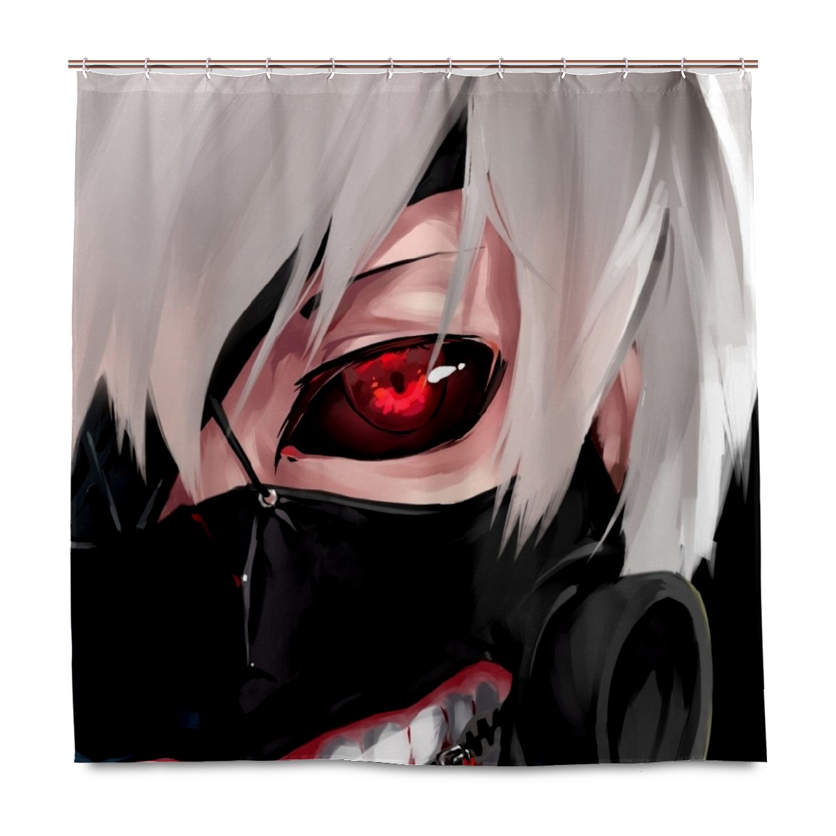 White Hair Teeth Mask Kaneki Ken Red Eye Shower Curtain 100% Polyester Hotel Home Bathroom Decor Washable Bath Curtain 60"x72"